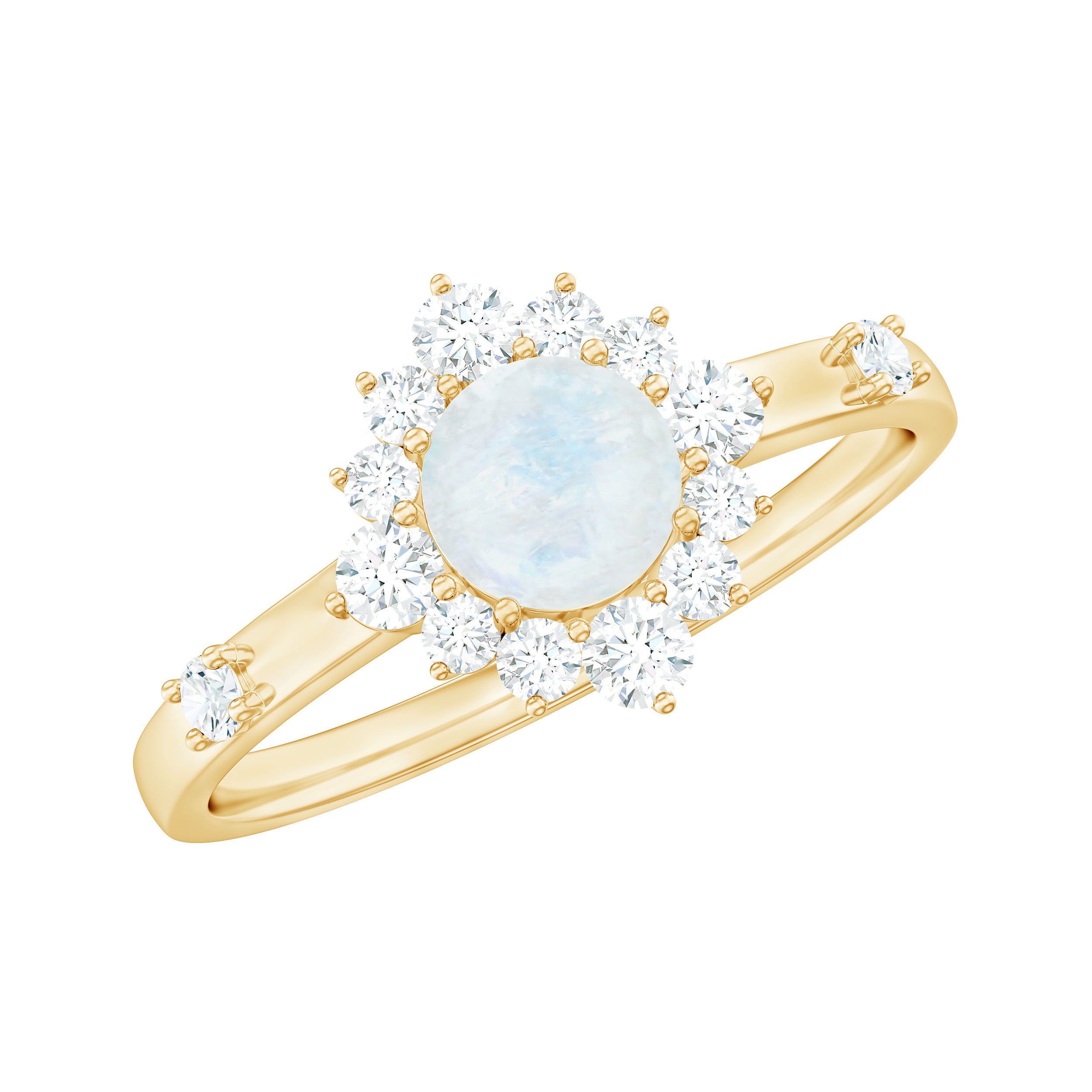 1 CT Round Moonstone and Diamond Halo Engagement Ring