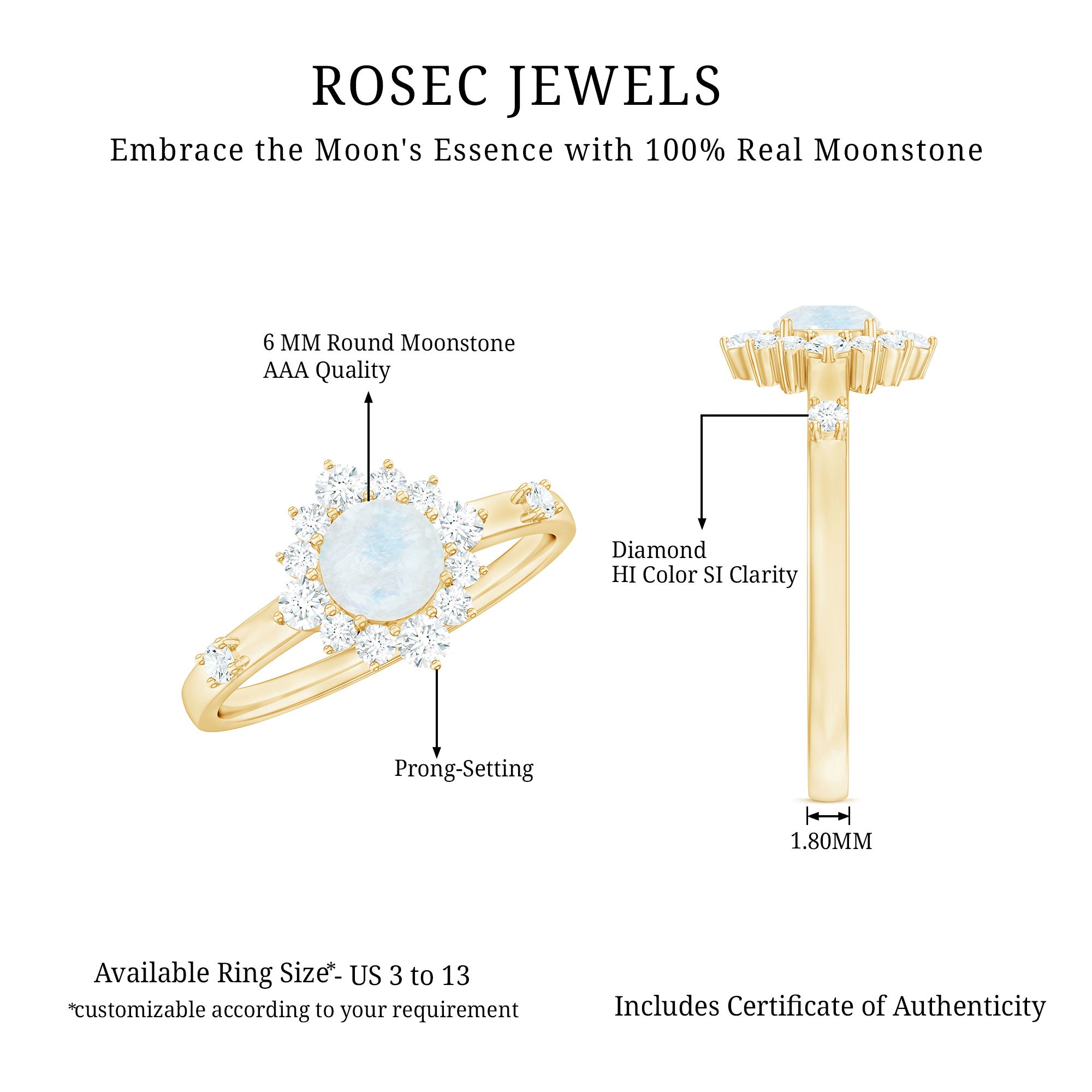 1 CT Round Moonstone and Diamond Halo Engagement Ring