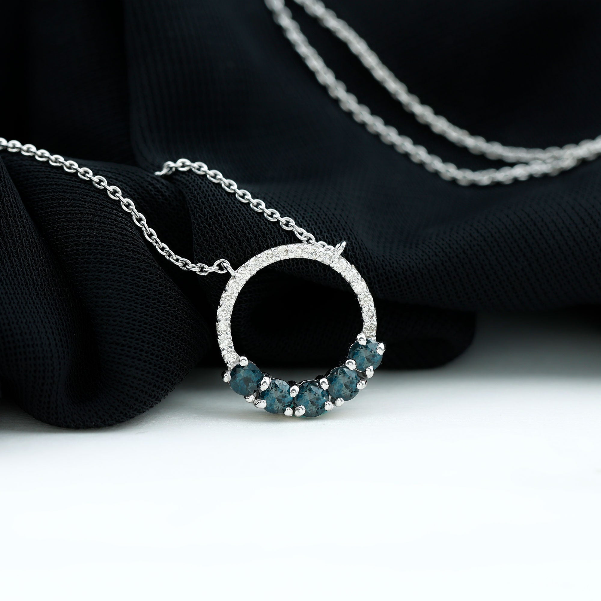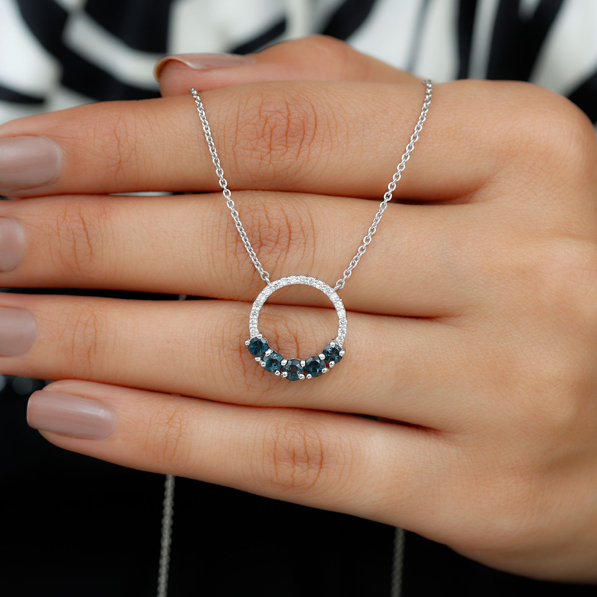 Featuring round-cut London Blue Topaz gemstones set in a prong setting and accented with a Diamond, this open-circle necklace is a stunning piece of jewelry. It is an eternity necklace and is perfect for adding a pop of color to any outfit.
