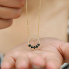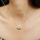 Featuring round-cut London Blue Topaz gemstones set in a prong setting and accented with a Diamond, this open-circle necklace is a stunning piece of jewelry. It is an eternity necklace and is perfect for adding a pop of color to any outfit.