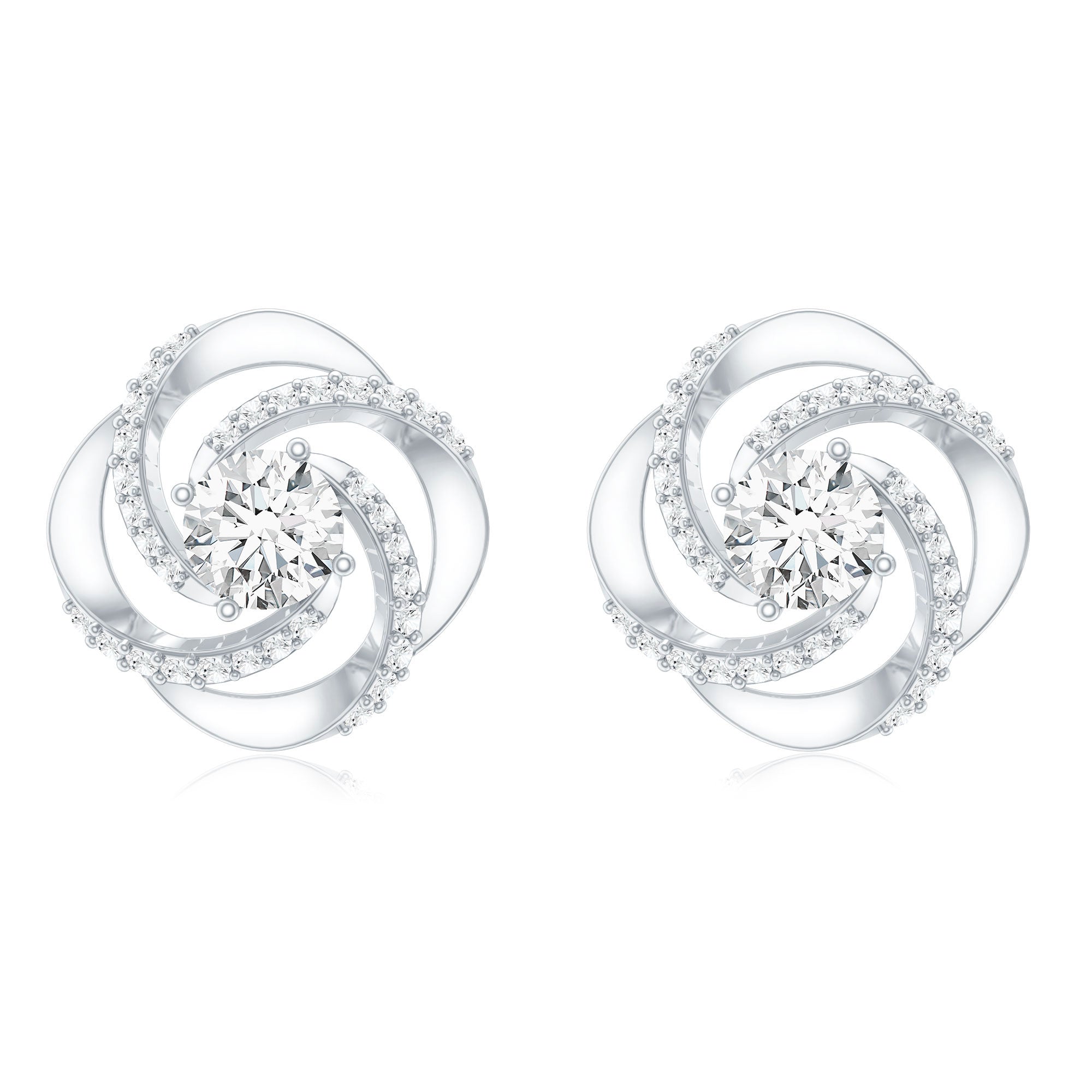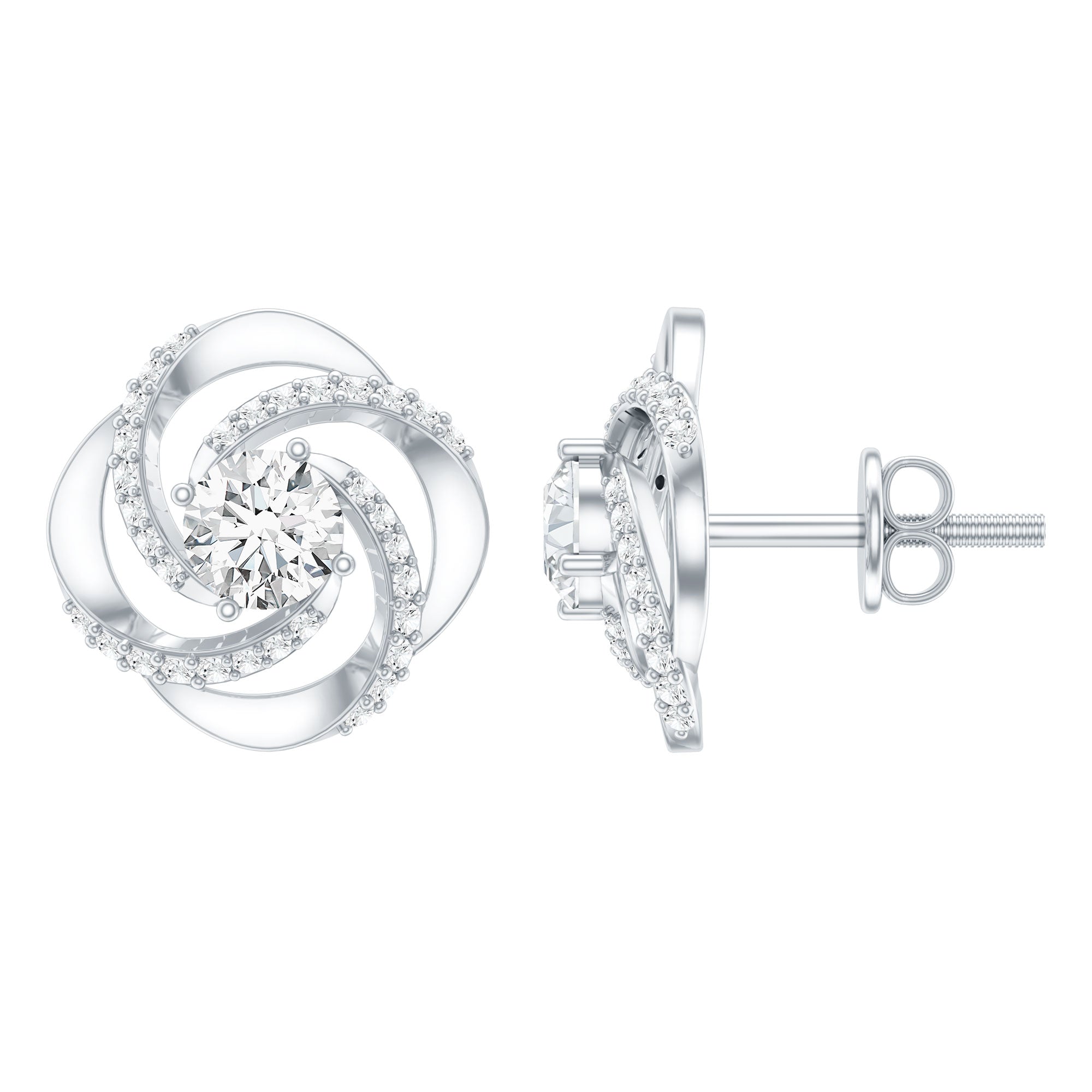 1 CT Round Shape Moissanite Swirl Stud Earrings
