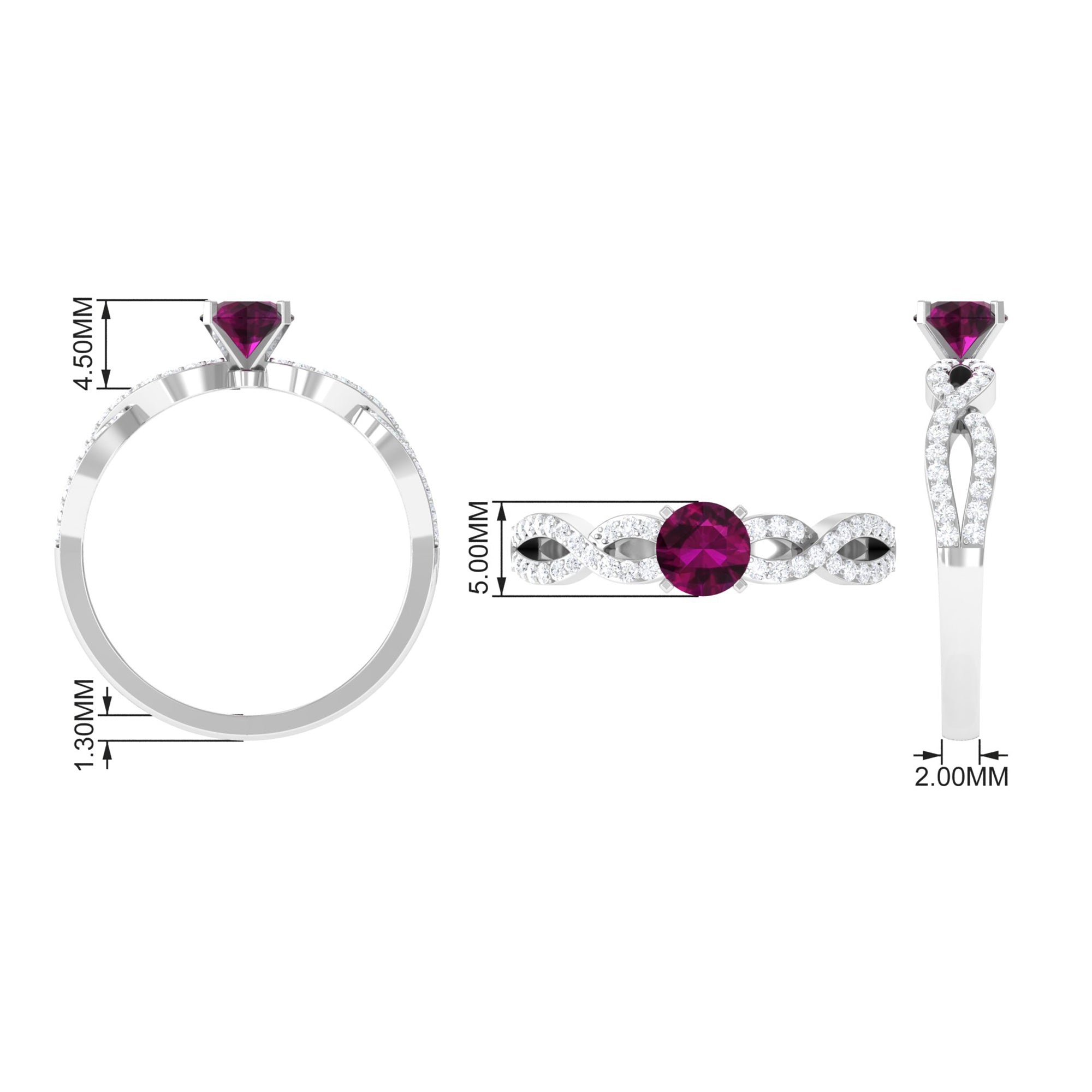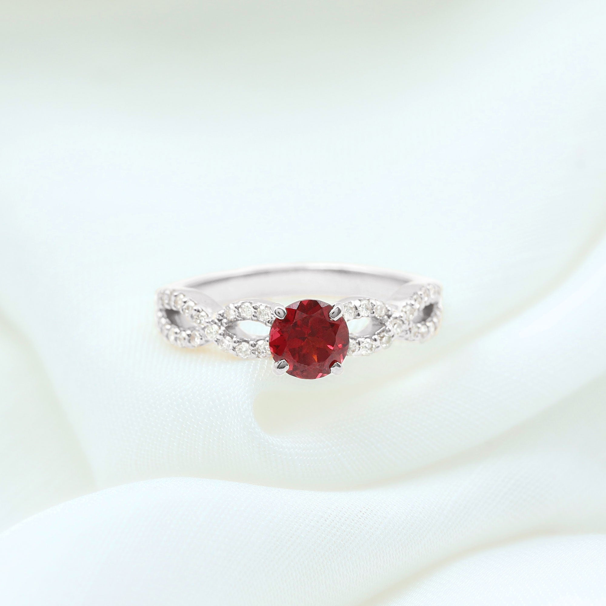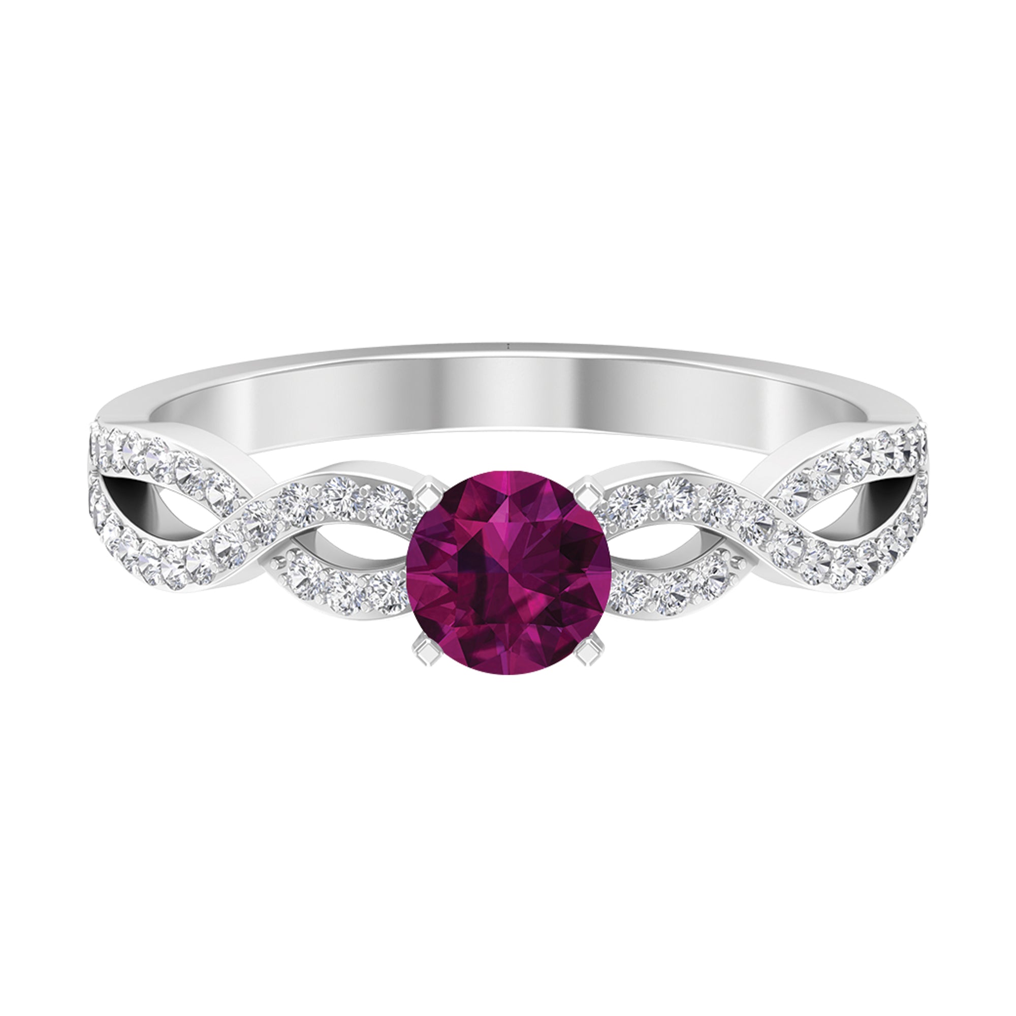 1 CT Round Shape Rhodolite and Diamond Criss Cross Ring