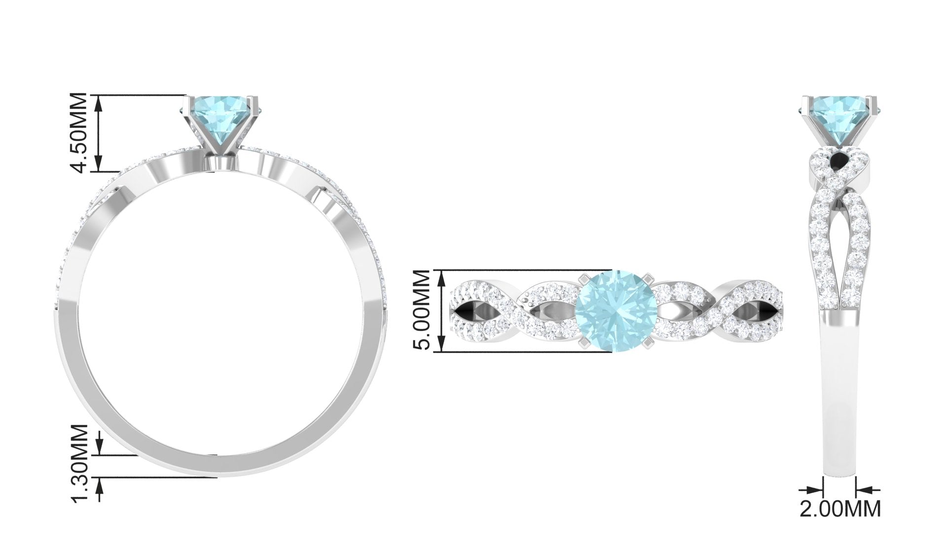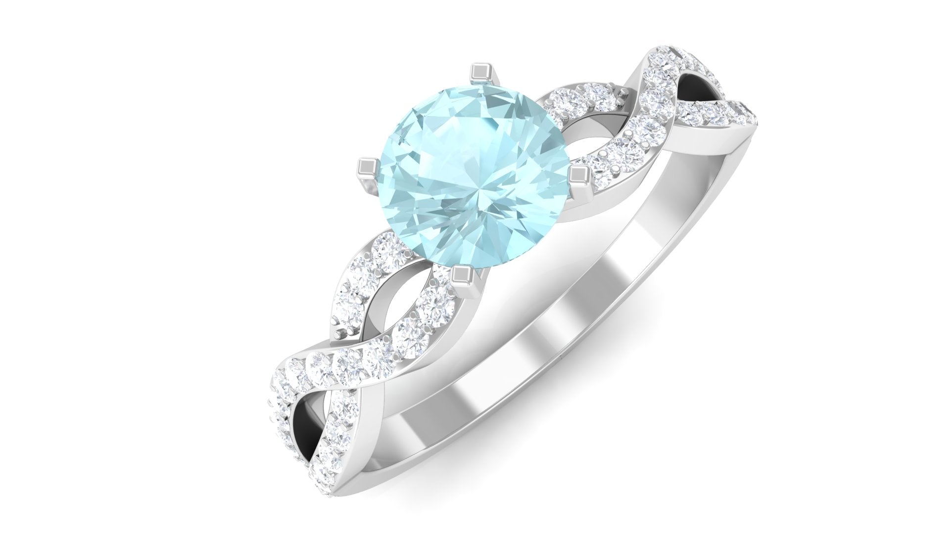 1 CT Round Shape Sky Blue Topaz and Diamond Criss Cross Ring