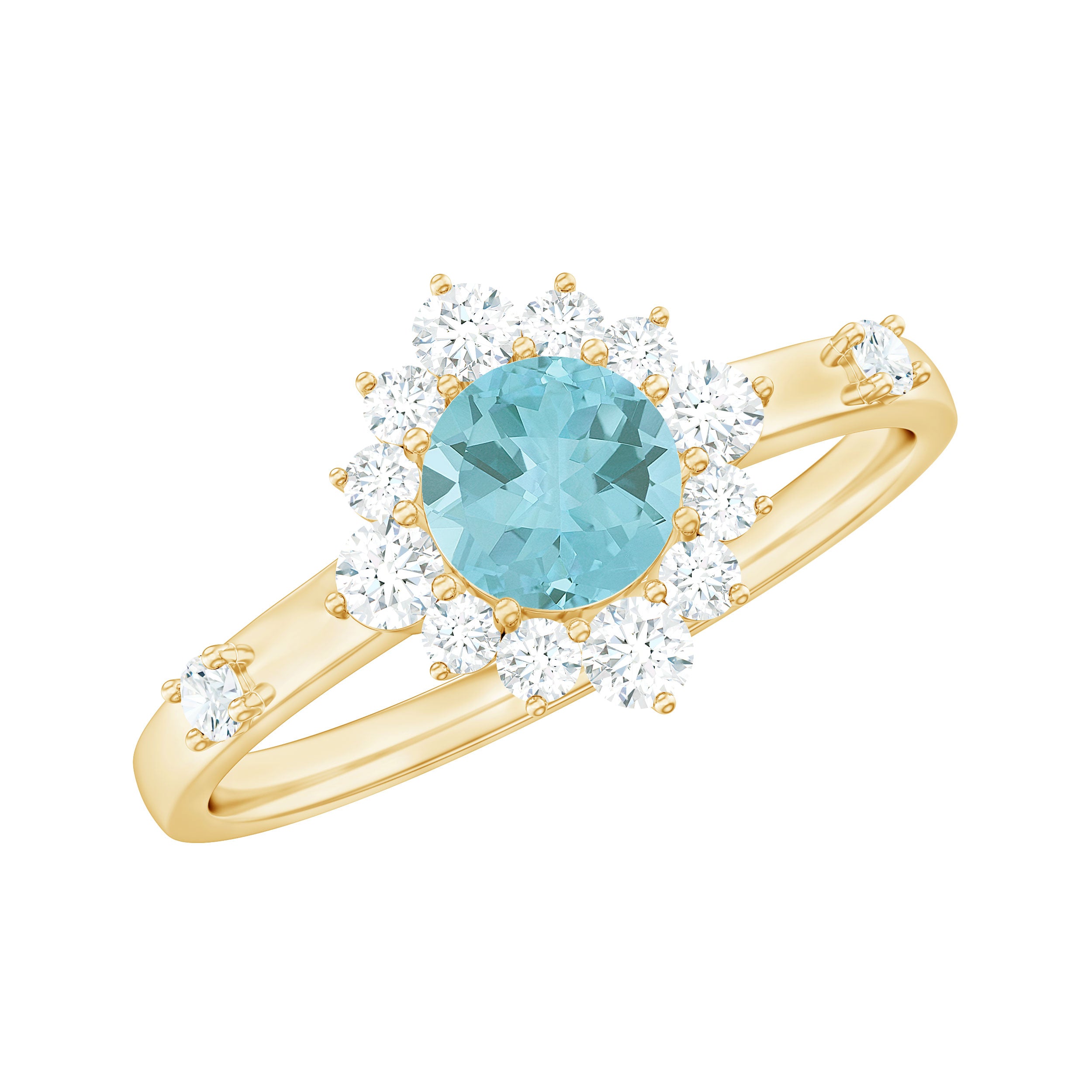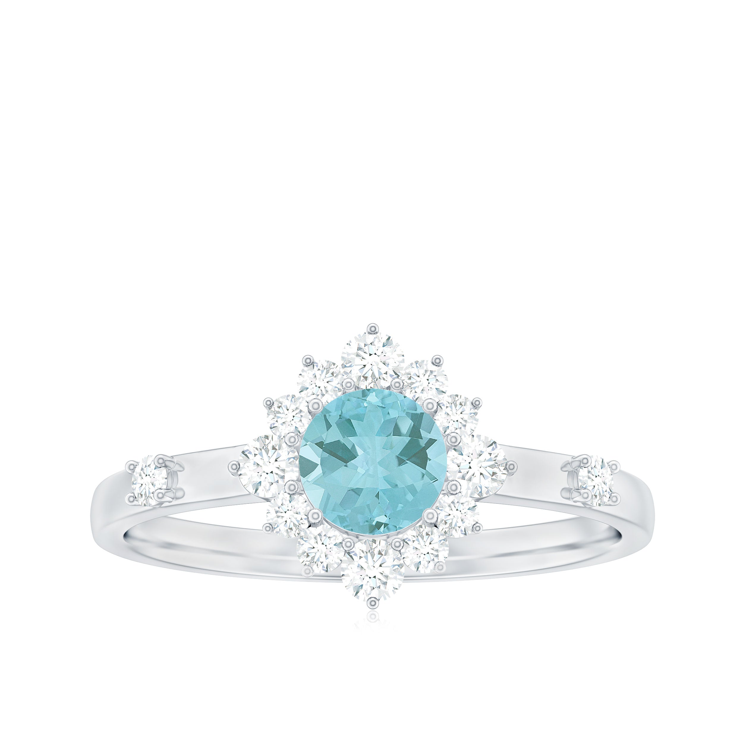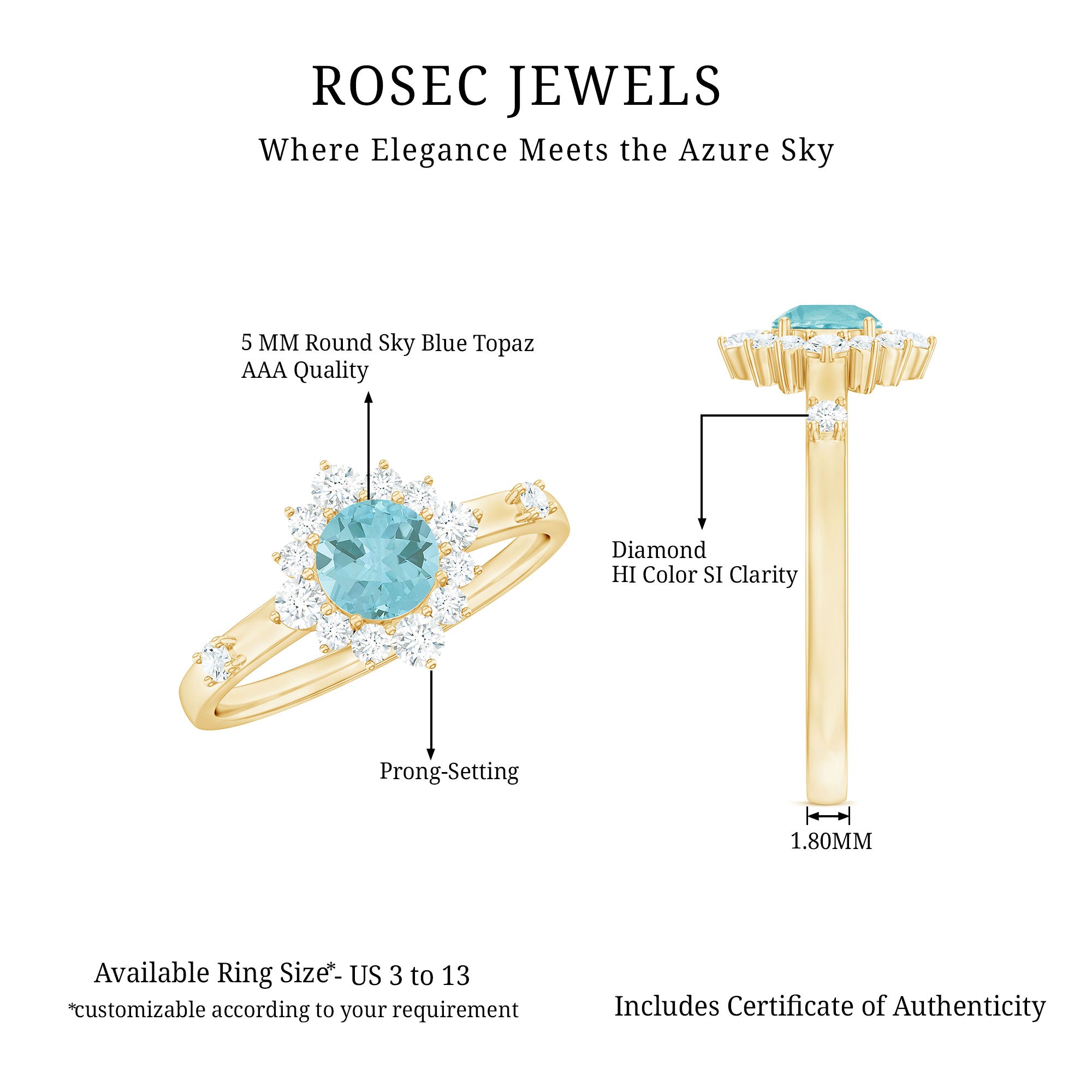 1 CT Round Sky Blue Topaz and Diamond Halo Engagement Ring