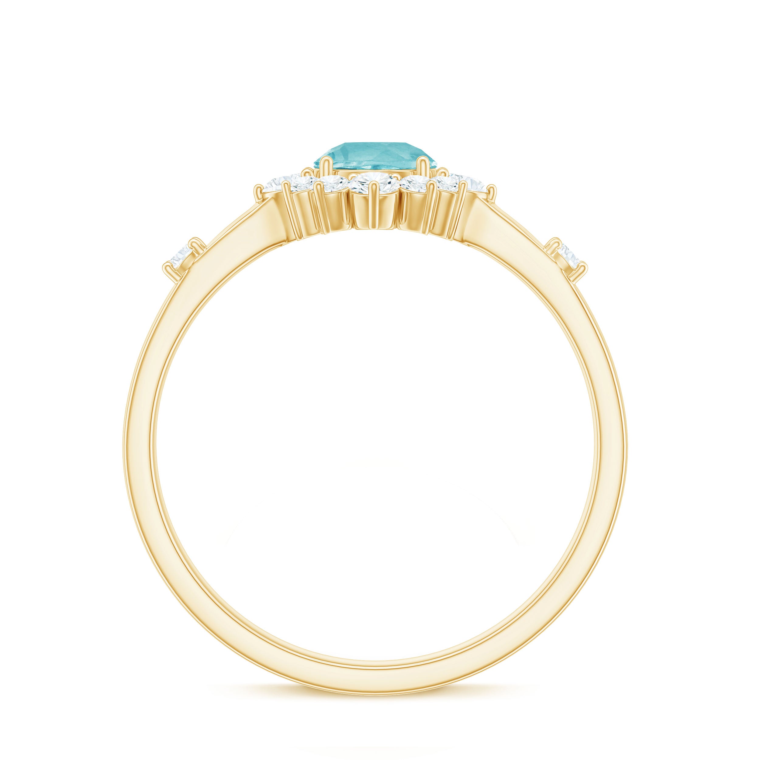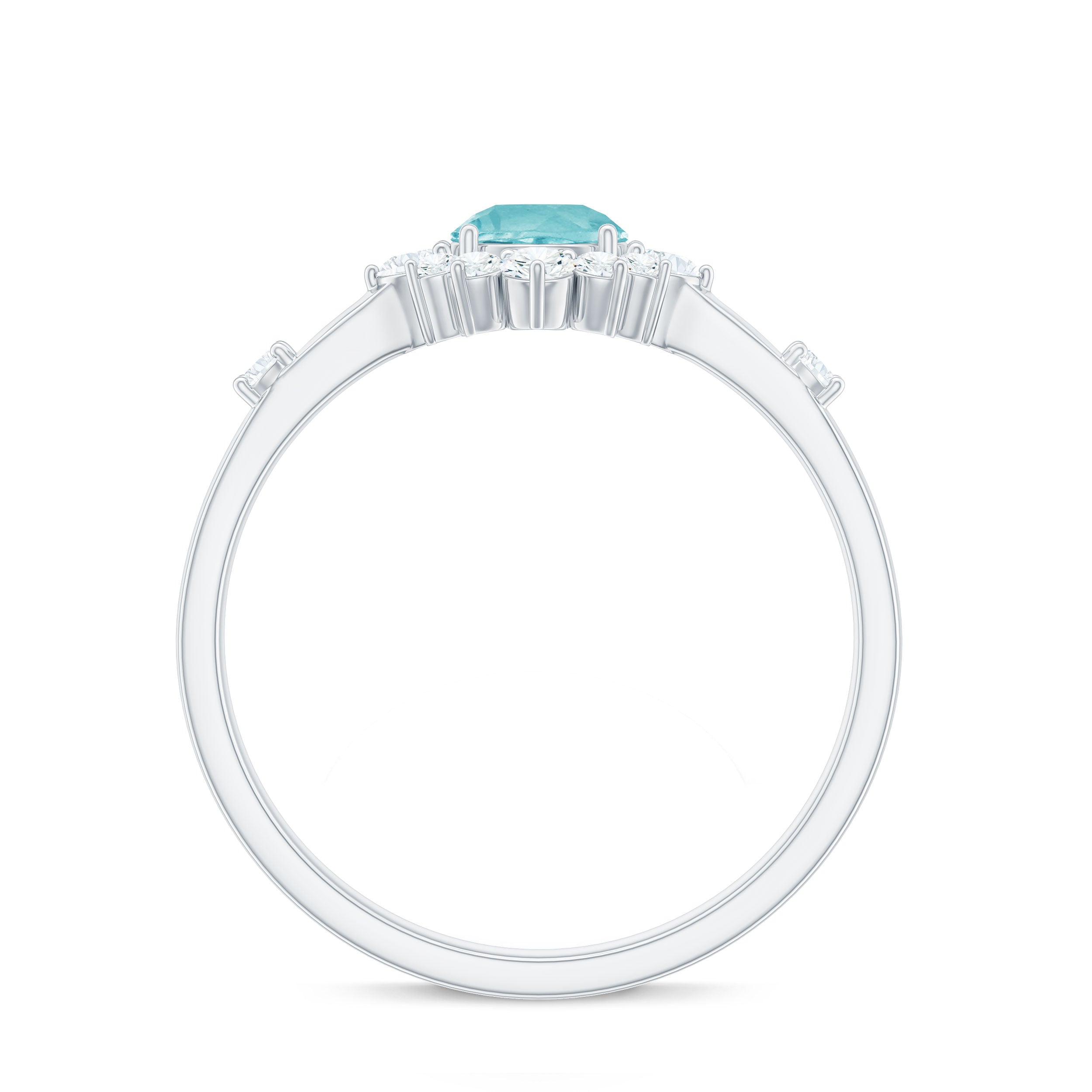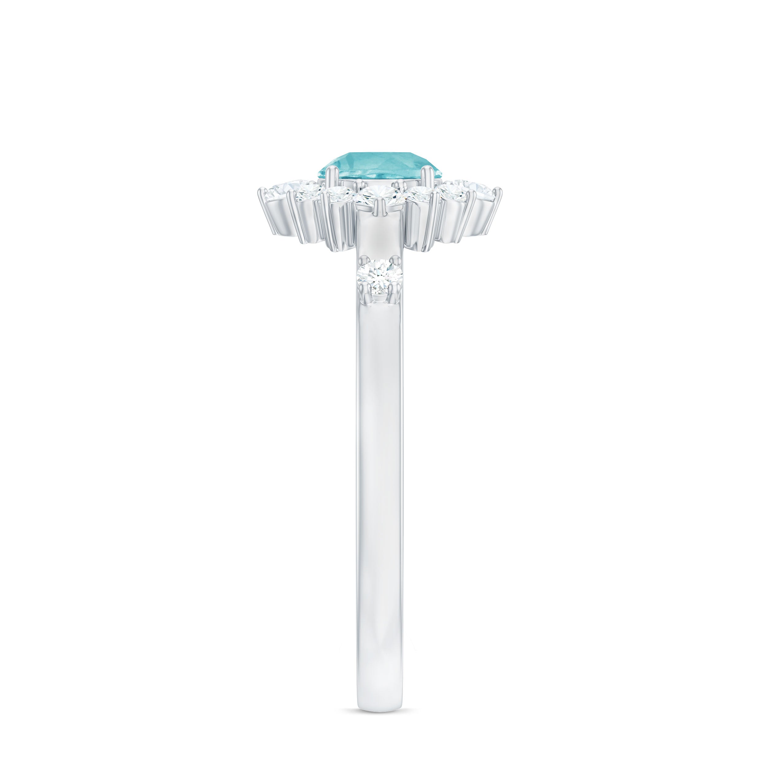 1 CT Round Sky Blue Topaz and Diamond Halo Engagement Ring
