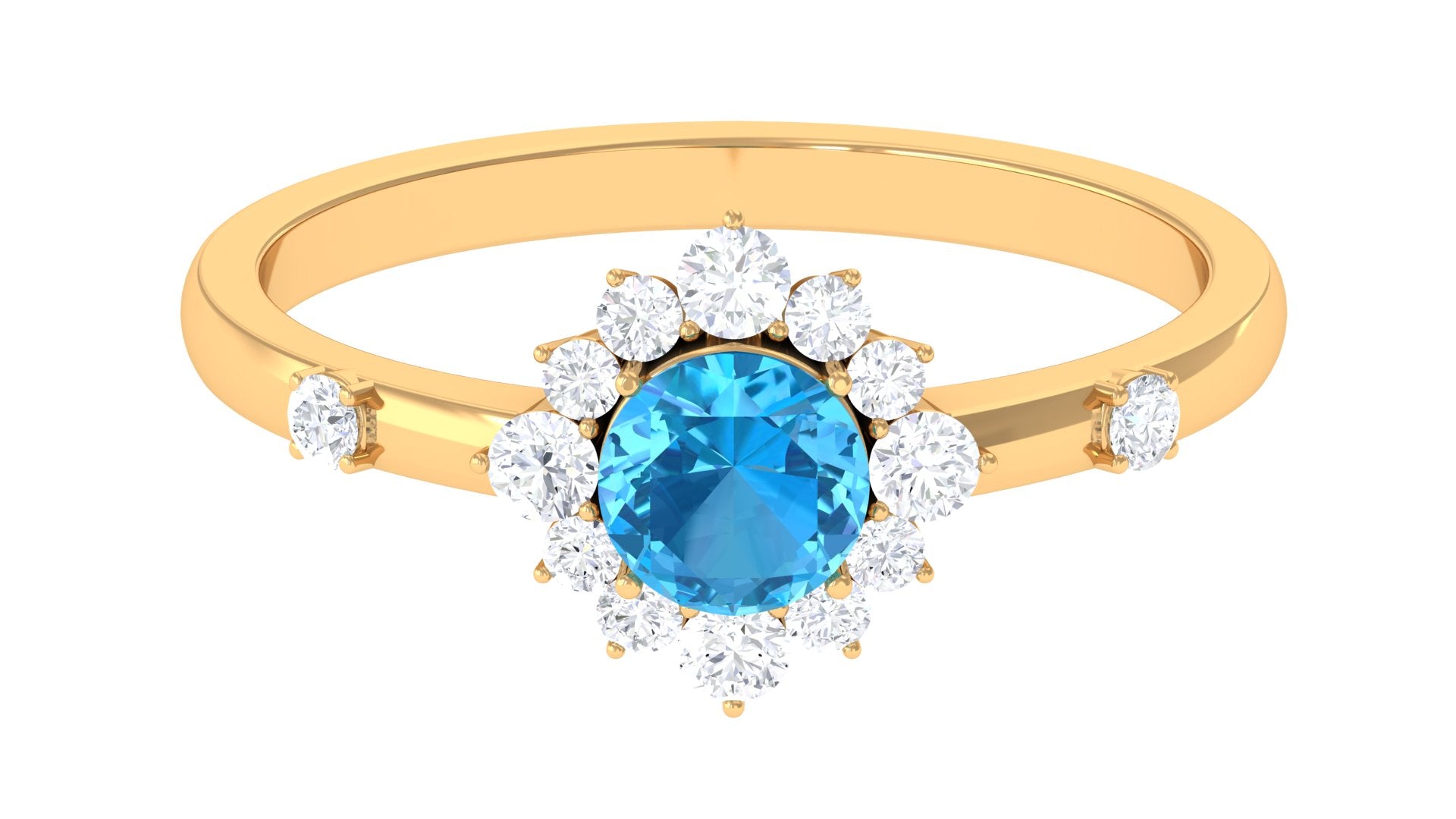 1 CT Round Swiss Blue Topaz and Diamond Halo Engagement Ring