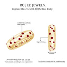 A masterful blend of charm and modern elegance this Ruby Wedding Band captivates its unique style and timeless appeal. A celebration of classic beauty and sophisticated design allows a display of brilliance and encircles the finger in a scattered pattern of splendor. Having the natural beauty of the Ruby gemstone this Promise Ring for Her is a testament to the craftsmanship that goes into creating a piece that appreciates the blend of aesthetics with modern design, offering a unique way to express individuality. The vibrant Red Ruby glittering from a Ruby Eternity Band is sure to take center stage. This Band Ring also makes a stunning July Birthstone Ring, an anniversary present or while commemorating any special occasion.