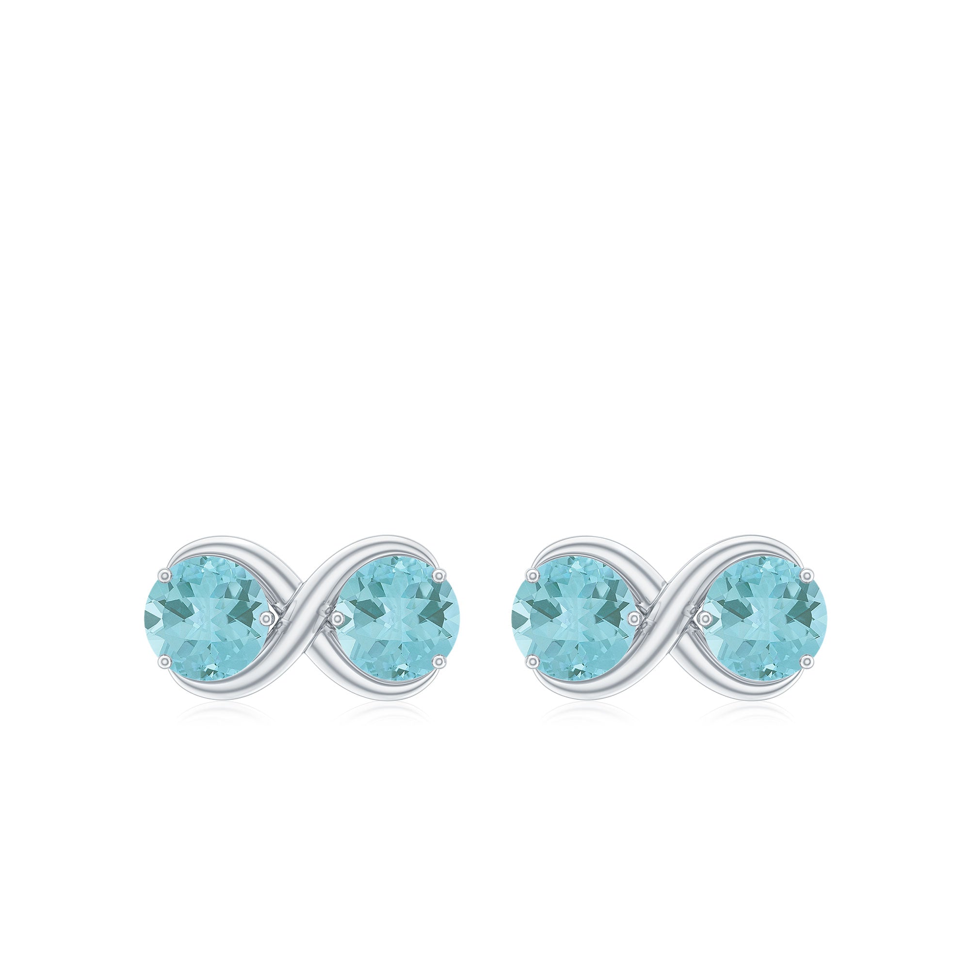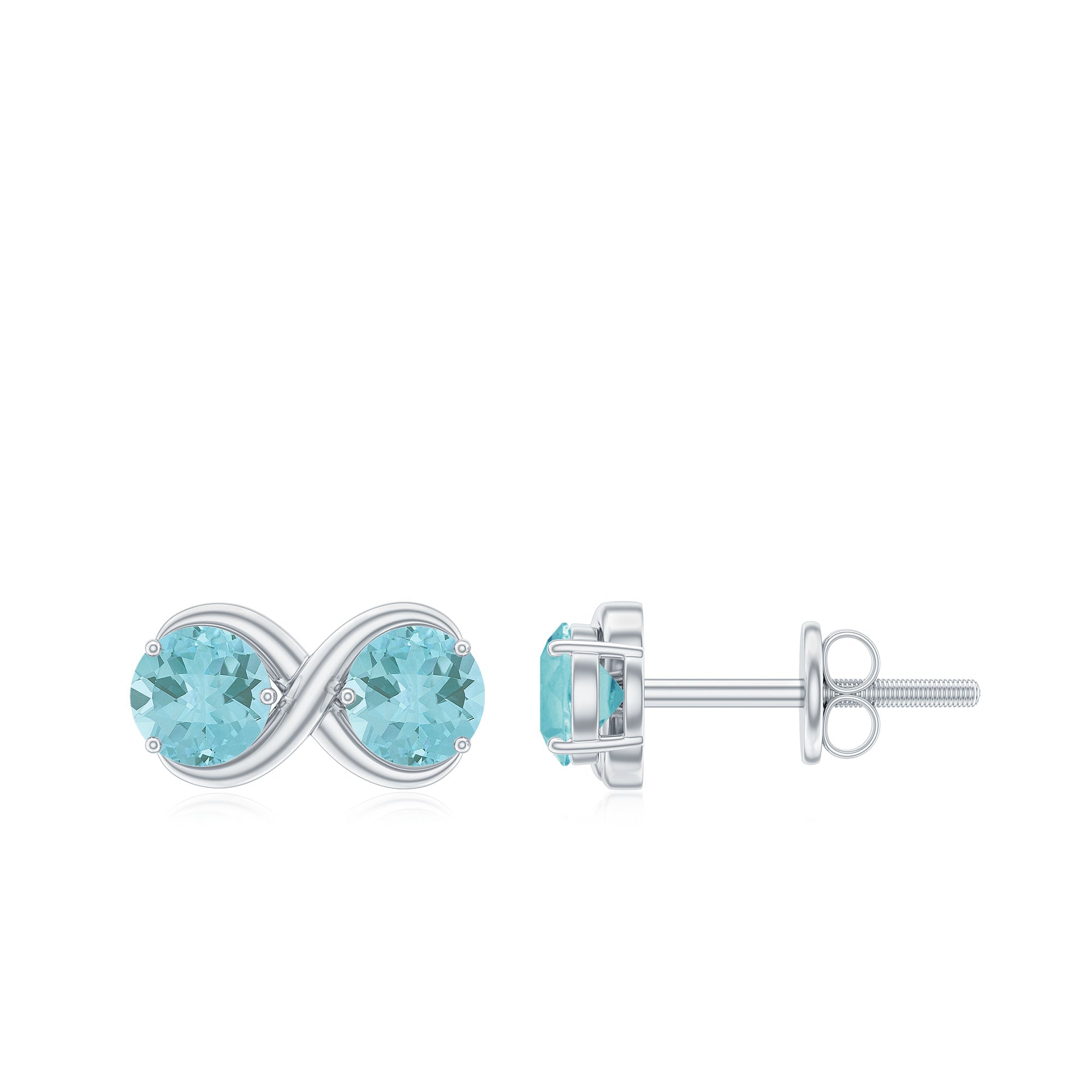 1 CT Simple Sky Blue Topaz Two Stone Infinity Stud Earrings