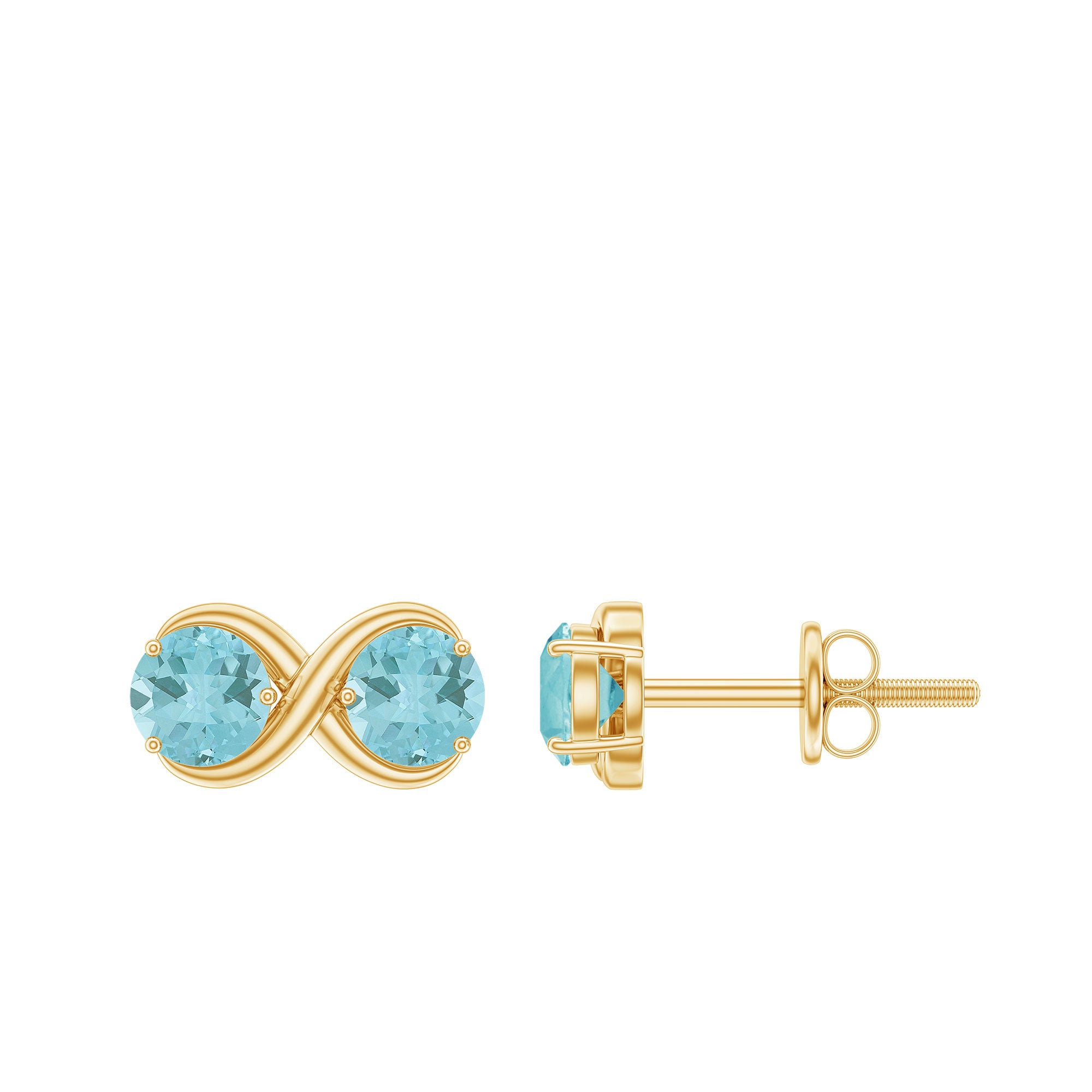 Make this promised day really special for her by giving her this pair of Infinity Stud Earrings she will cherish forever. Starring Round Shape Sky Blue Topaz in a Two Stone Setting held between a gorgeous infinity symbol crafted with Solid Gold.