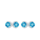 1 CT Simple Swiss Blue Topaz Two Stone Infinity Stud Earrings
