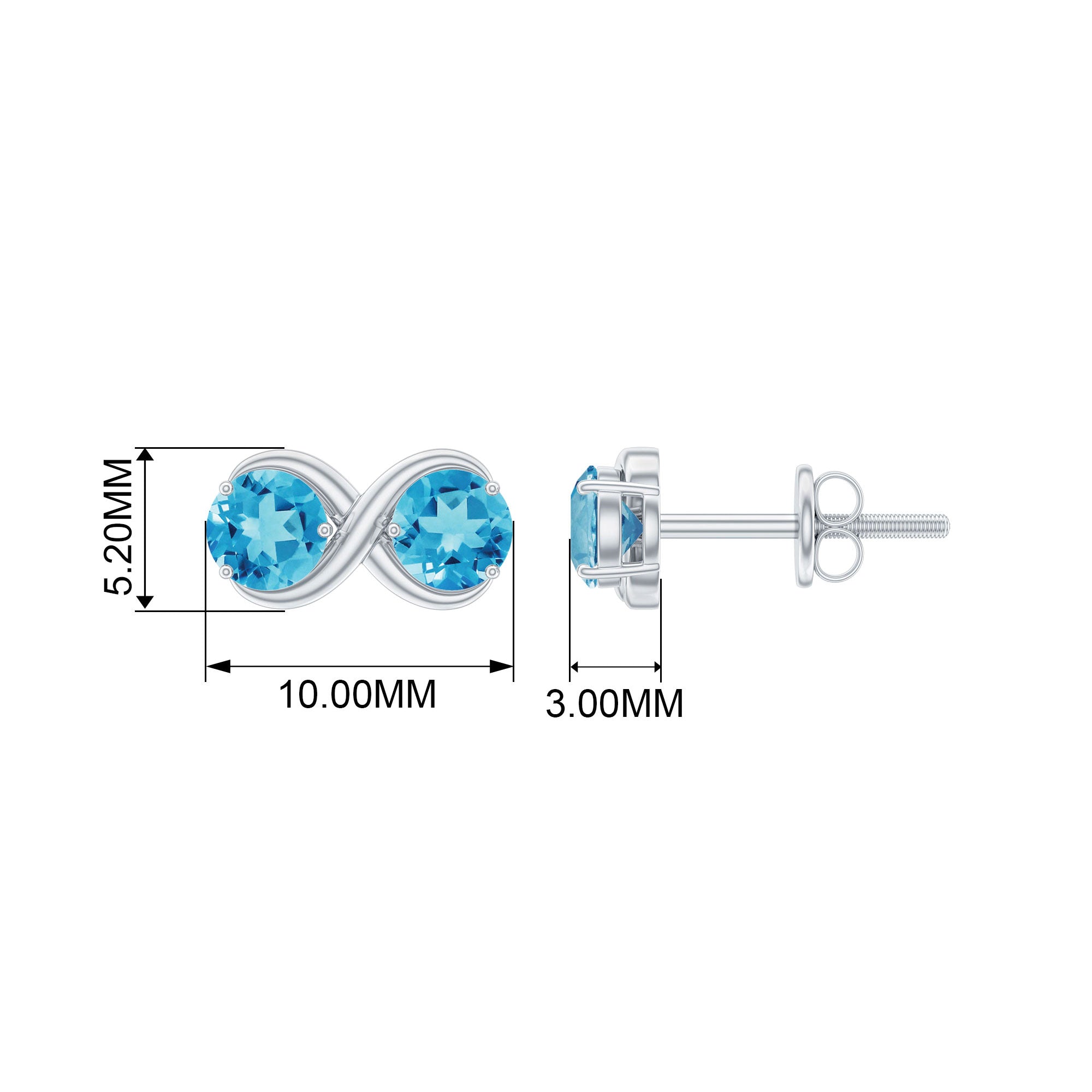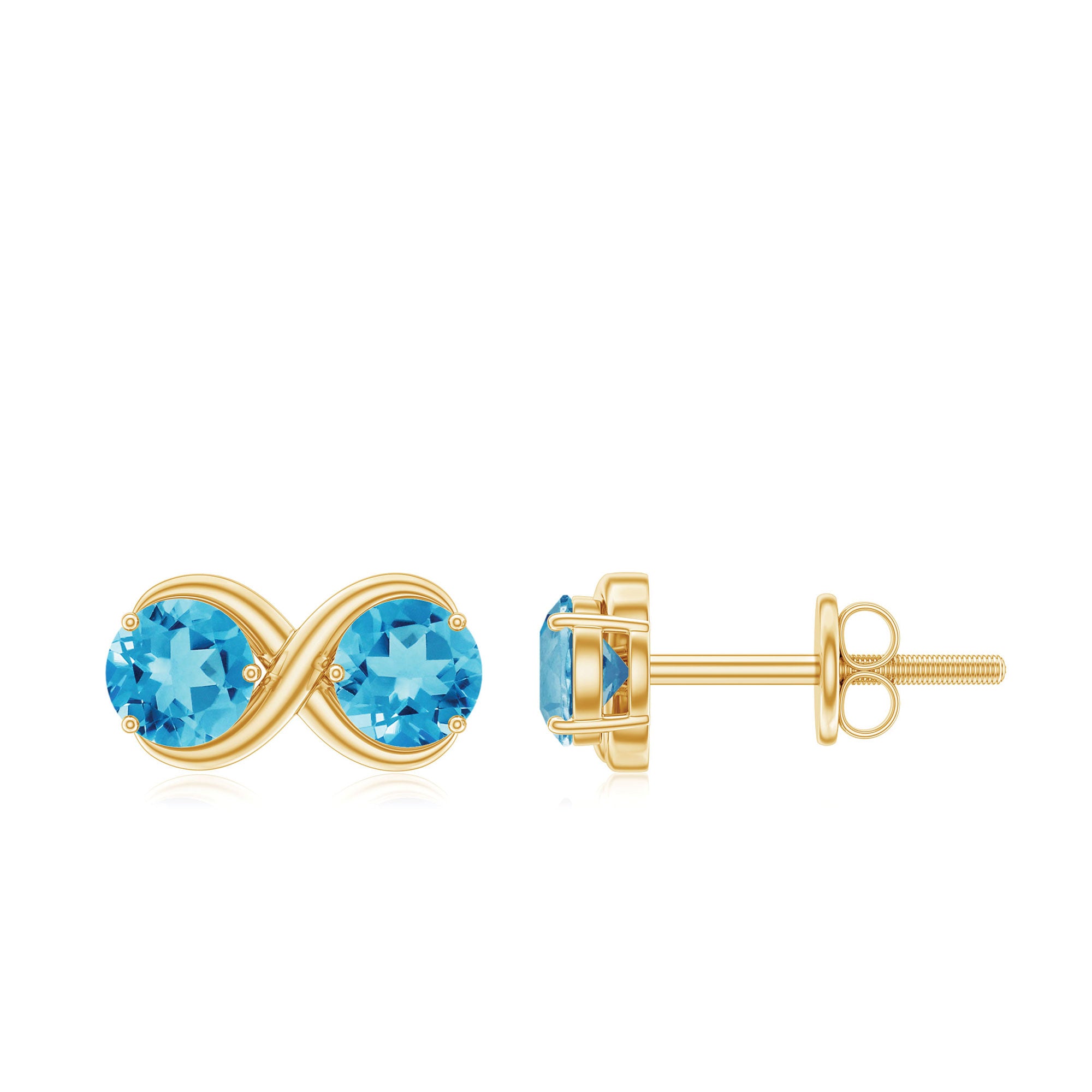 Make this promised day really special for her by giving her this pair of Infinity Stud Earrings she will cherish forever. Starring Round Shape Swiss Blue Topaz in a Two Stone Setting held between a gorgeous infinity symbol crafted with Solid Gold.