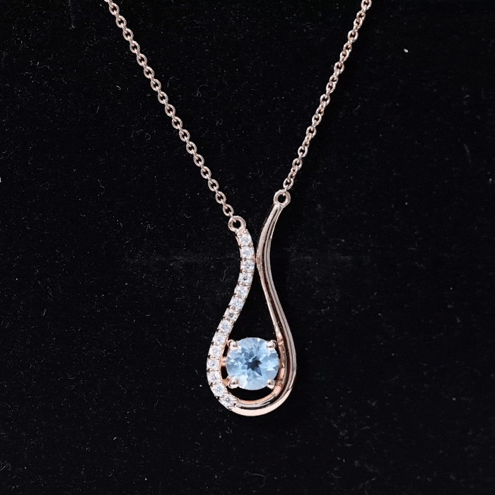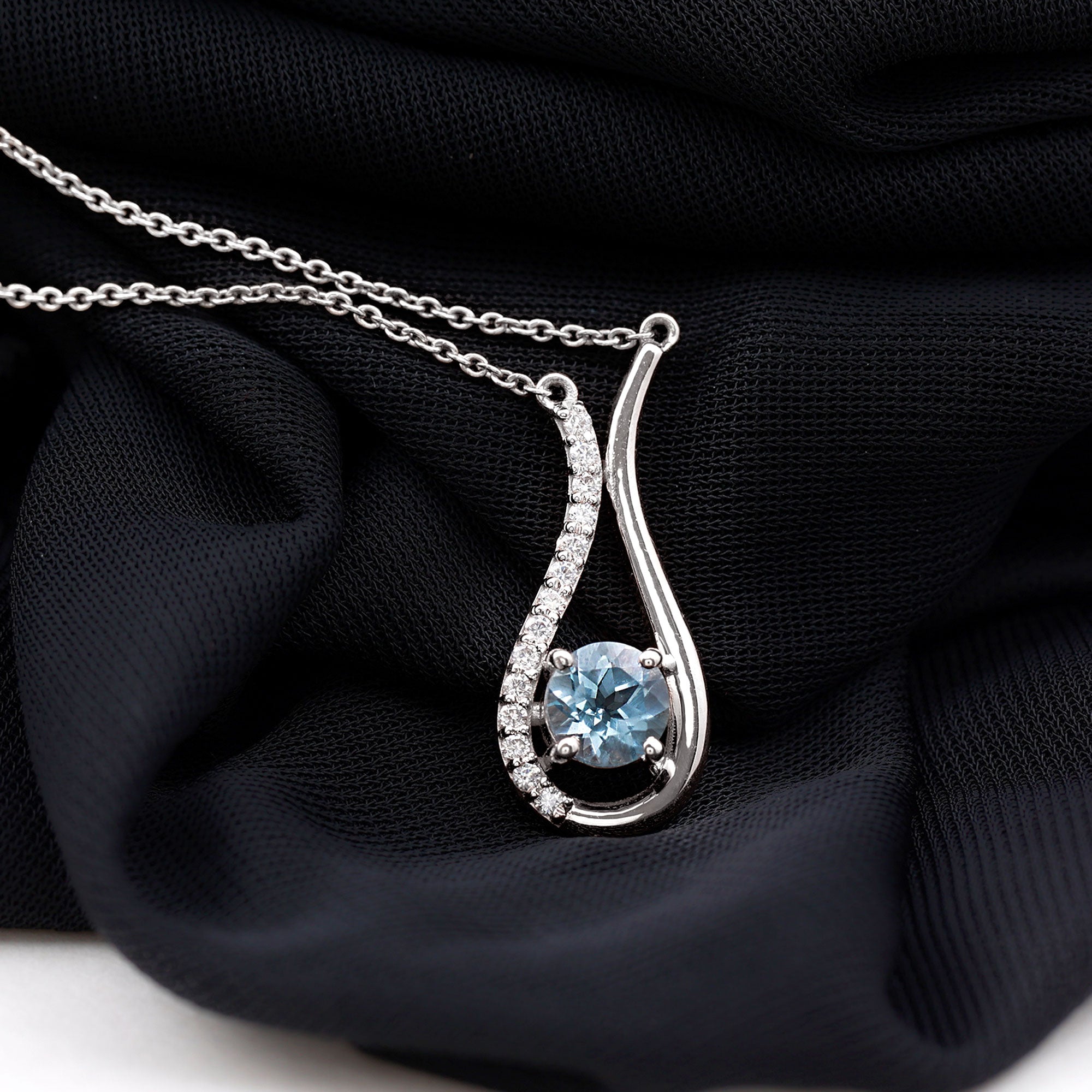 This lovely Teardrop Pendant Necklace is crafted with Solid Gold and adorned with sparkling Sky Blue Topaz Solitaire and Diamond Accents to make for a charming gift for your beloved.