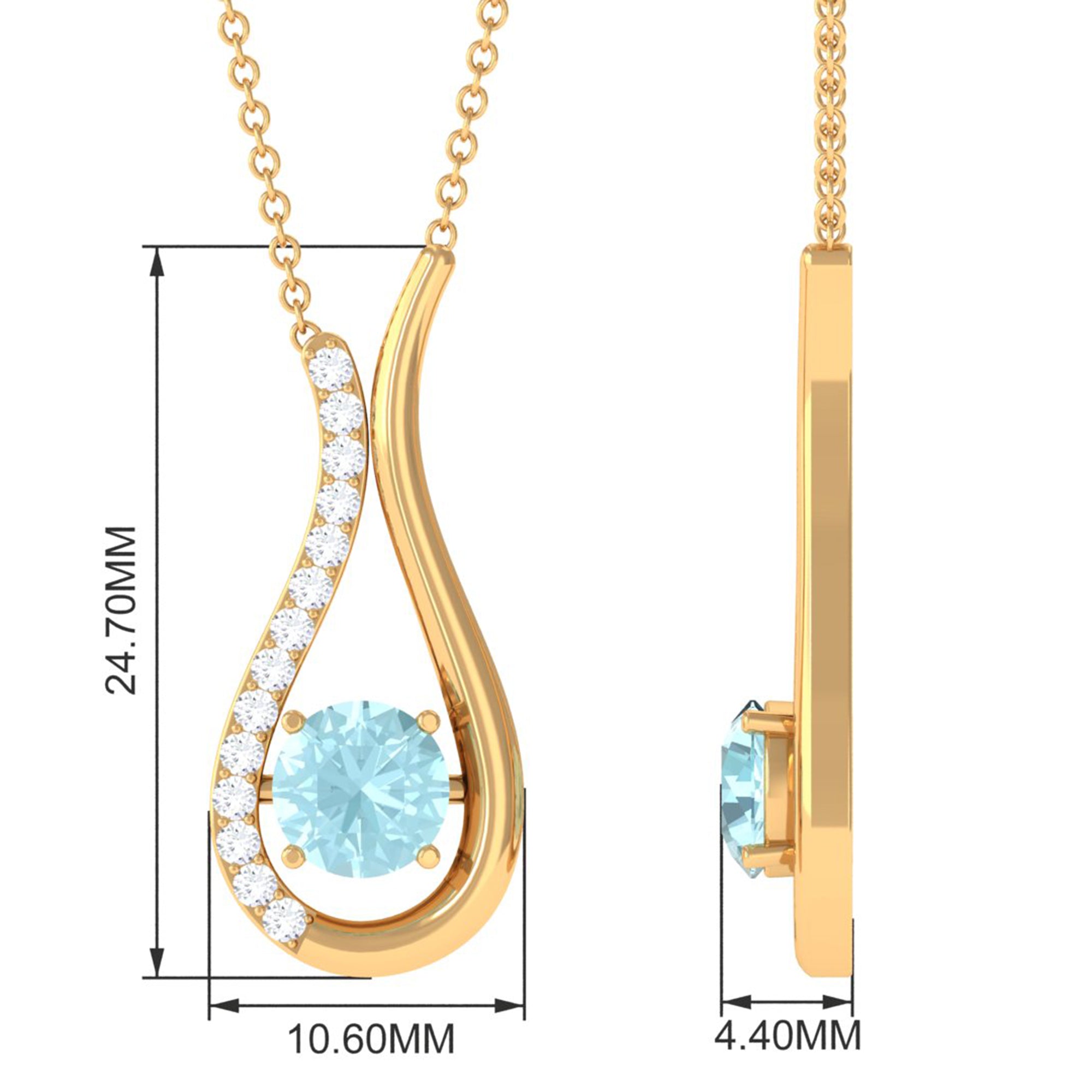 1 CT Sky Blue Topaz and Diamond Teardrop Pendant Necklace