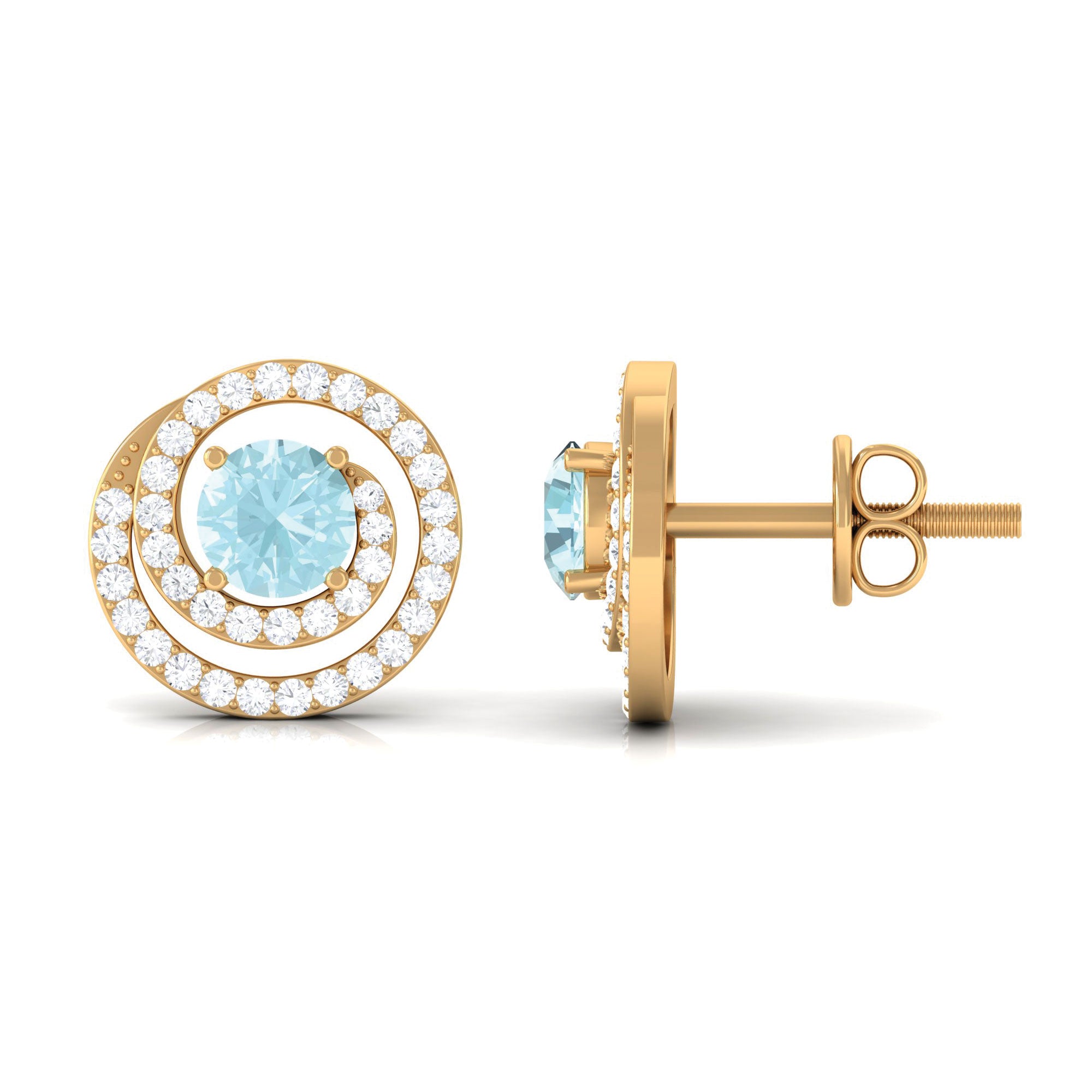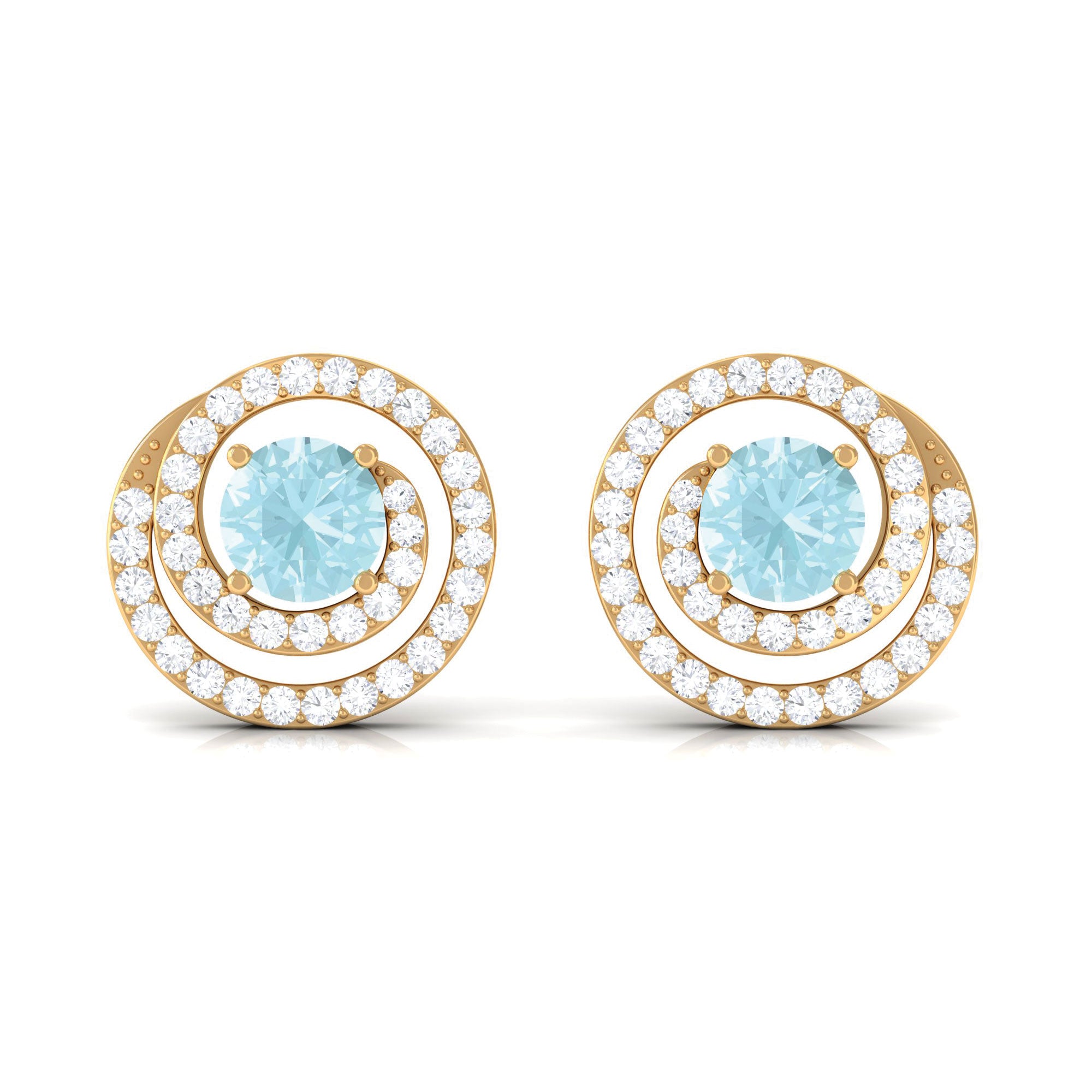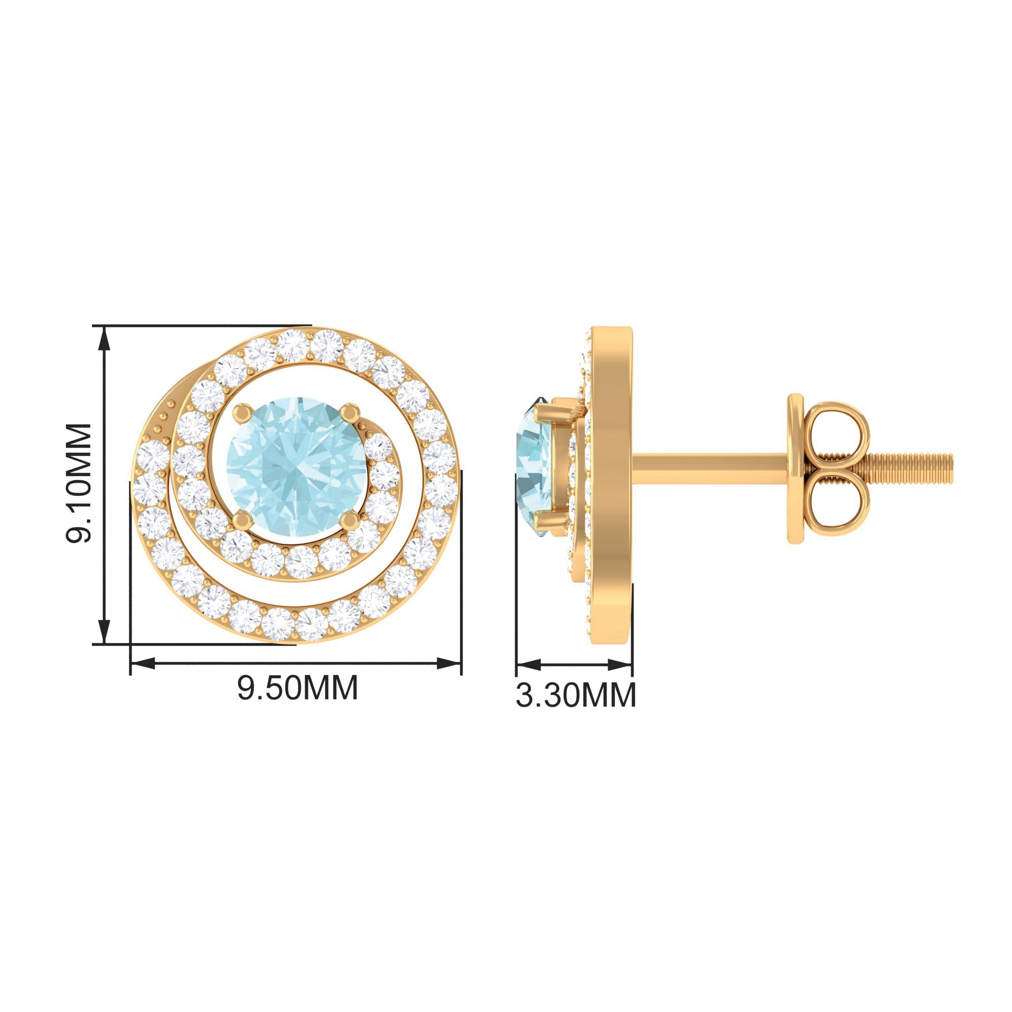 1 CT Sky Blue Topaz Swirl Stud Earrings with Diamond