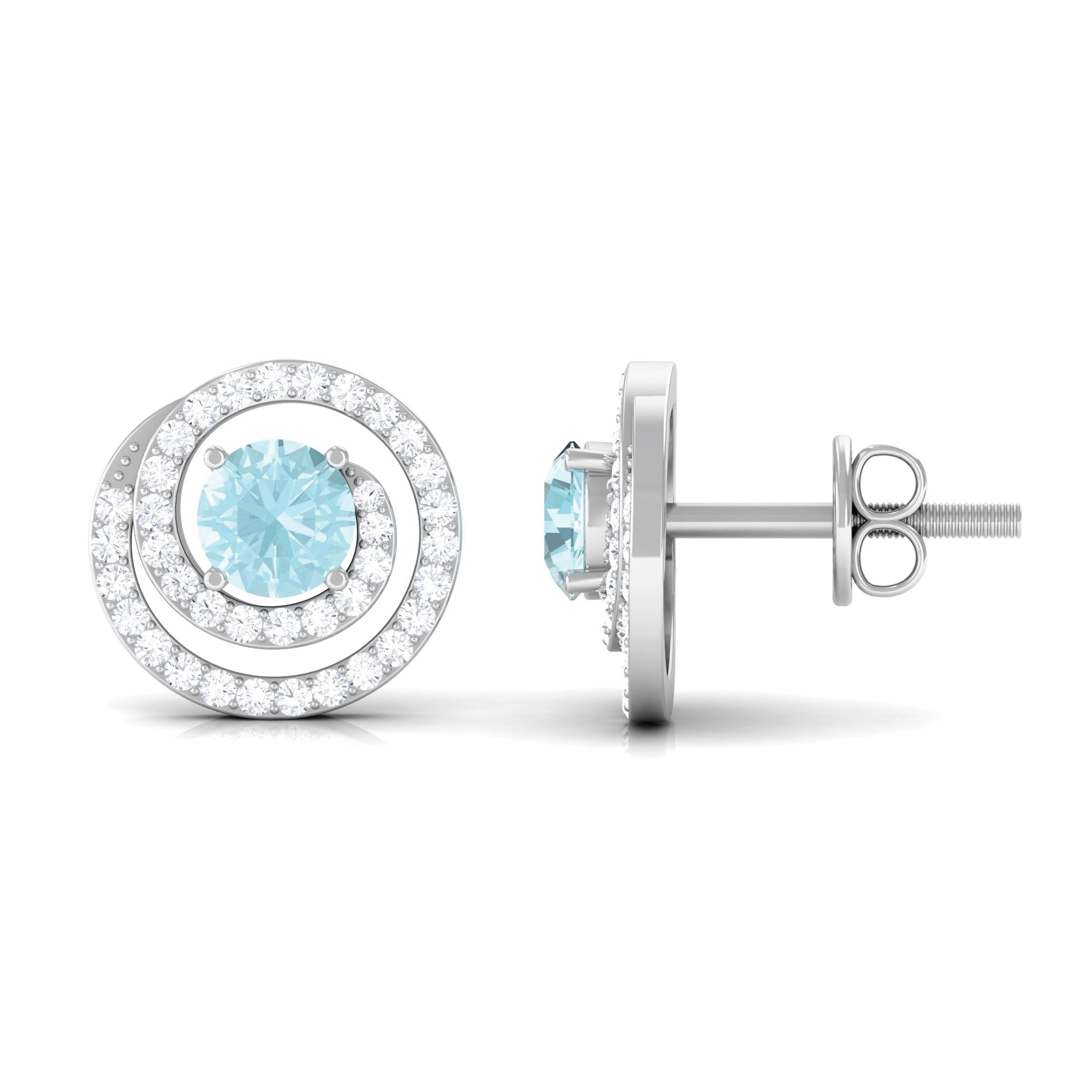 1 CT Sky Blue Topaz Swirl Stud Earrings with Diamond
