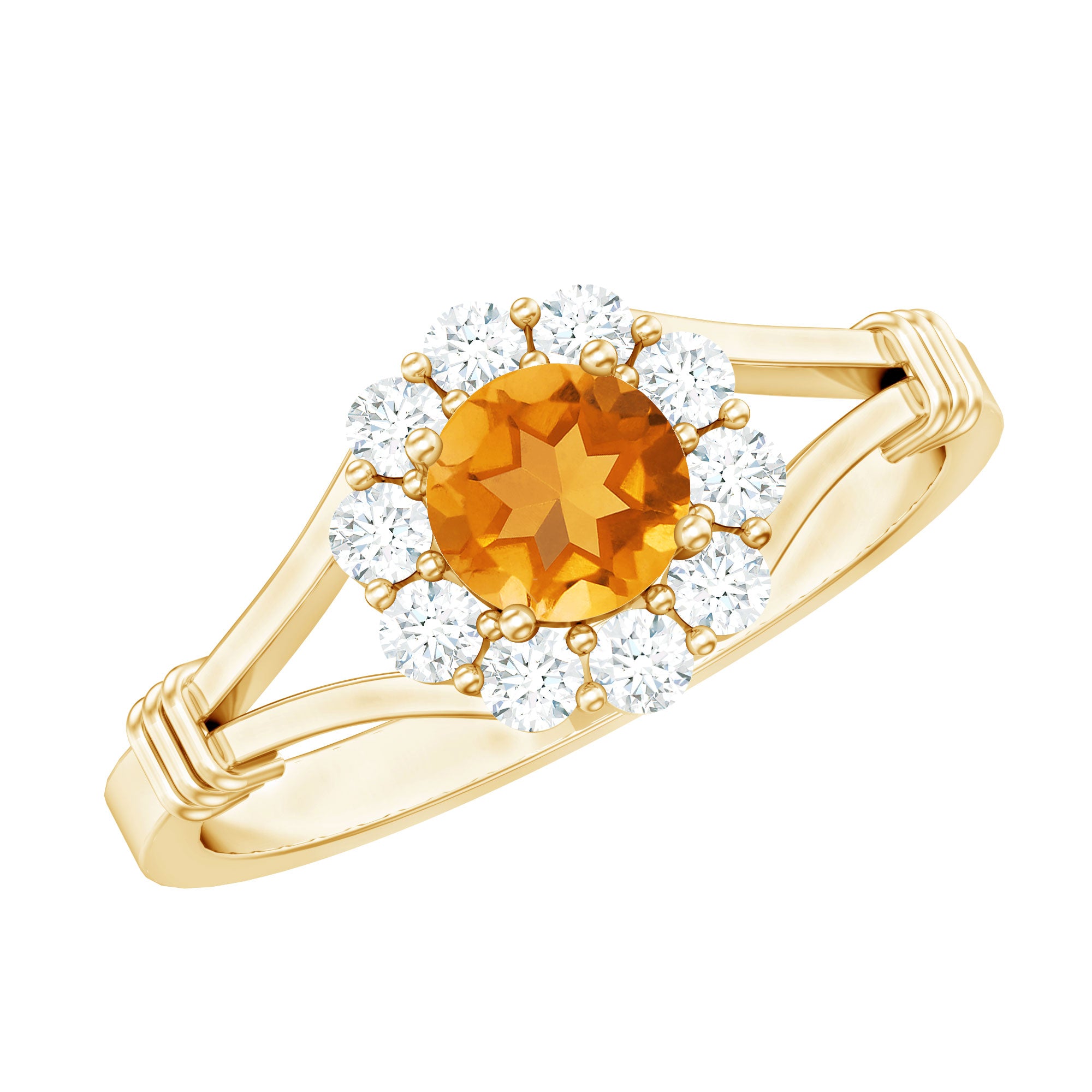 1 CT Split Shank Citrine Flower Engagement Ring with Diamond