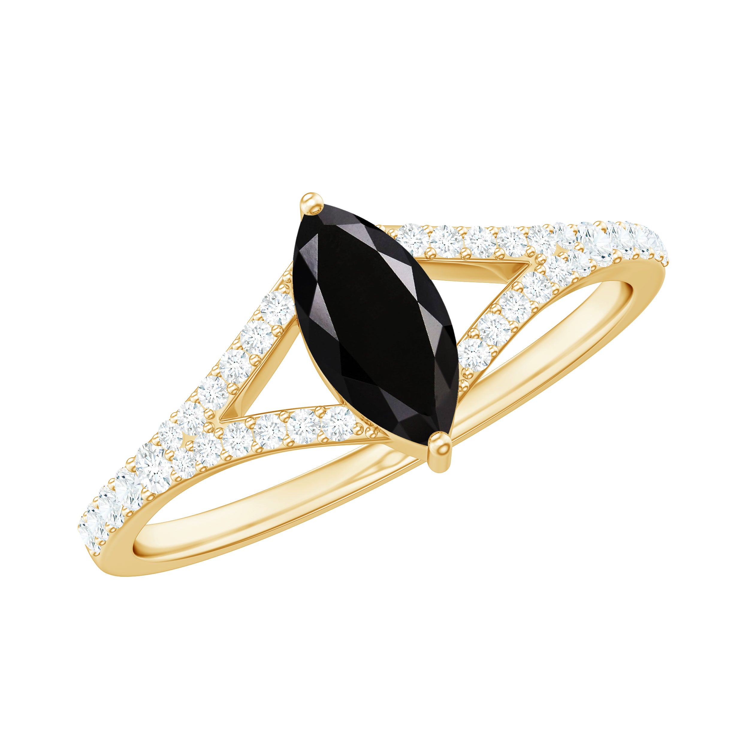 1 CT Split Shank Marquise Cut Black Spinel and Diamond Ring