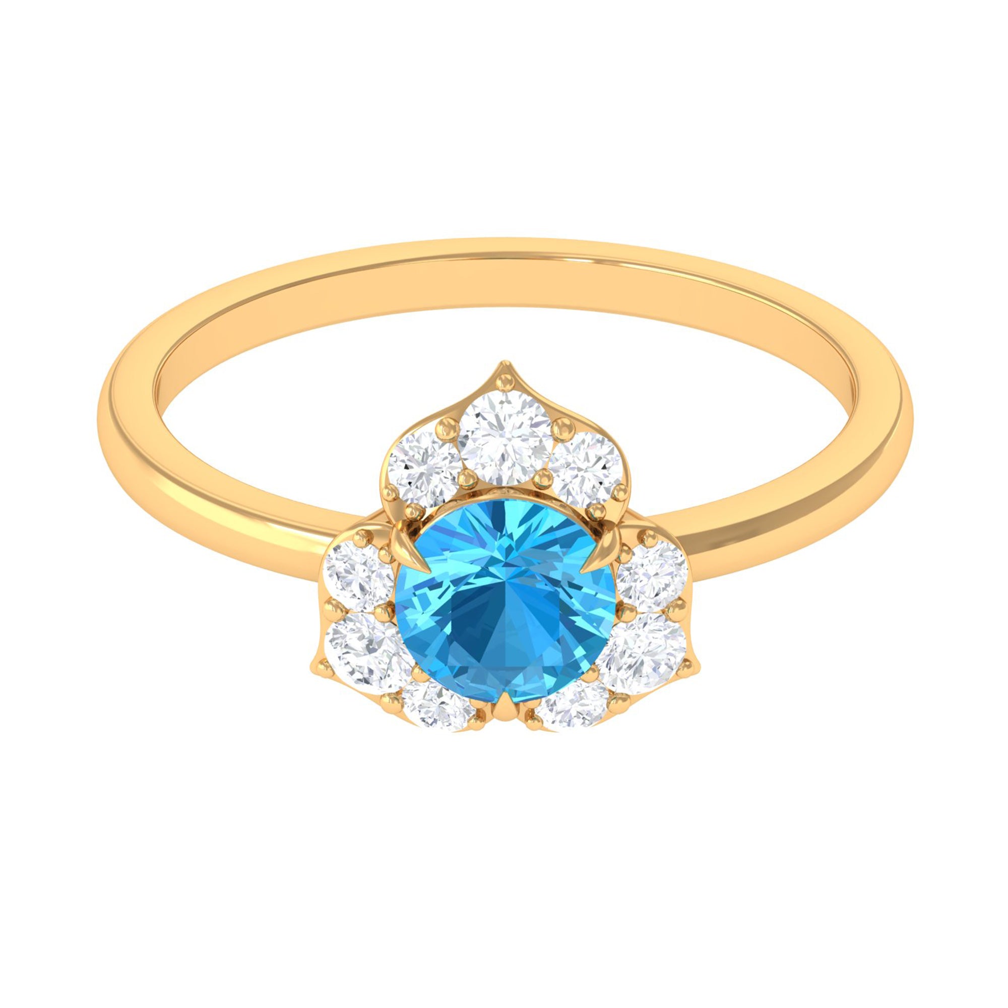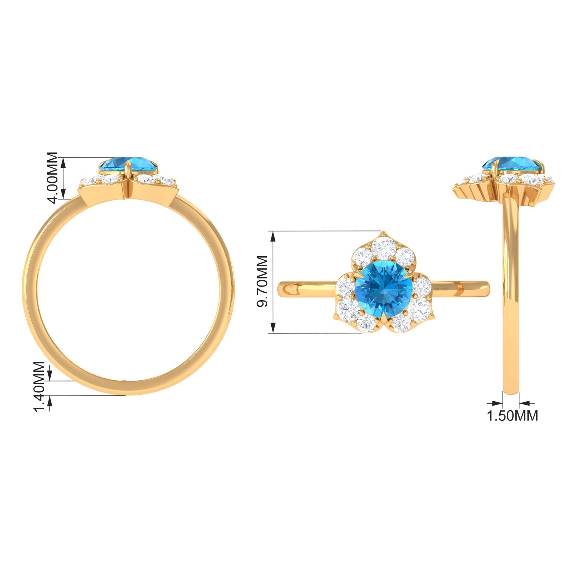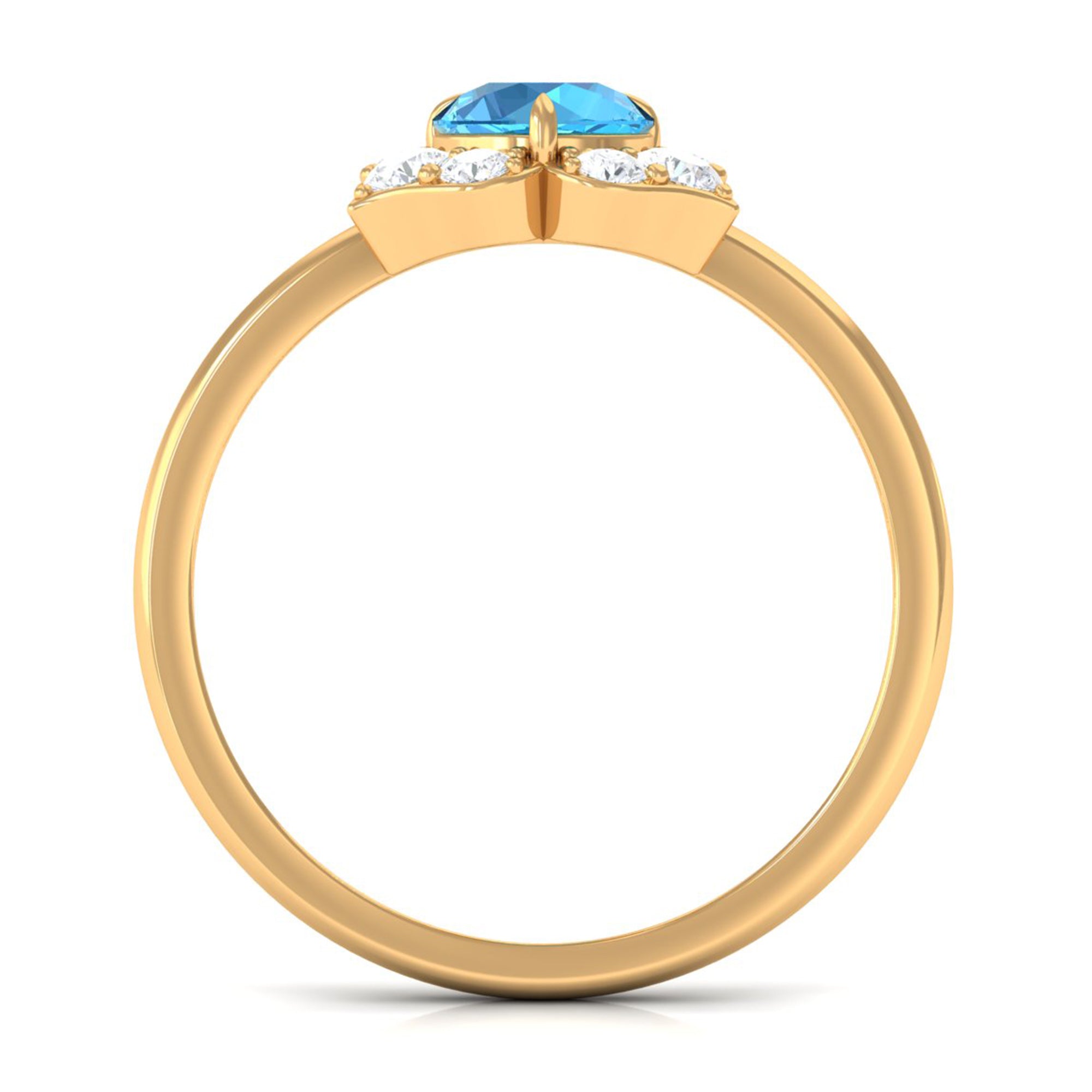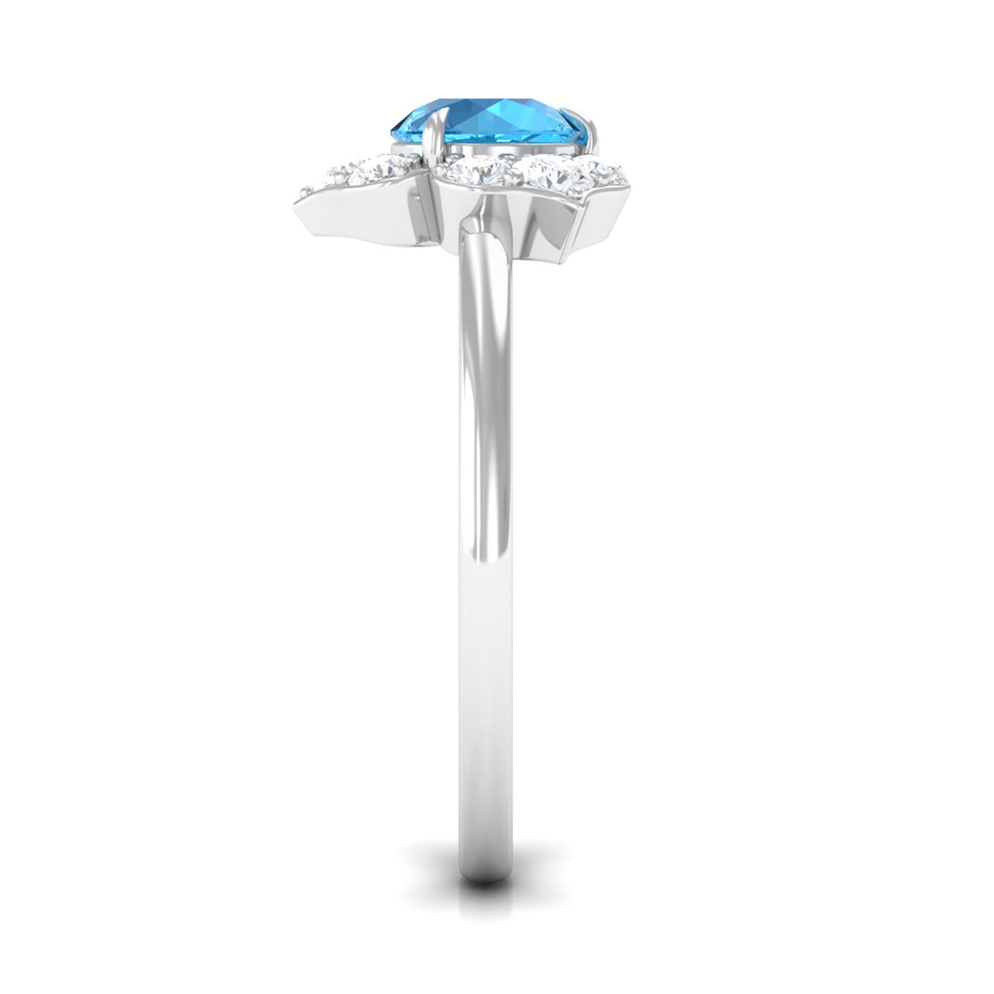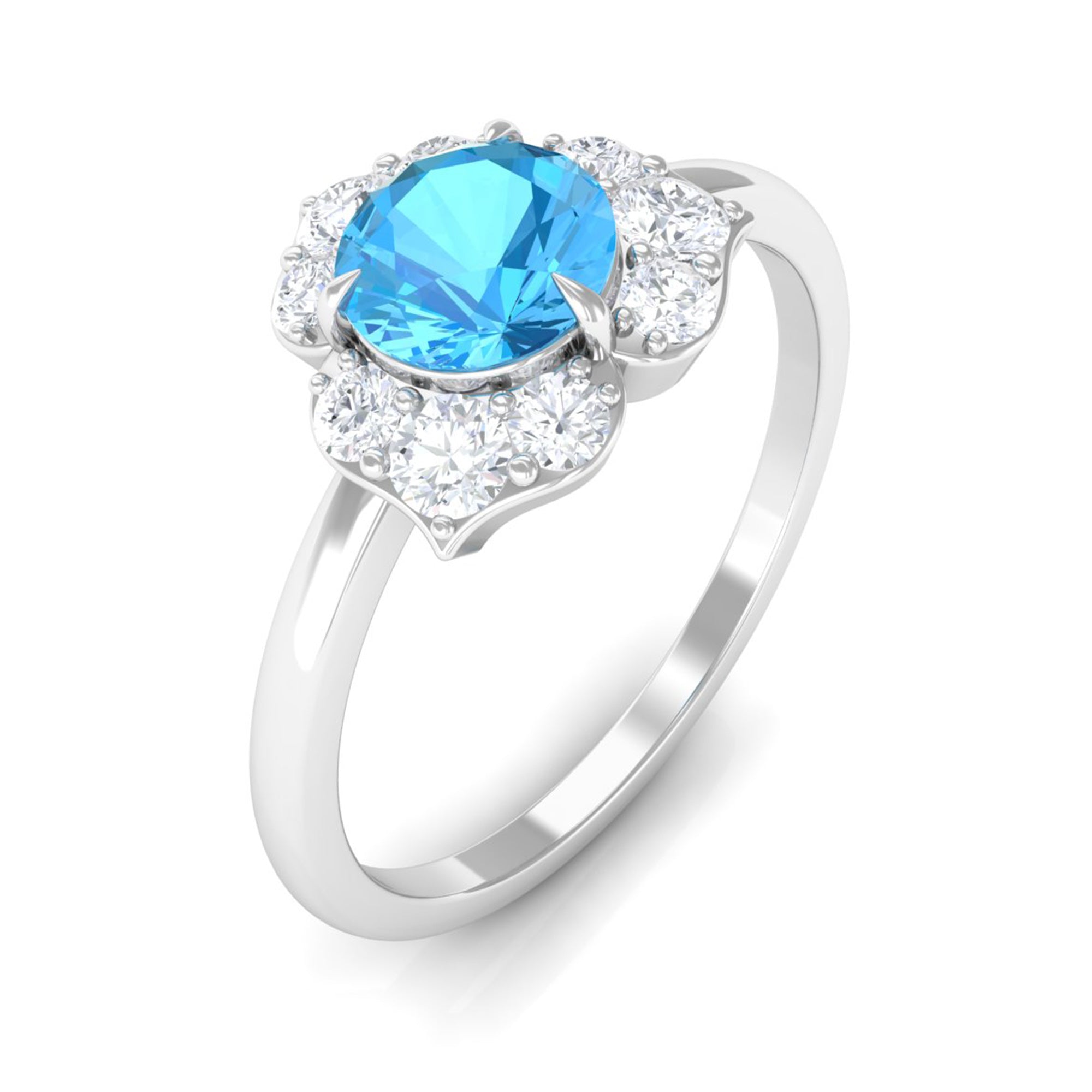 1 CT Swiss Blue Topaz Engagement Ring with Diamond Accent