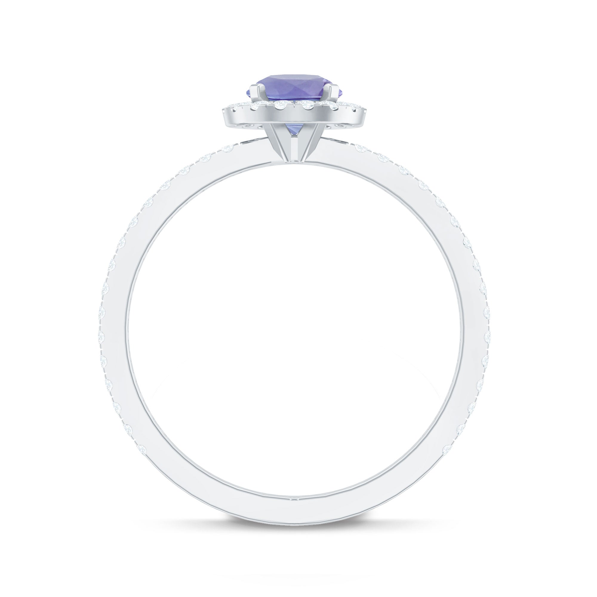 1 CT Tanzanite Solitaire Ring with Diamond Halo