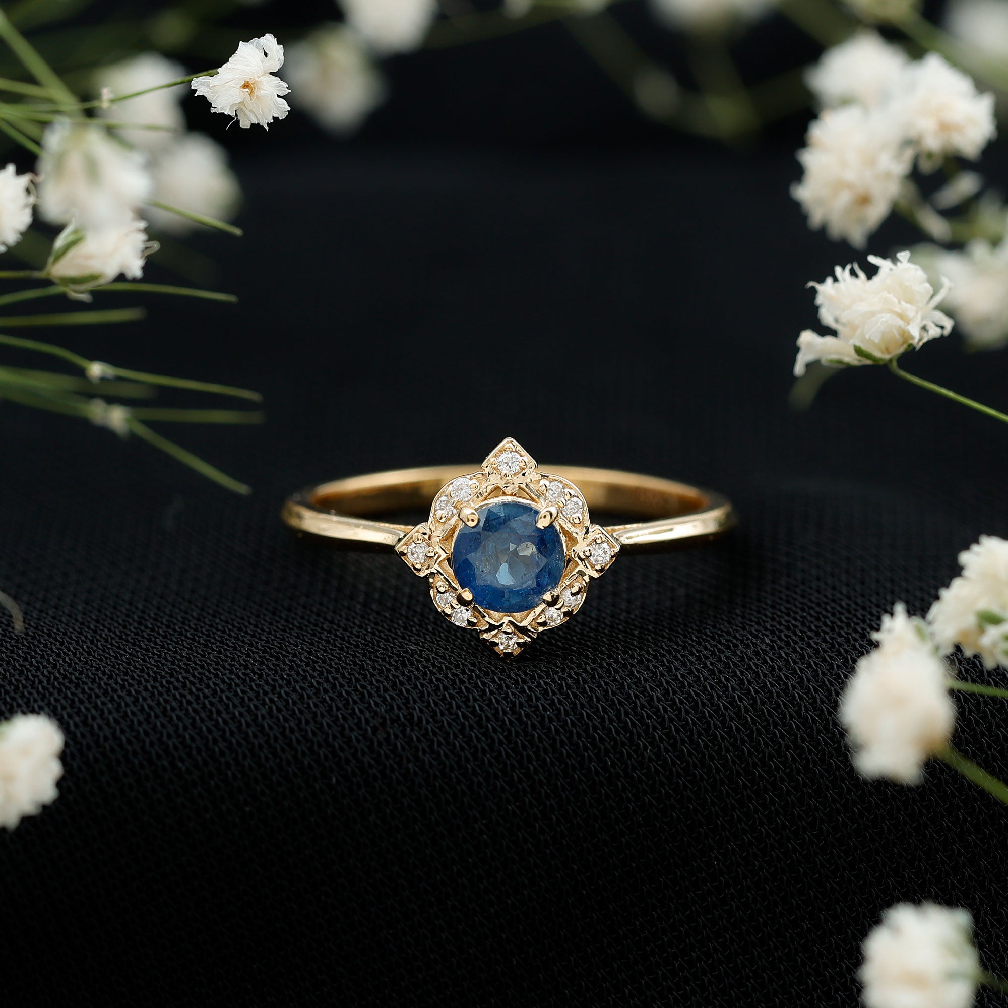 The enchanting Blue Sapphire Vintage Engagement Ring is blooming with Accented Diamond on the Shank. This Blue Sapphire and Diamond Engagement Ring is crafted for sumptuous appeal. Add more charm to your occasion with this Vintage Ring, having a unique design makes this ring extremely delightful.