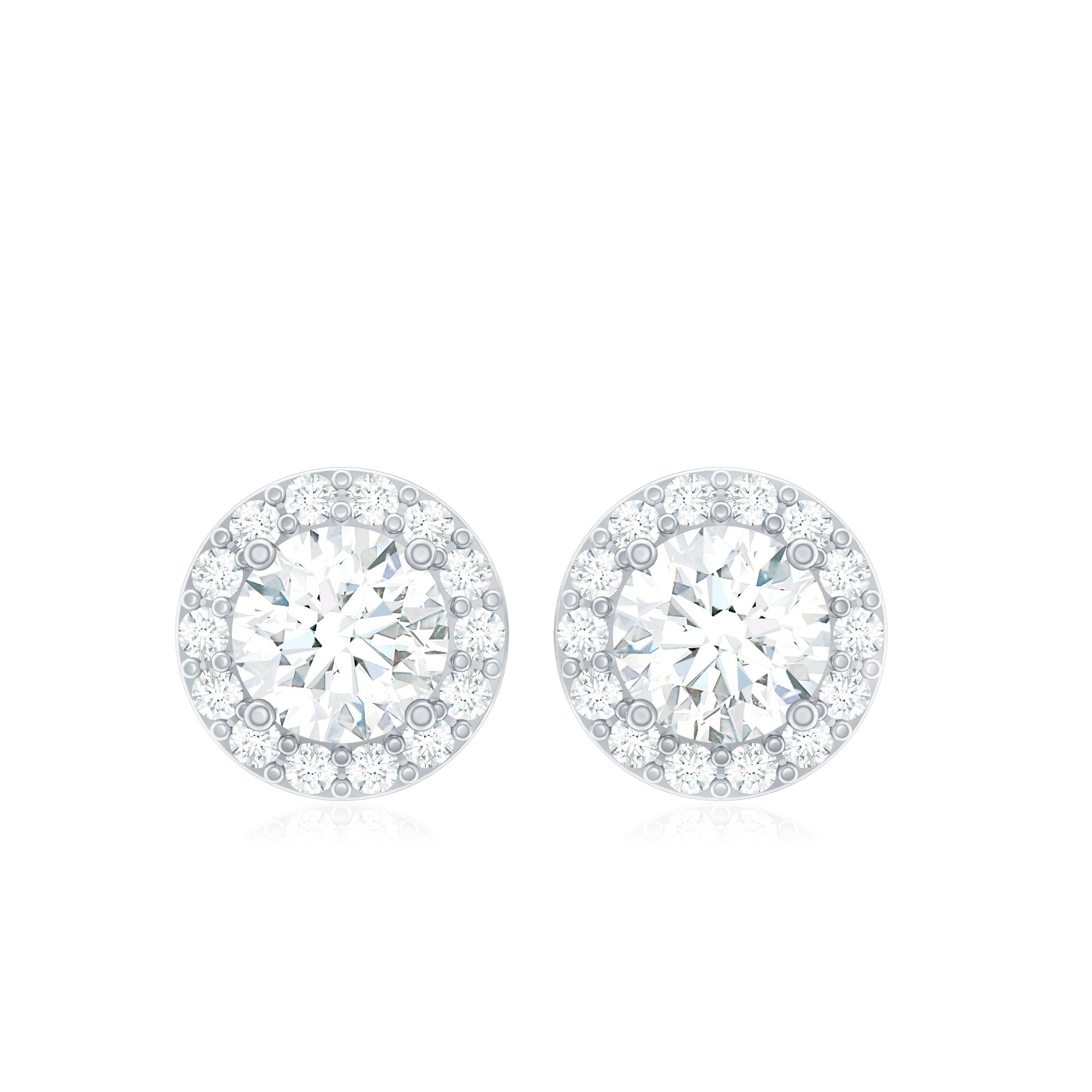 Try something simple yet elegant to enhance your appearance, such as these Classic Halo Stud Earrings embellished with Round Cut Zircon in Prong Setting. These Zircon Classic Stud Earrings are crafted with Solid Gold for a stunning look.