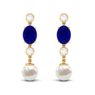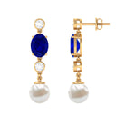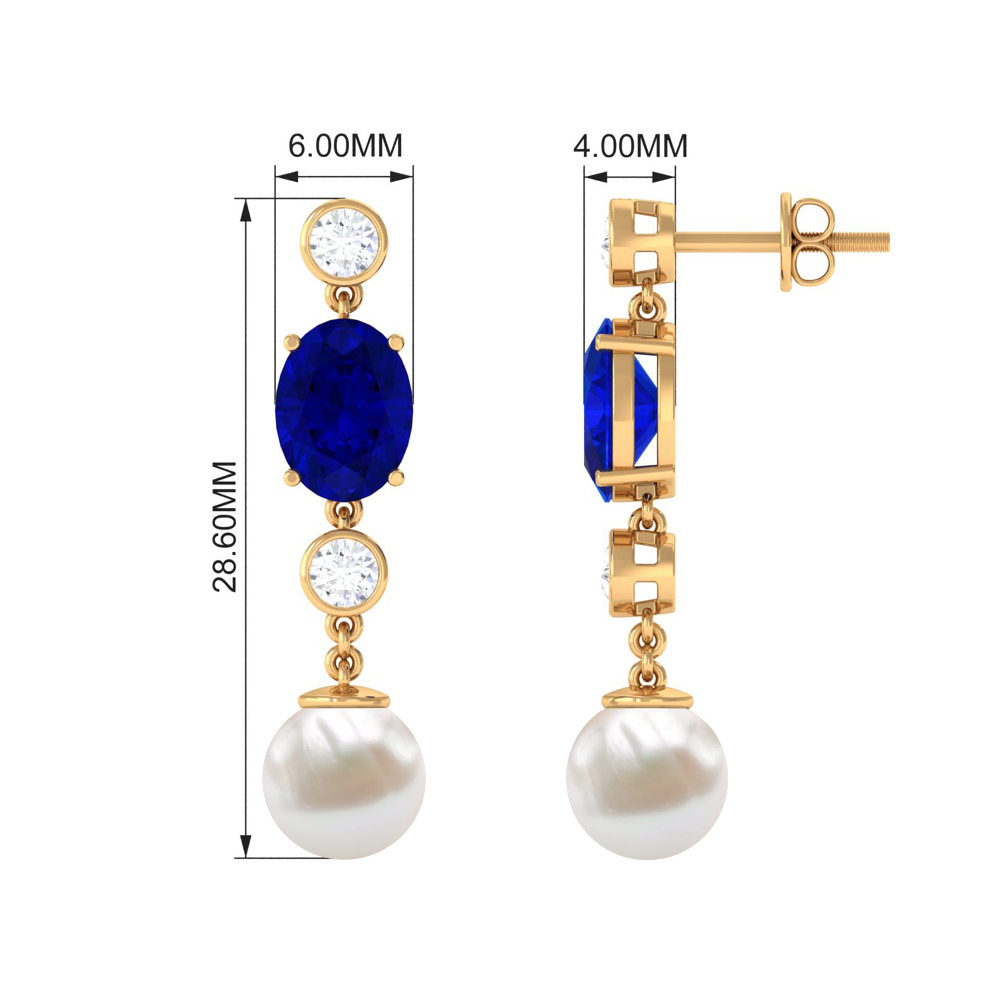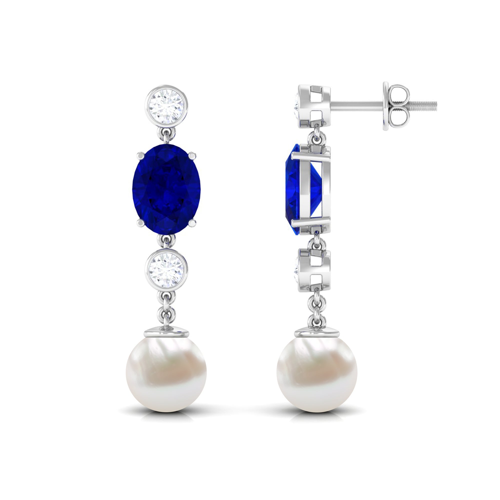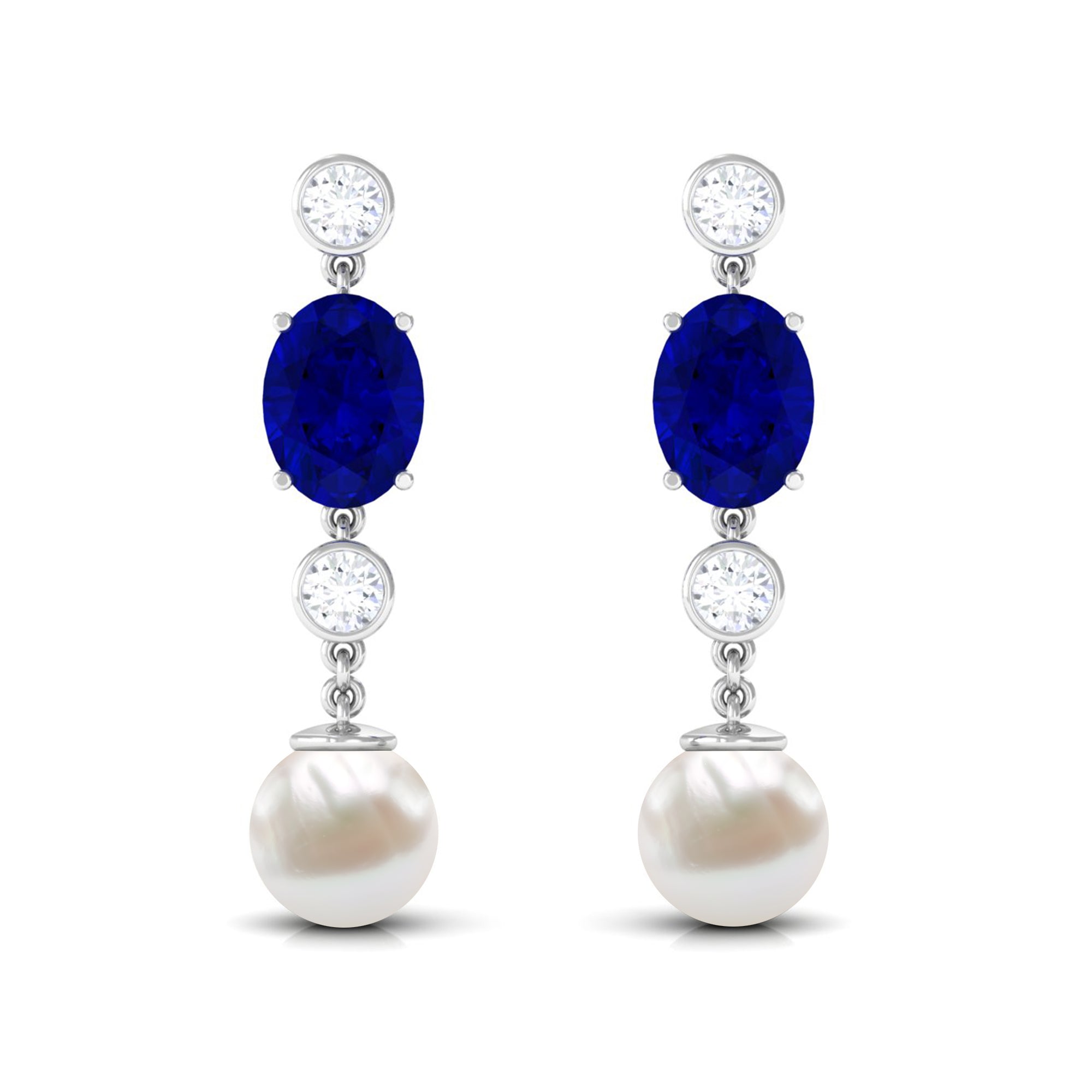 10 CT Created Blue Sapphire and Freshwater Pearl Dangle Earrings with Moissanite