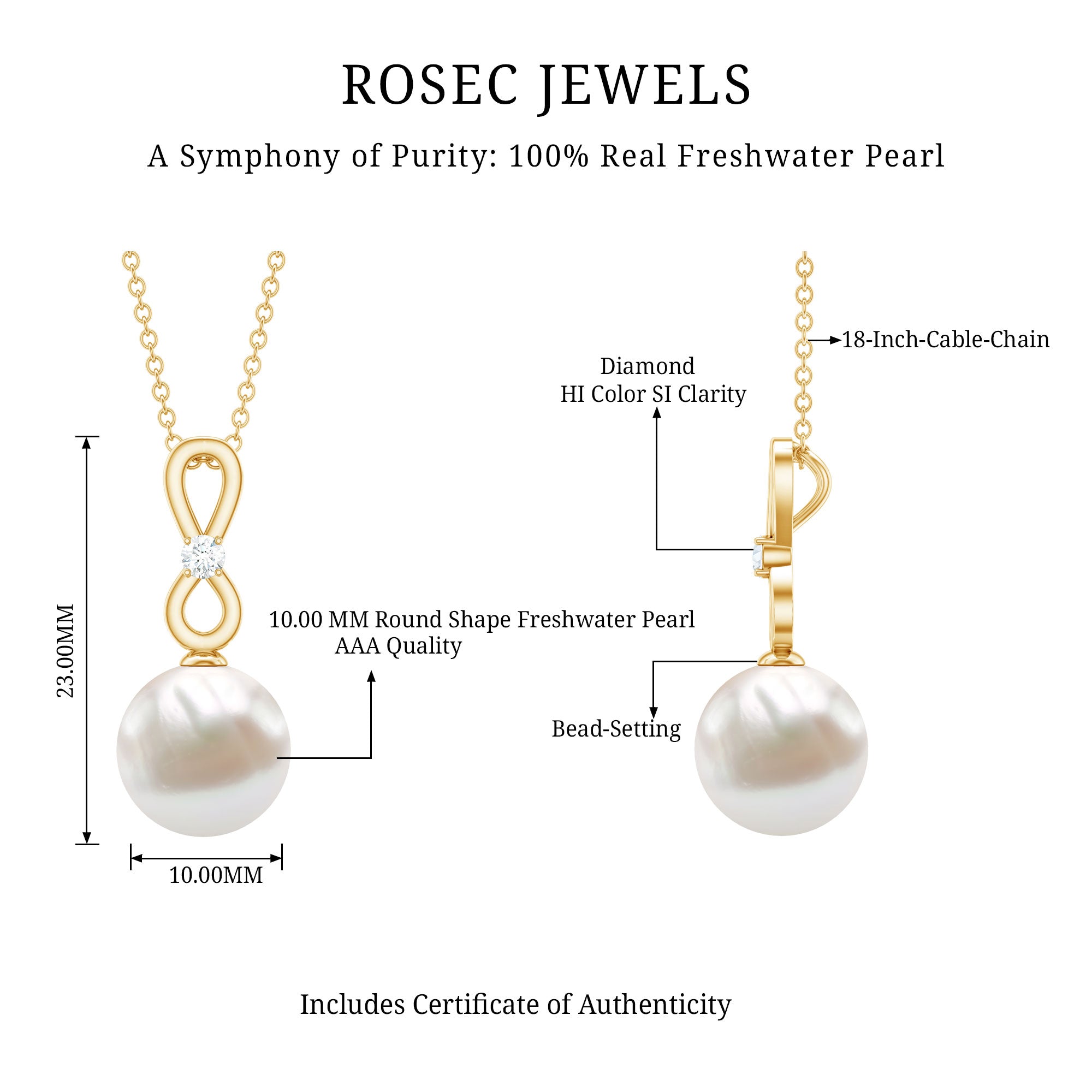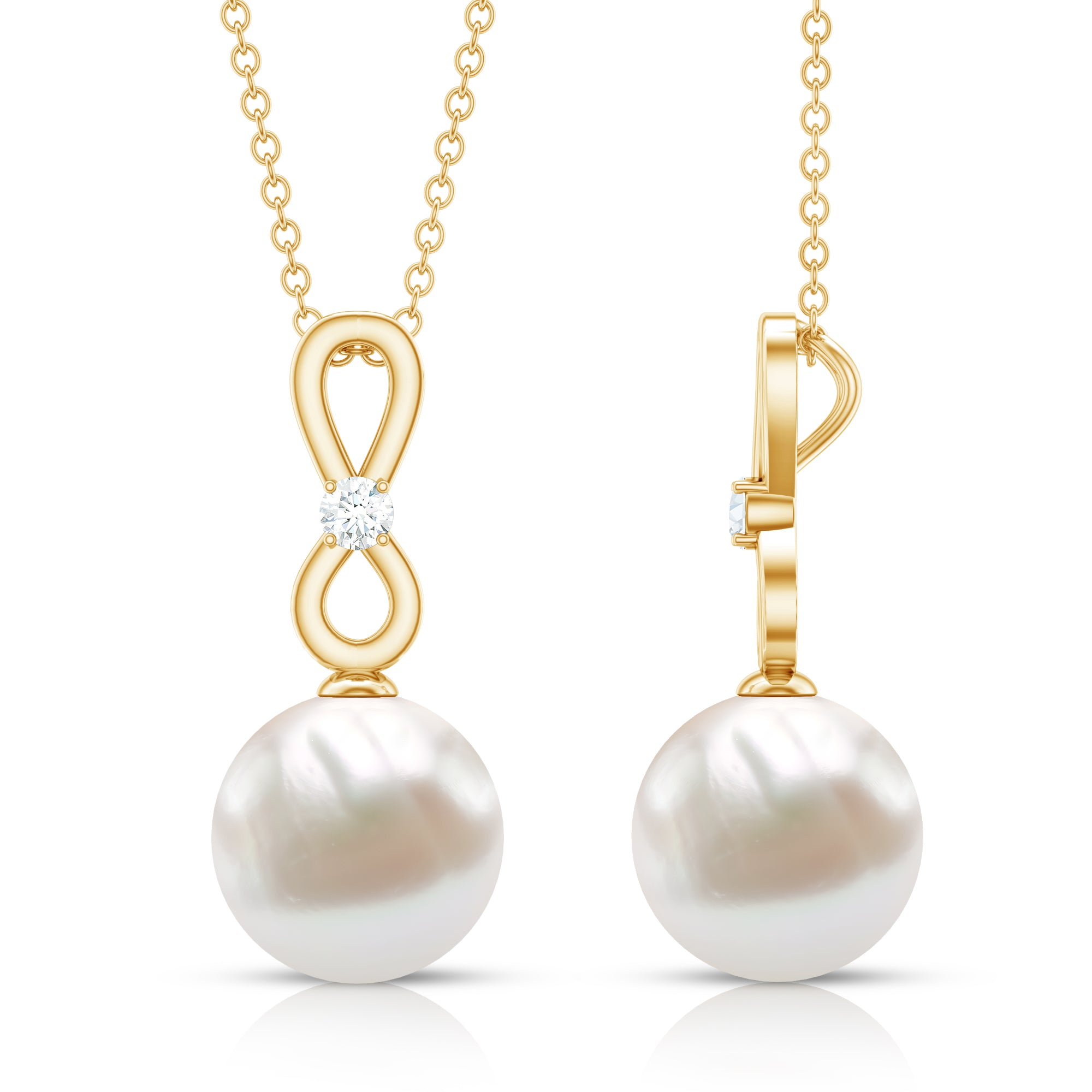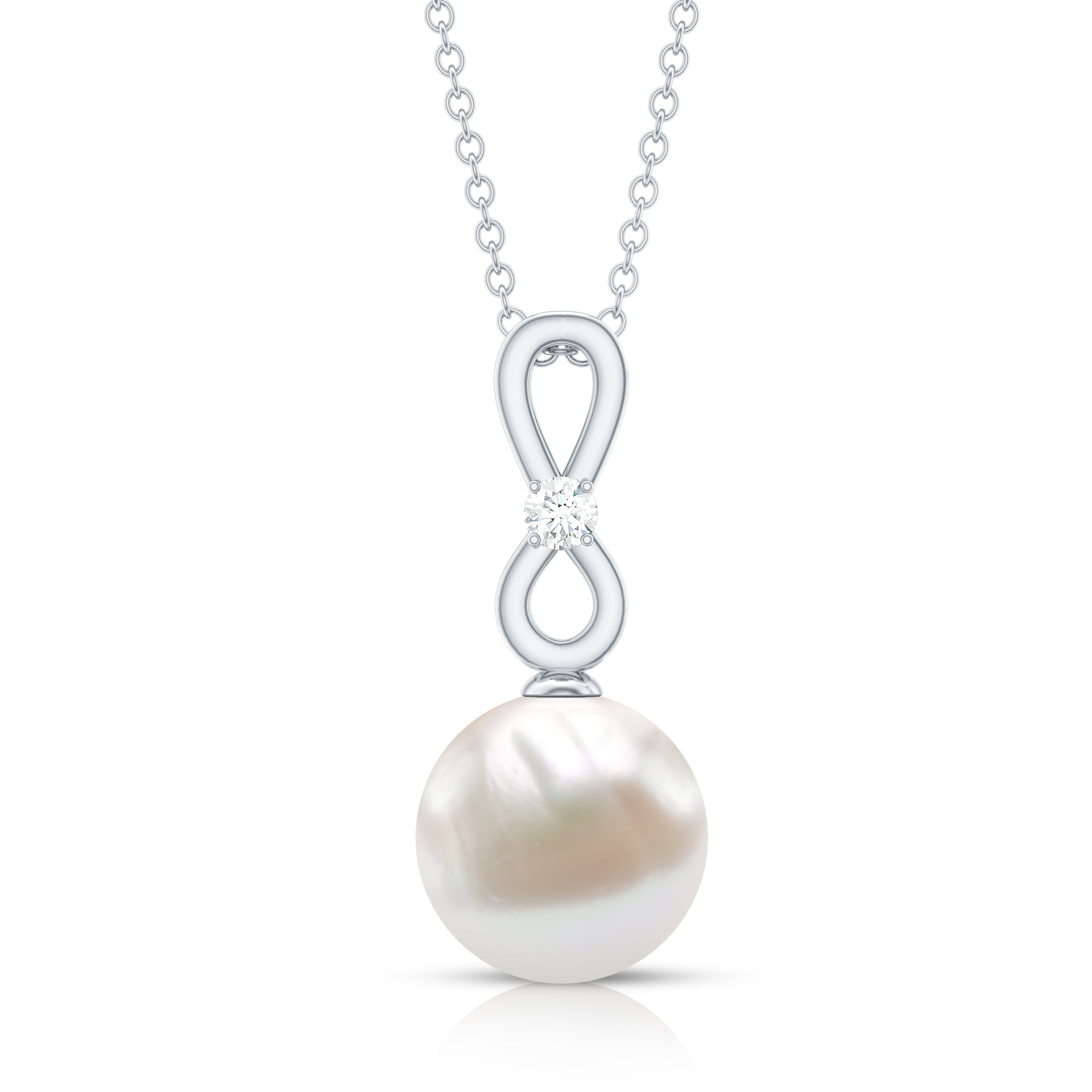 10 MM Round Freshwater Pearl Drop Infinity Pendant with Diamond