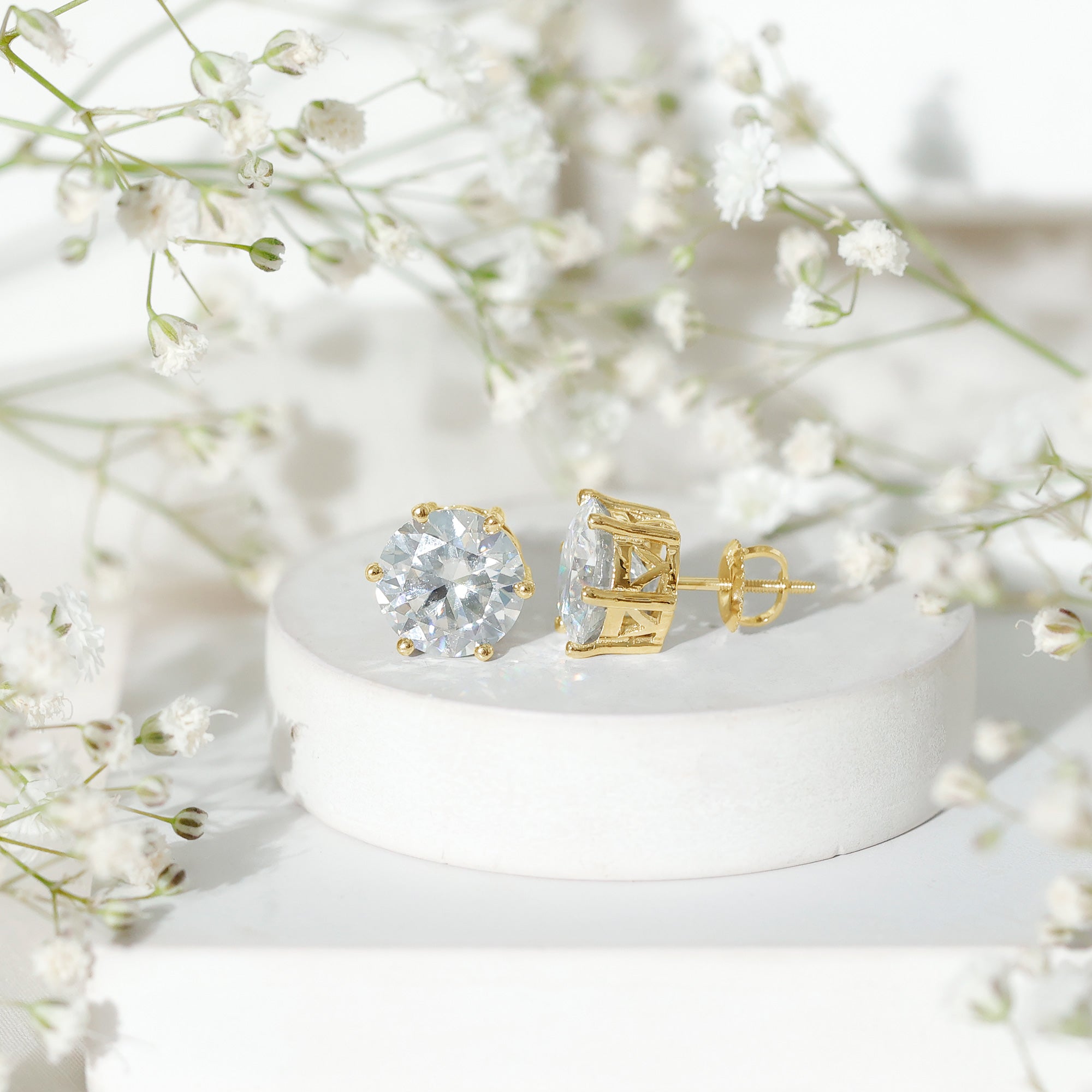 10 MM Round Moissanite Solitaire Stud Earrings in Claw Setting