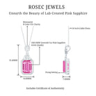 10X14 MM Lab Grown Pink Sapphire Art Deco Necklace With Silver Chain