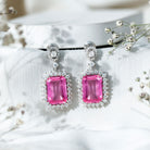10X14 MM Lab Grown Pink Sapphire Statement Earrings