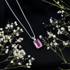 This stunning Emerald Cut Pendant Necklace, made from 14K white gold plated silver, is exactly what you need to elevate your neckline for that special occasion. It features a breathtaking 10X14 MM emerald cut lab created pink sapphire stone along with delicate Moissanite securely set in prongs, enhancing its beauty. Drawing inspiration from old world elegance, this pendant is truly a showstopper. The rabbit ear bail connects the Sapphire Solitaire Necklace to a fine cable chain. This Wedding Necklace for Bride is the perfect finishing touch for your big day. Every detail of the necklace reflects exceptional craftsmanship, making it a fantastic gift for milestones, celebrations, or simply a treat for yourself. Embrace the elegance and charm of a solitaire with this piece, an ideal choice for brides-to-be who value jewelry that beautifully blends classic and contemporary styles.