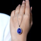 13X18 MM Lab Grown Blue Sapphire Bridal Necklace With Silver Chain