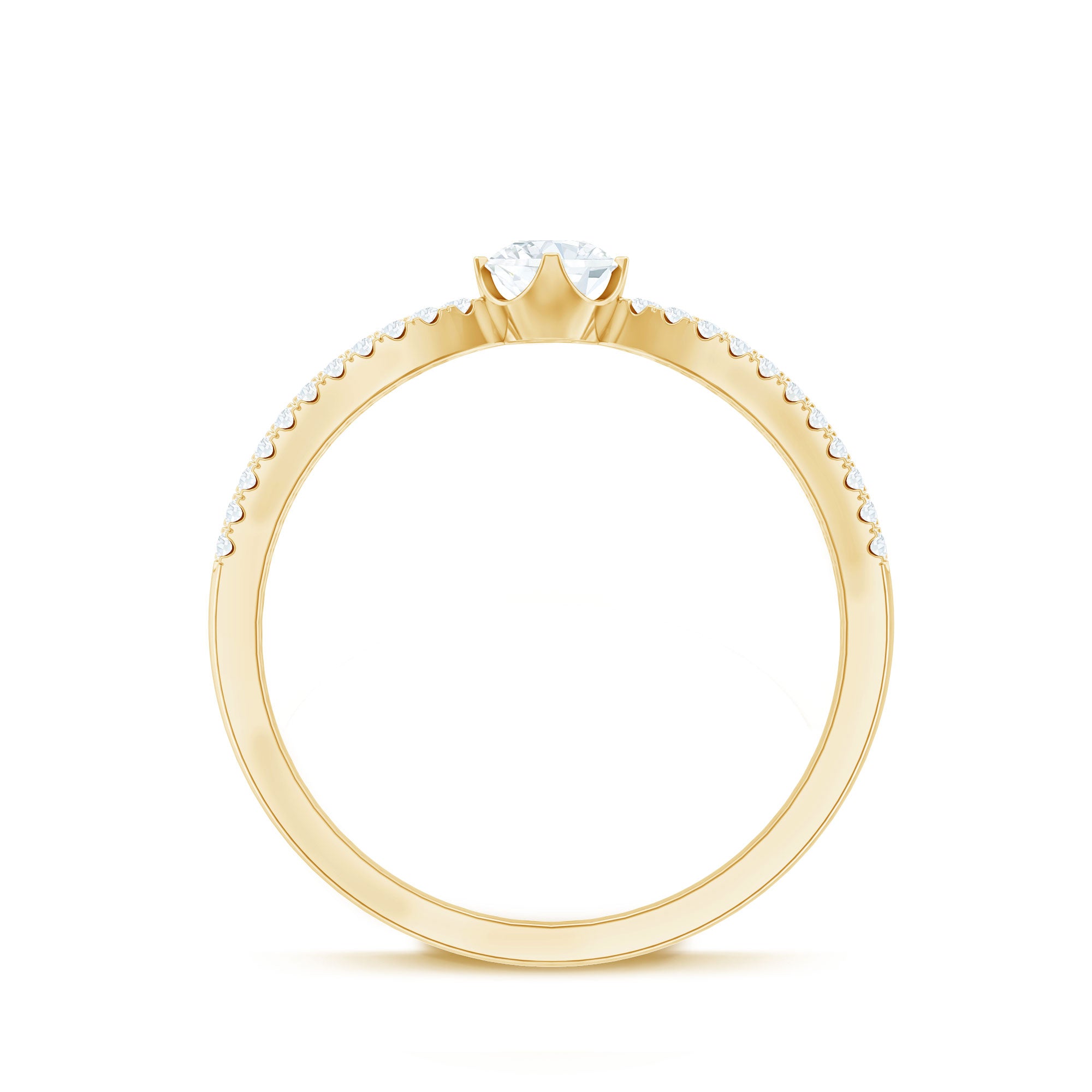 Rewarded as the most popular and classic ring style for conventional couples, a Solitaire Ring boasts the Centerpiece of a Diamond that stands all alone. Moreover, in this Single Diamond Engagement Ring, all the emphasis is put on the sparkle of the Center Diamond (owing to its enormous size of 6 MM or more). While it might appeal owing to its timeless aesthetic, this ring style will take you by surprise with the kind of versatility that it offers. For instance, while a Round Diamond Engagement Ring resonates with understated and classic senses of style, one mounted with fancier cuts like Pear, Princess, Marquise, etc., speaks to the trend-savvy bride-to-be(s). On the other hand, if you’re the kind of couple who likes to go grand when it comes to love expression, nothing better than an Asscher, Cushion, or Emerald Cut Diamond Ring.