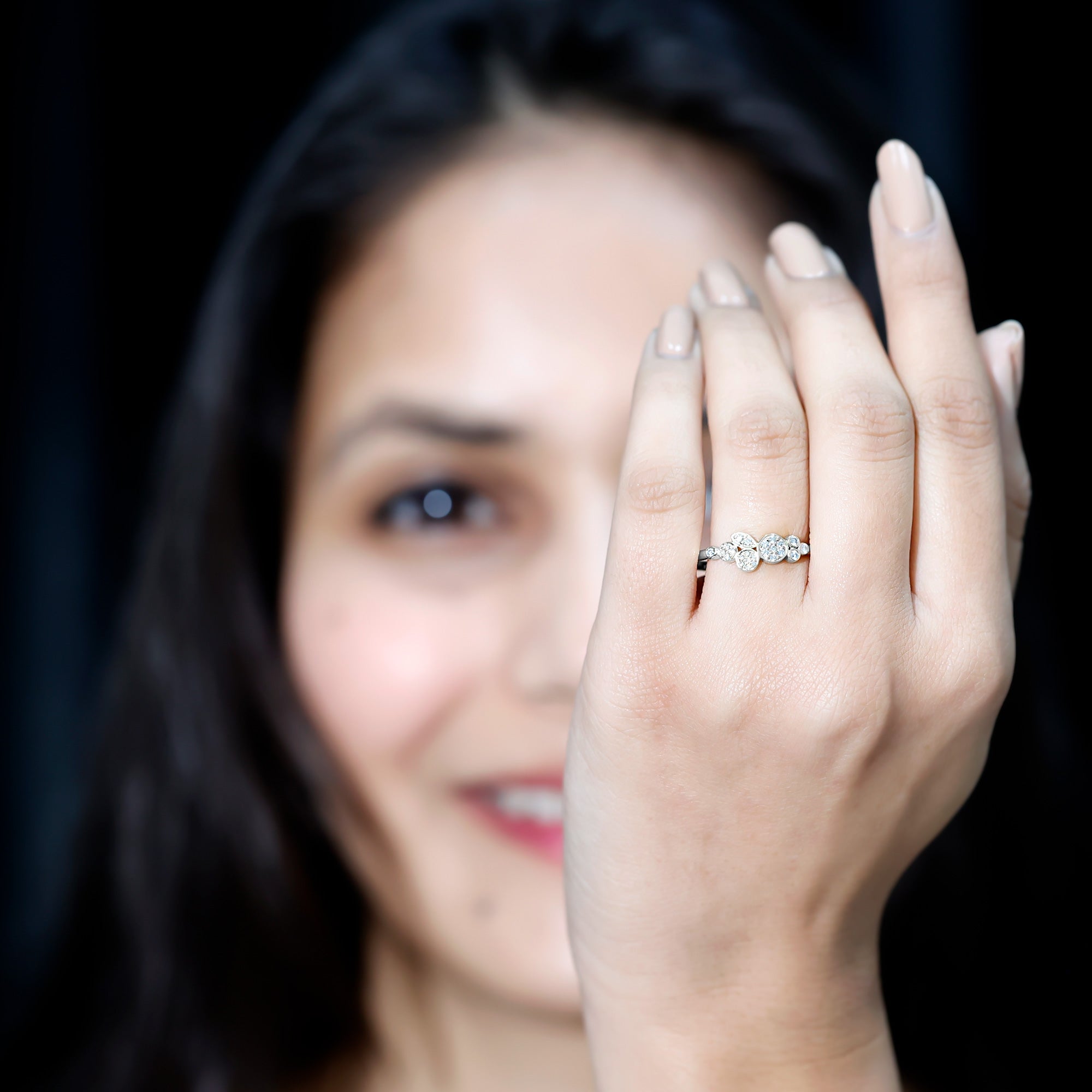 Flashy, flamboyant, and fashion-forward, this ring style incorporates three (identical-looking) stones of Diamond nestled together in a row. If you wish to go beyond the ordinary for a more contemporary and needless to mention, sparkly ring style (since more Diamonds mean more sparkles), a 3 Diamond Engagement Ring is your way forward. Interestingly, if you fancy a vibrant and color-contrasting appeal, you could even go for a Sapphire or Ruby and Diamond Engagement Ring mounted in a three-stone setup. Besides that, what makes this ring style stand out is that it speaks to every couple uniquely. That’s because each of the three stones of the Diamond here represents the couple’s past, present, and future respectively.