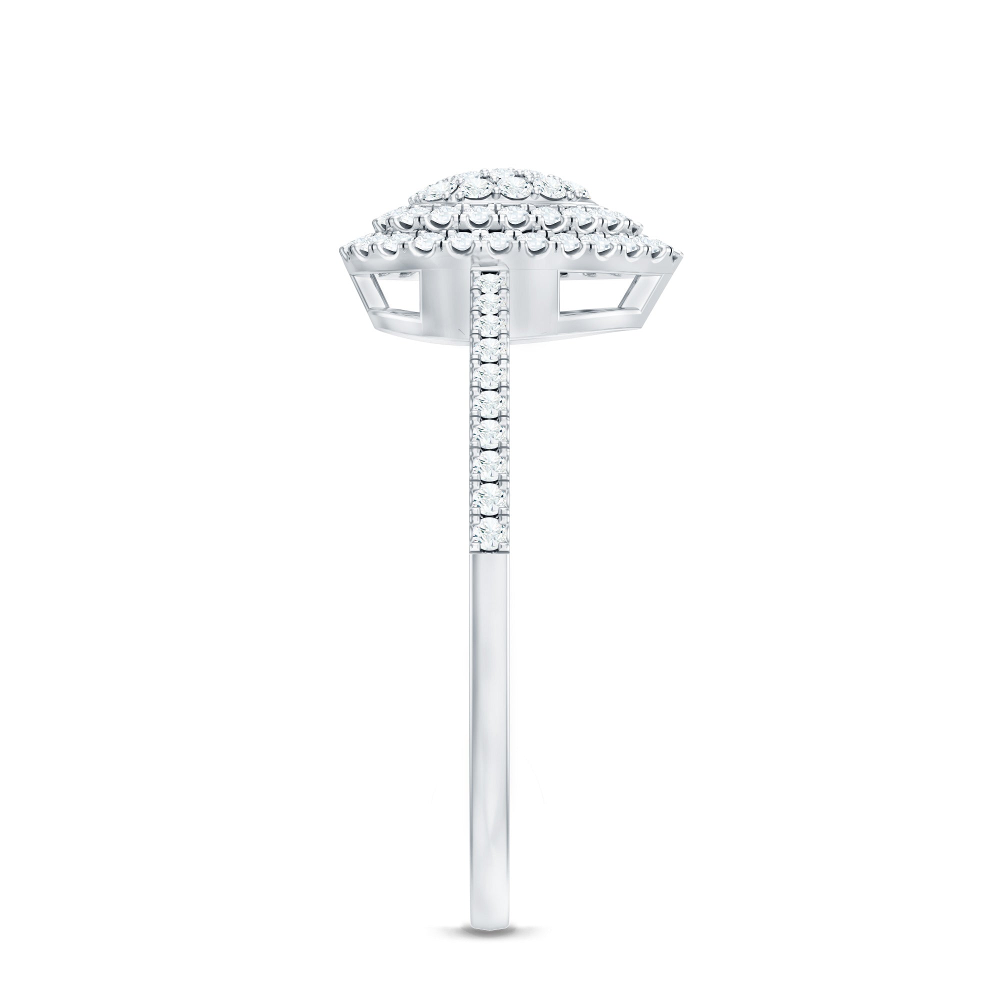 Reminiscent of the shape of a boat, smile, and football, a Marquise Cut is characterized by a curved body and pointed ends. Thanks to its long and tapered shape, a Marquise Diamond Engagement Ring makes for a flattering choice for those looking for larger-sized rings. Moreover, it boasts a total number of 58 facets that are strategically placed to maximize the sparkle.