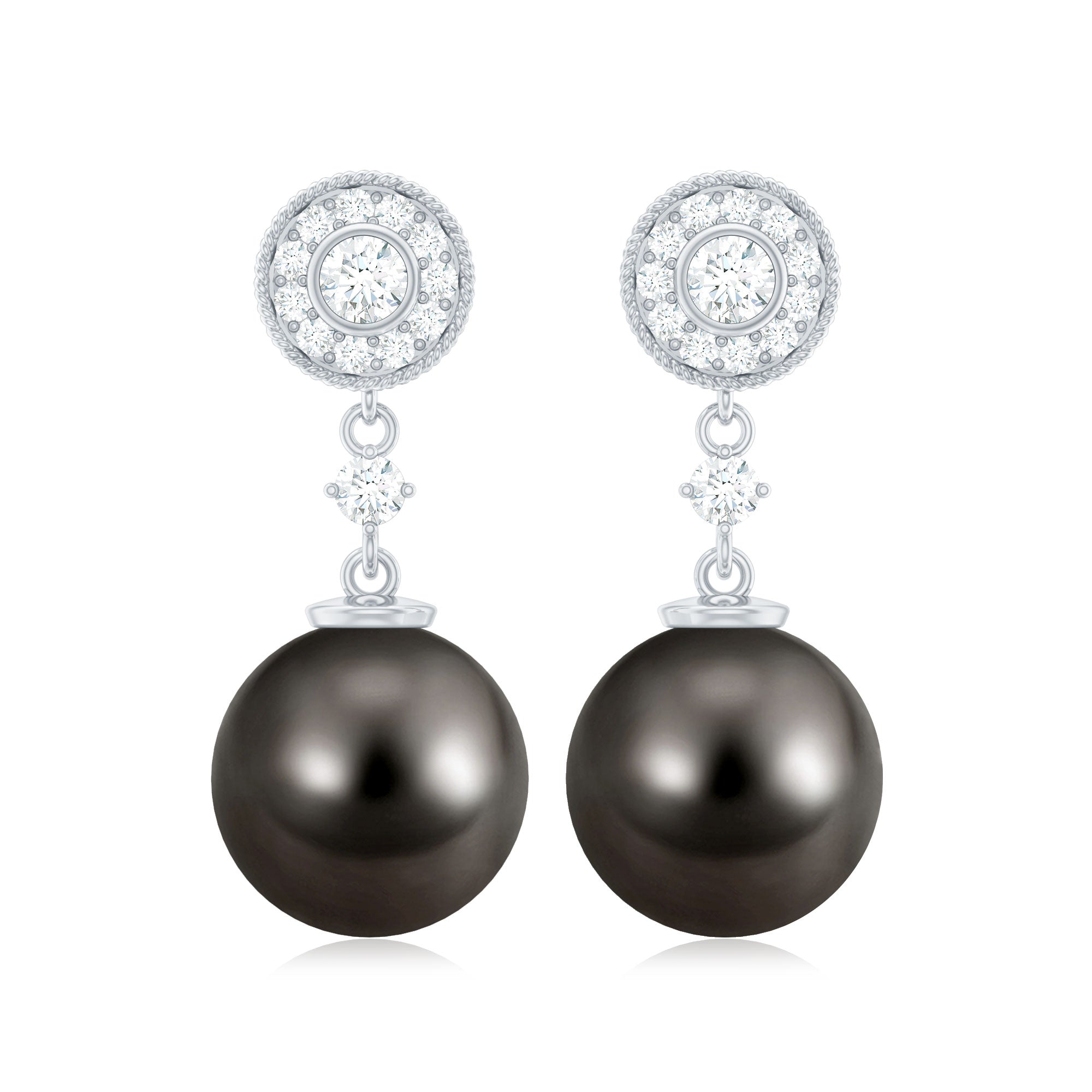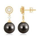 15.5 CT Tahitian Pearl Dangle Earrings with Diamond Stones