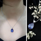 18X13 MM Pear Lab Grown Blue Sapphire Statement Necklace With Silver Chain