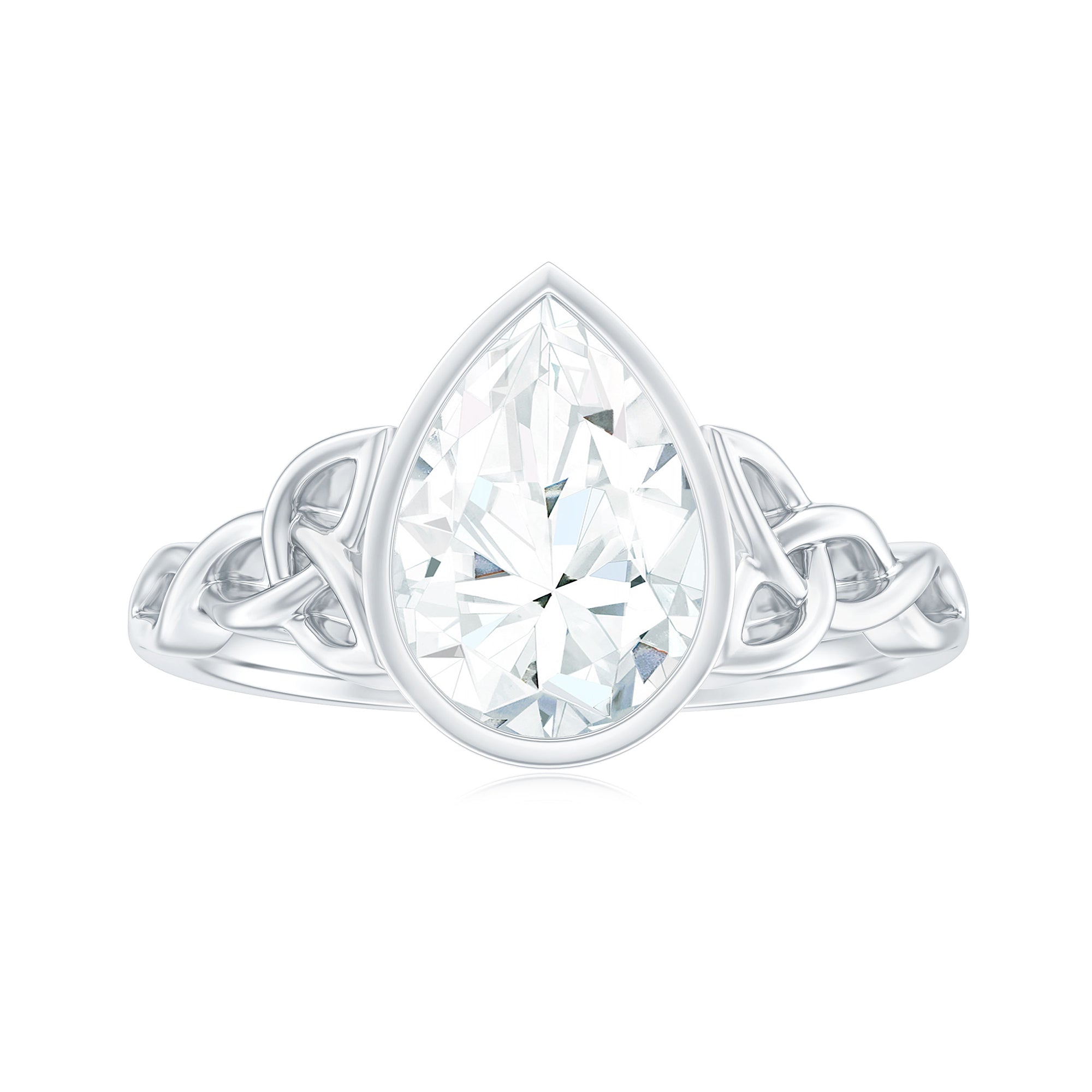 Treat yourself to the breathtaking charm of this Celtic Knot Engagement Ring, showcasing a stunning 7X10 MM Pear Cut Moissanite as a brilliant solitaire in a secure bezel setting. This Solitaire Engagement Ring is made from top-notch metal, giving it a classic and luxurious vibe that is bound to win your heart. With its detailed and lovely Celtic design along the band, this 2.25 Carat Moissanite Ring is a classy and one-of-a-kind way to show your love and commitment to your partner. The outstanding quality and meticulous attention to detail in the making of this Pear Moissanite Engagement Ring guarantee that it will be a beloved and cherished piece for many years ahead. So, wear this Celtic Knot Ring and make a lasting statement of your love. With D color and VS1 clarity moissanites, this gem offers incredible brilliance at a fraction of the price of traditional diamonds. The shiny finish and meaningful design give it a timeless essence youll adore. Available in various sizes and metal choices, this Teardrop Engagement Ring comes beautifully packaged and ready to be gifted.