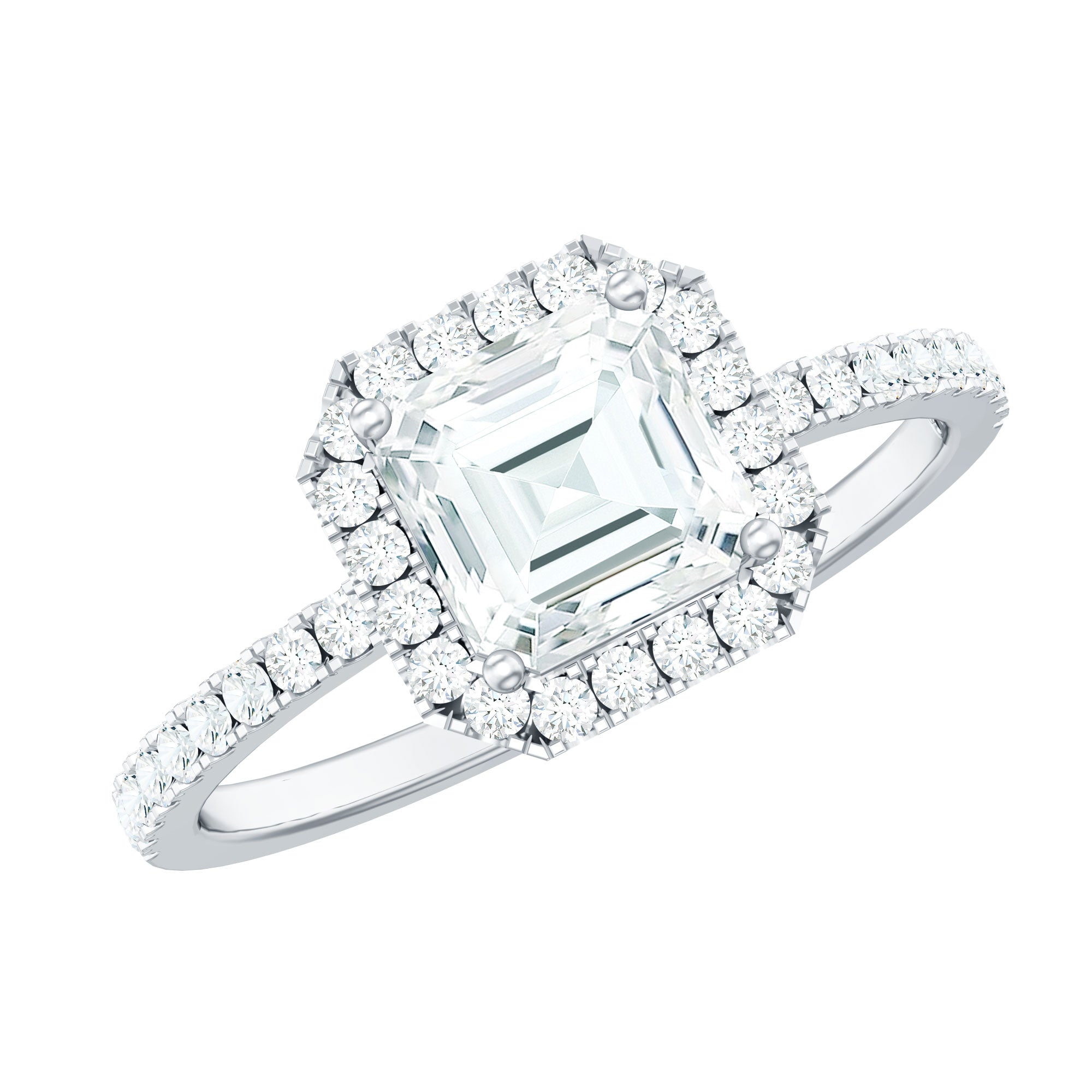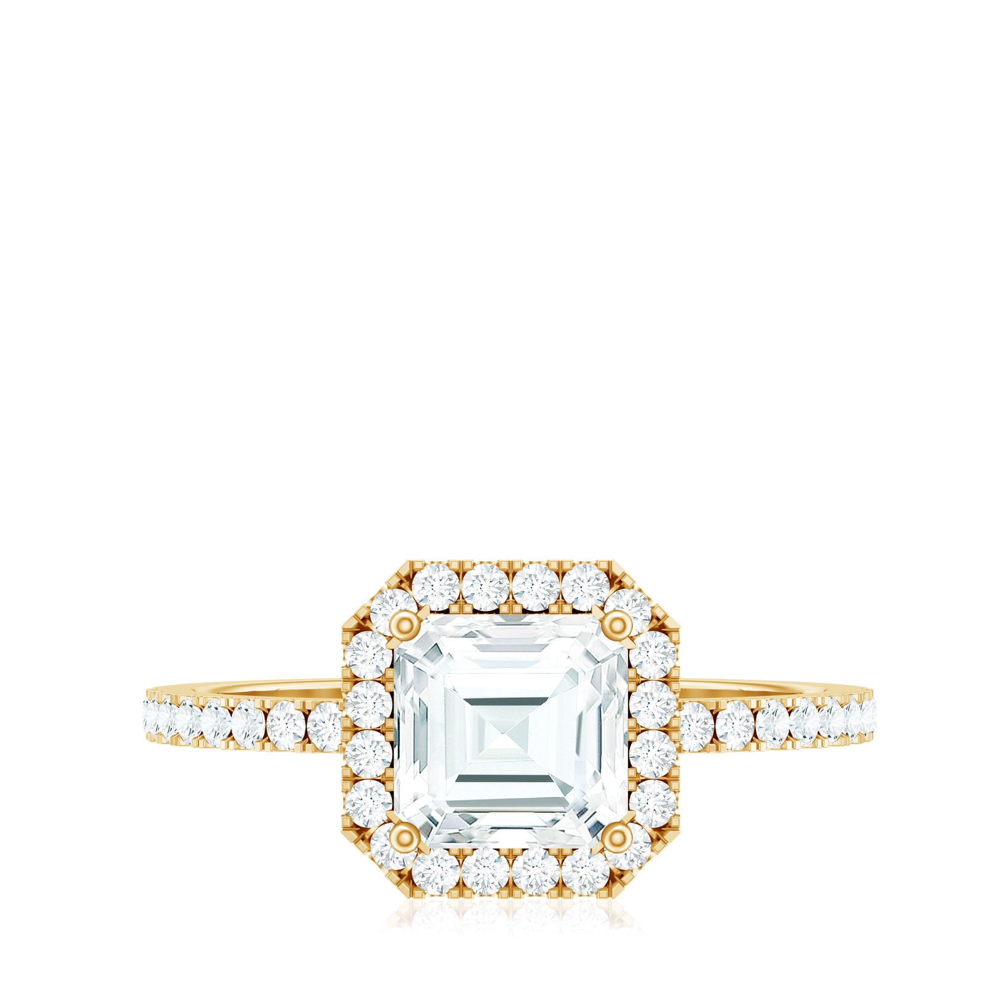 2.25 CT Asscher Cut Zircon Halo Engagement Ring in Gold