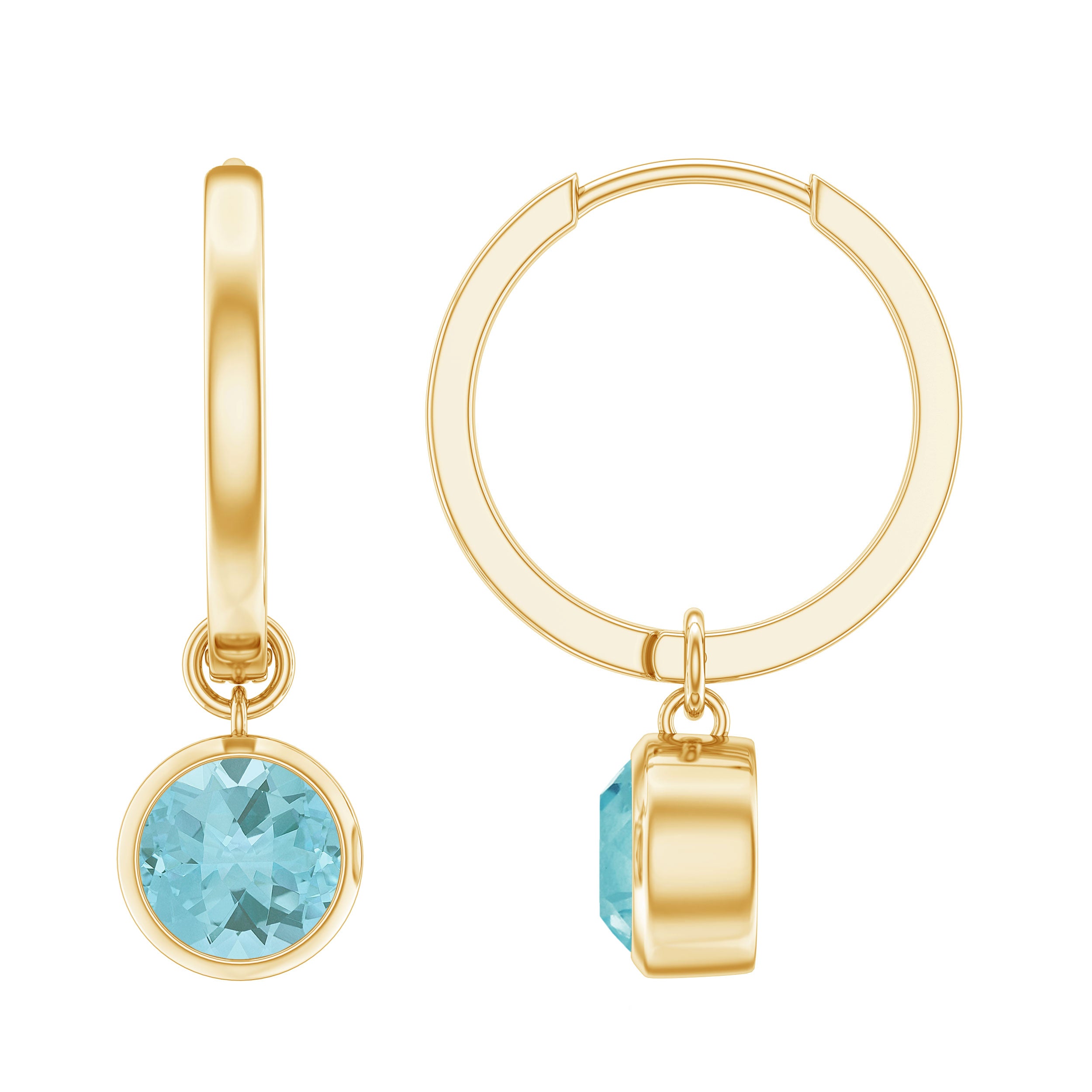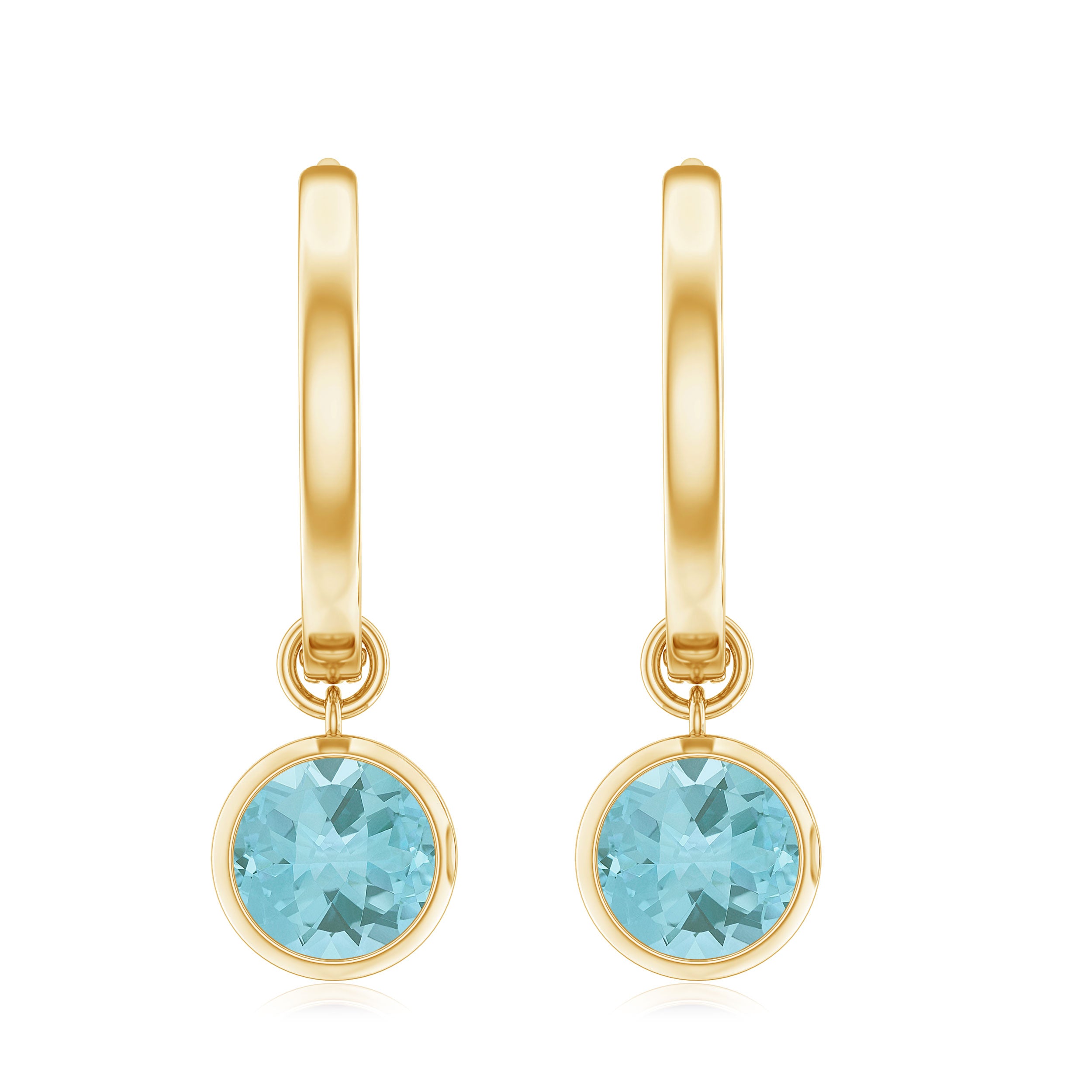 2.25 CT Bezel Set Sky Blue Topaz Hoop Drop Earrings in Gold