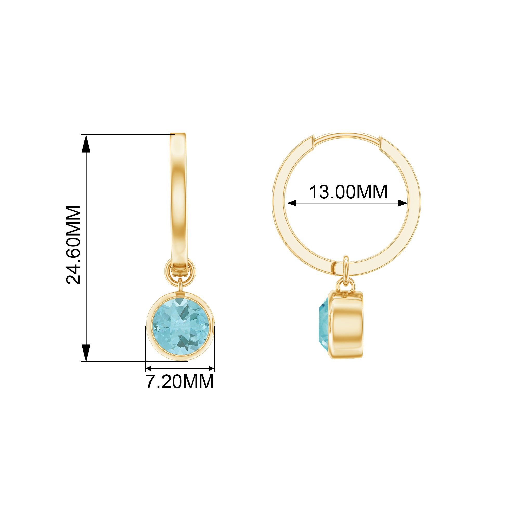 These beautiful bezel set sky blue topaz hoop drop earrings are crafted from gold, making them a luxurious accessory for any outfit. The sky blue topaz gemstones are held securely in place with a bezel setting, adding to the durability and longevity of the earrings. The hoop design is stylish and versatile, perfect for daily wear. These earrings are a great choice for someone looking for a special piece of jewelry to add to their collection or to give as a gift to someone special. The combination of the rich gold and the shimmering sky blue topaz makes these earrings an eye-catching piece that will make you feel confident and stylish every time you wear them.