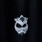 This Black Onyx and Moissanite Statement Wedding Ring Set is a bold and striking choice for any bride who wants to make a statement with her wedding ring. The set includes an engagement ring and a matching wedding band, both crafted from high-quality gold. The centerpiece of the engagement ring is a beautiful black onyx stone, cut into a unique shape that sets it apart from traditional moissanite engagement rings. Surrounding the onyx stone are shimmering moissanite stones, which add an extra touch of sparkle and luxury. The band of the engagement ring also features additional moissanite stones, creating a dazzling display of brilliance. The matching wedding band features a row of moissanite stones that perfectly complement the engagement rings design. Together, these two rings make a bold and beautiful statement that is sure to be noticed and admired. This set is a perfect choice for any bride who wants a wedding ring that is as unique and special as she is.