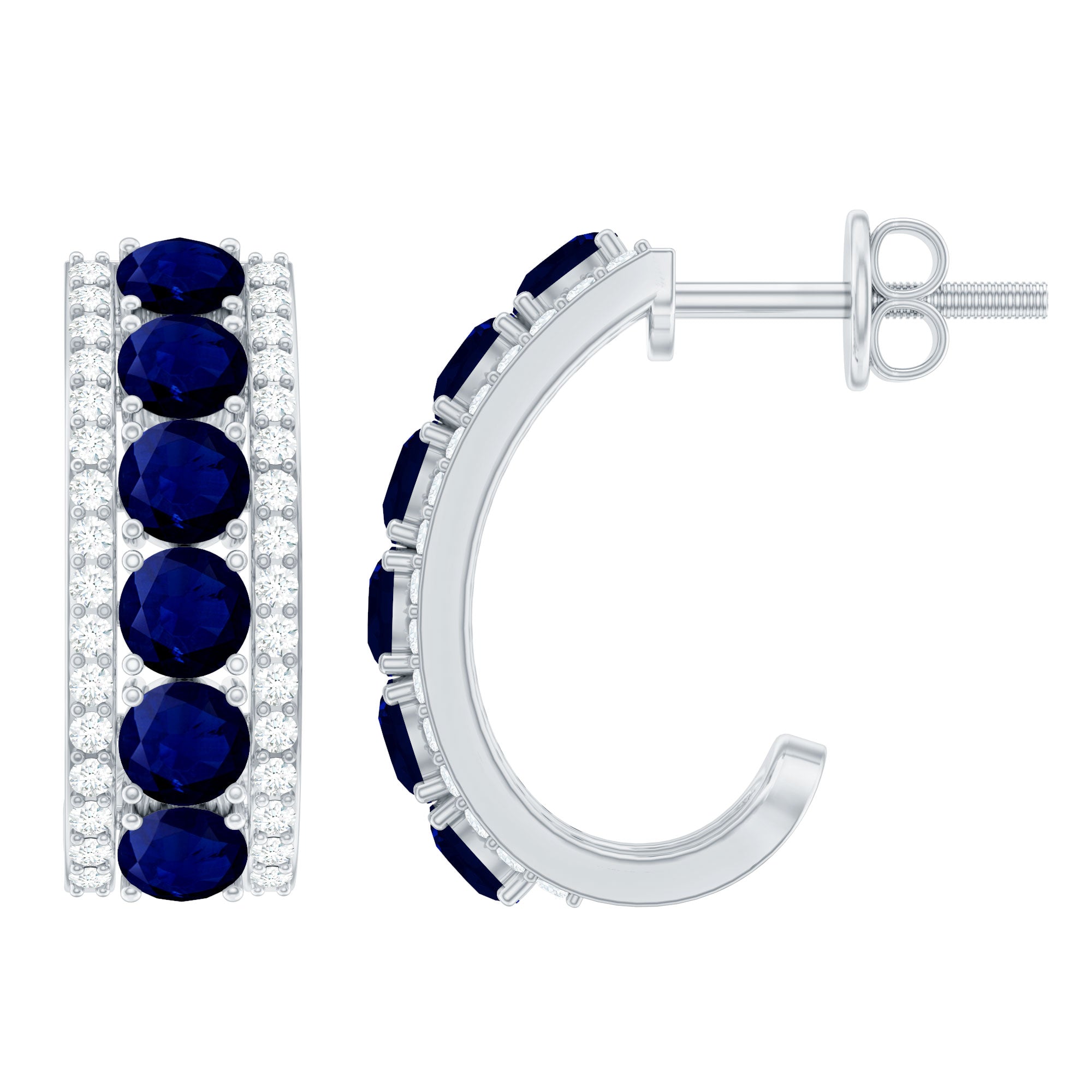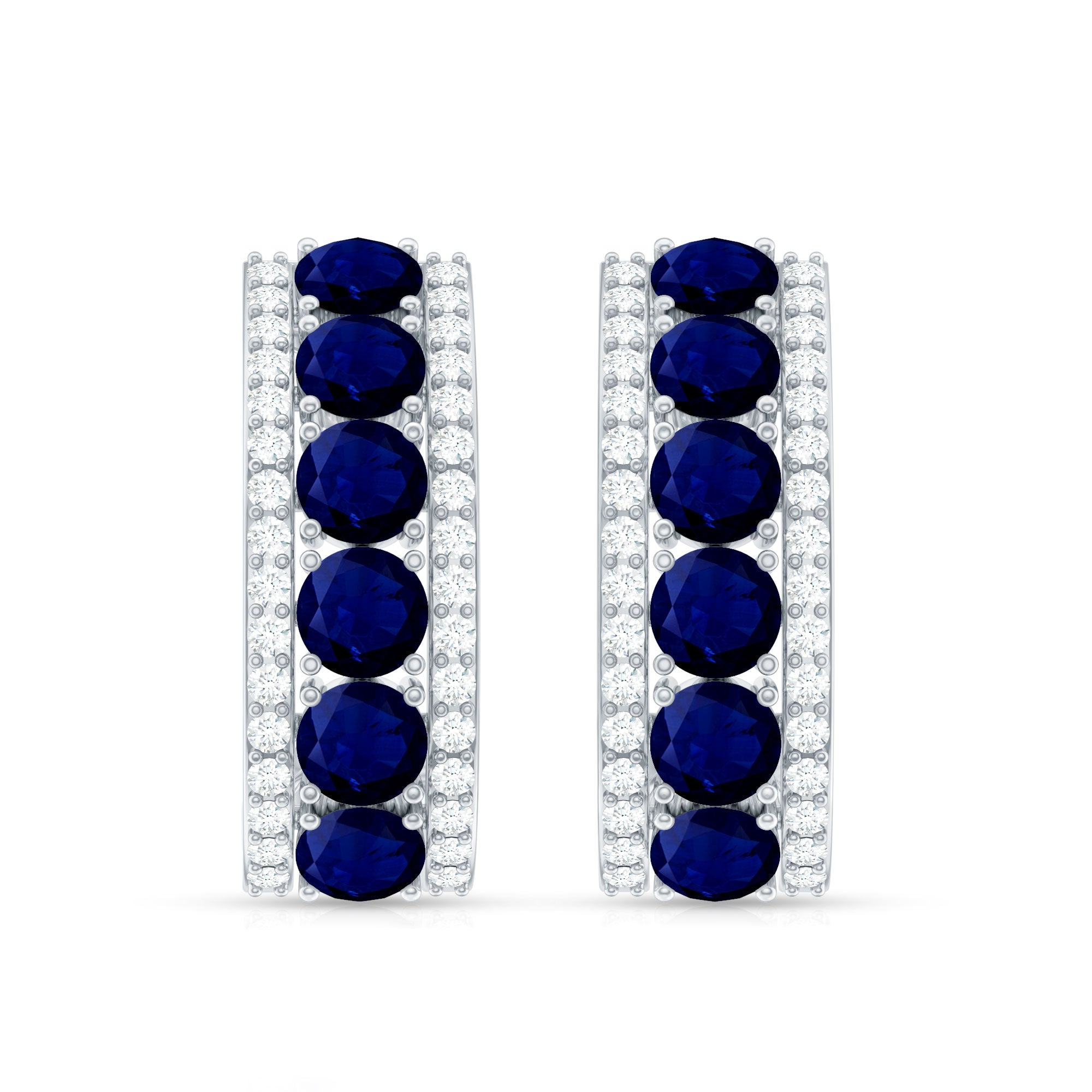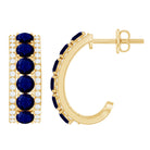 2.25 CT Blue Sapphire and Diamond Half Hoop Earrings