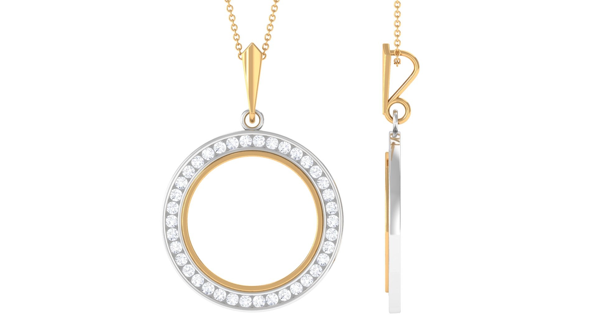 Make a statement with this stunning Two Tone Eternity Pendant. Crafted in gold metal, this pendant features a series of round cut Moissanite gemstones in a channel setting that creates an endless sparkle effect. This Moissanite Pendant is perfect for a special occasion or as a gift for your loved one. Experience the brilliance and beauty of moissanite with this timeless pendant.