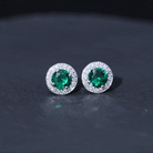 Created Emerald and Diamond Halo Earrings