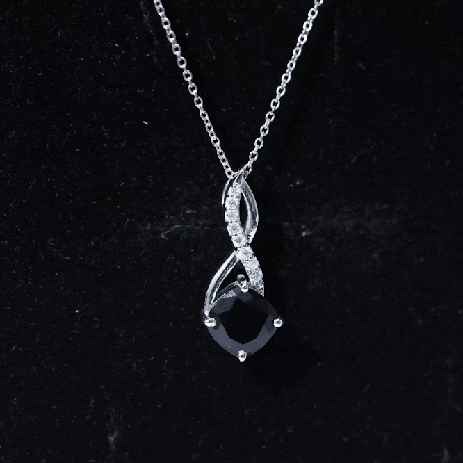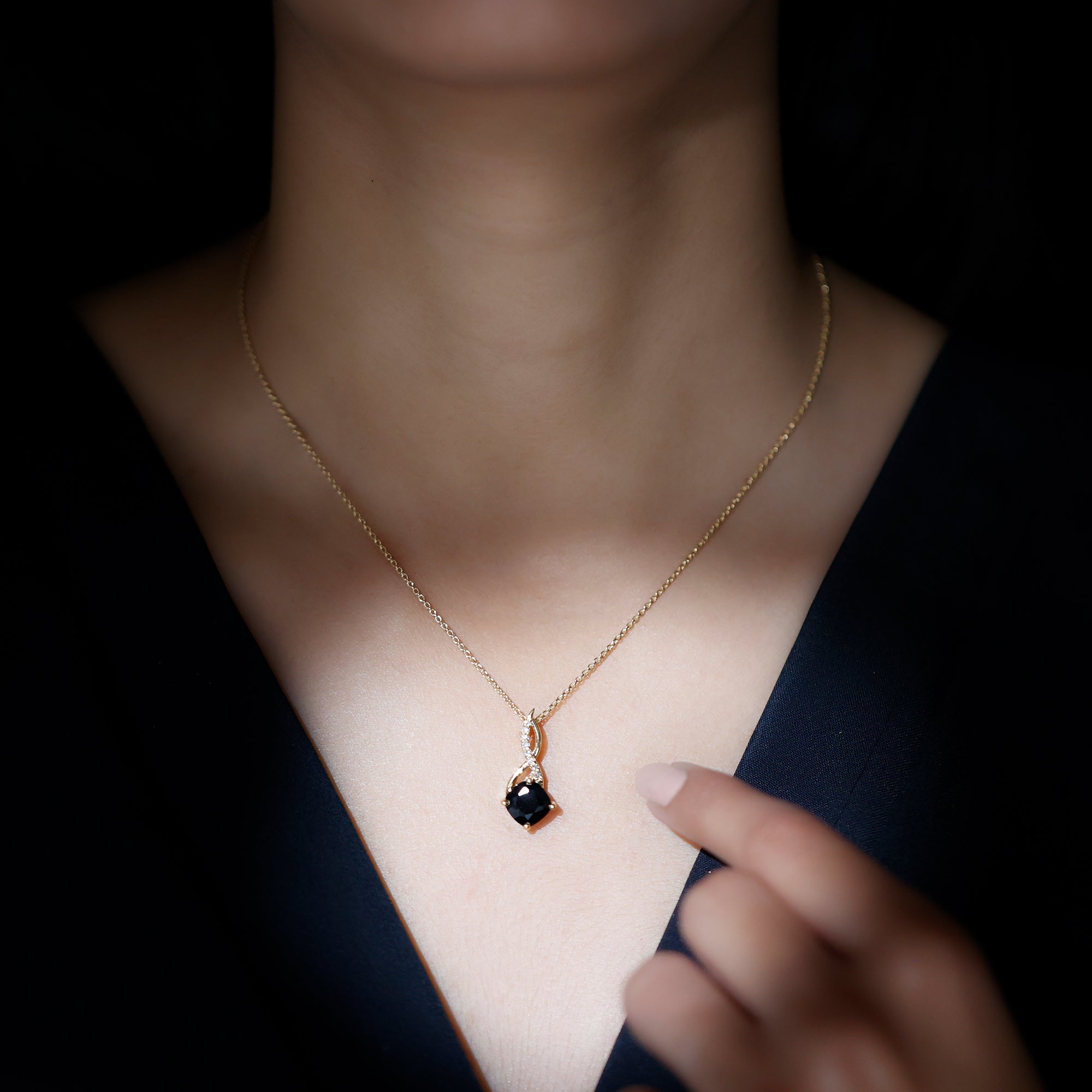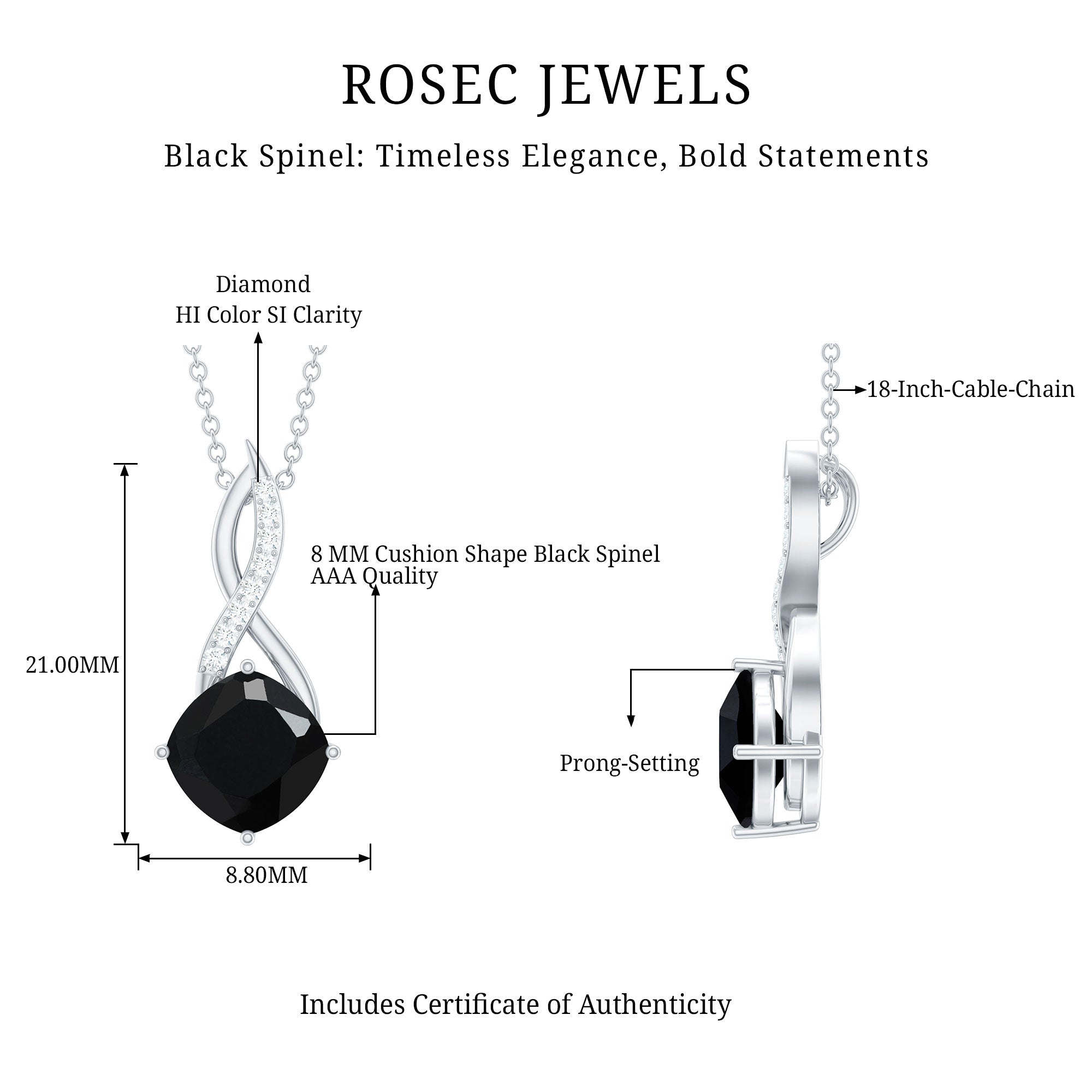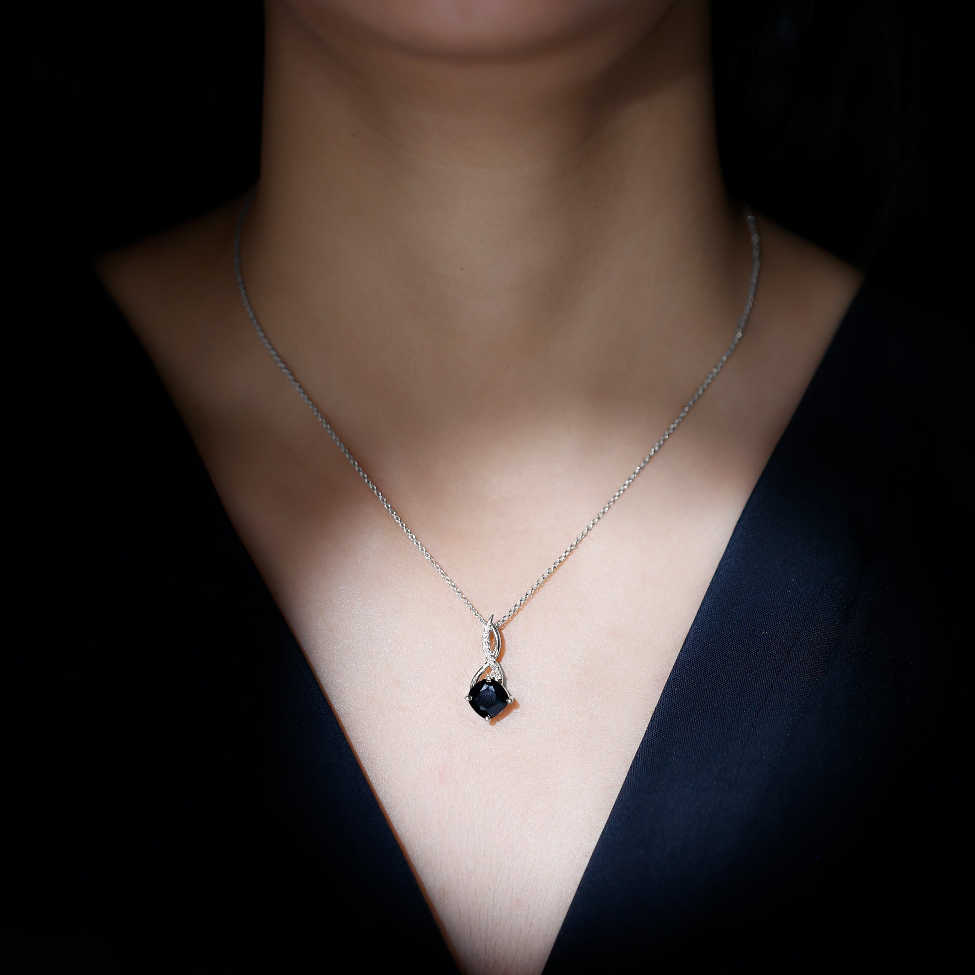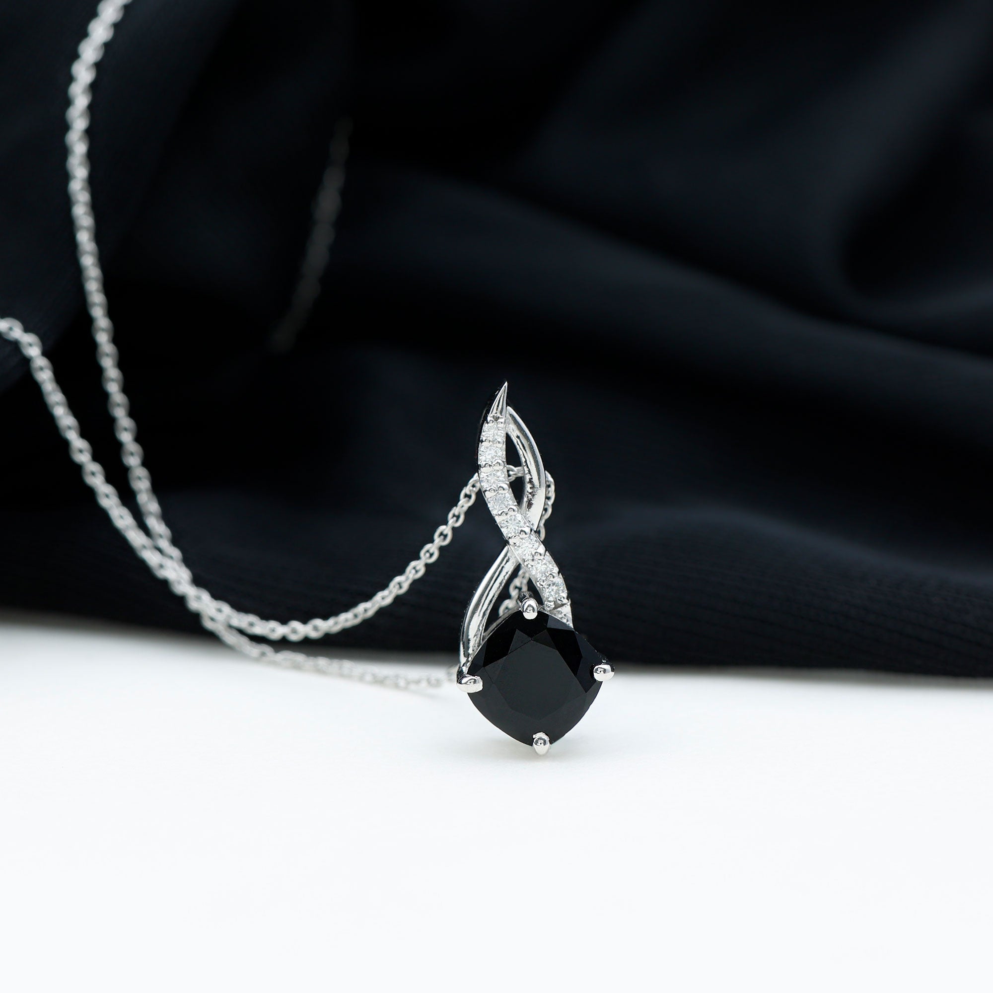 2.25 CT Cushion Cut Black Spinel and Diamond Infinity Pendant Necklace