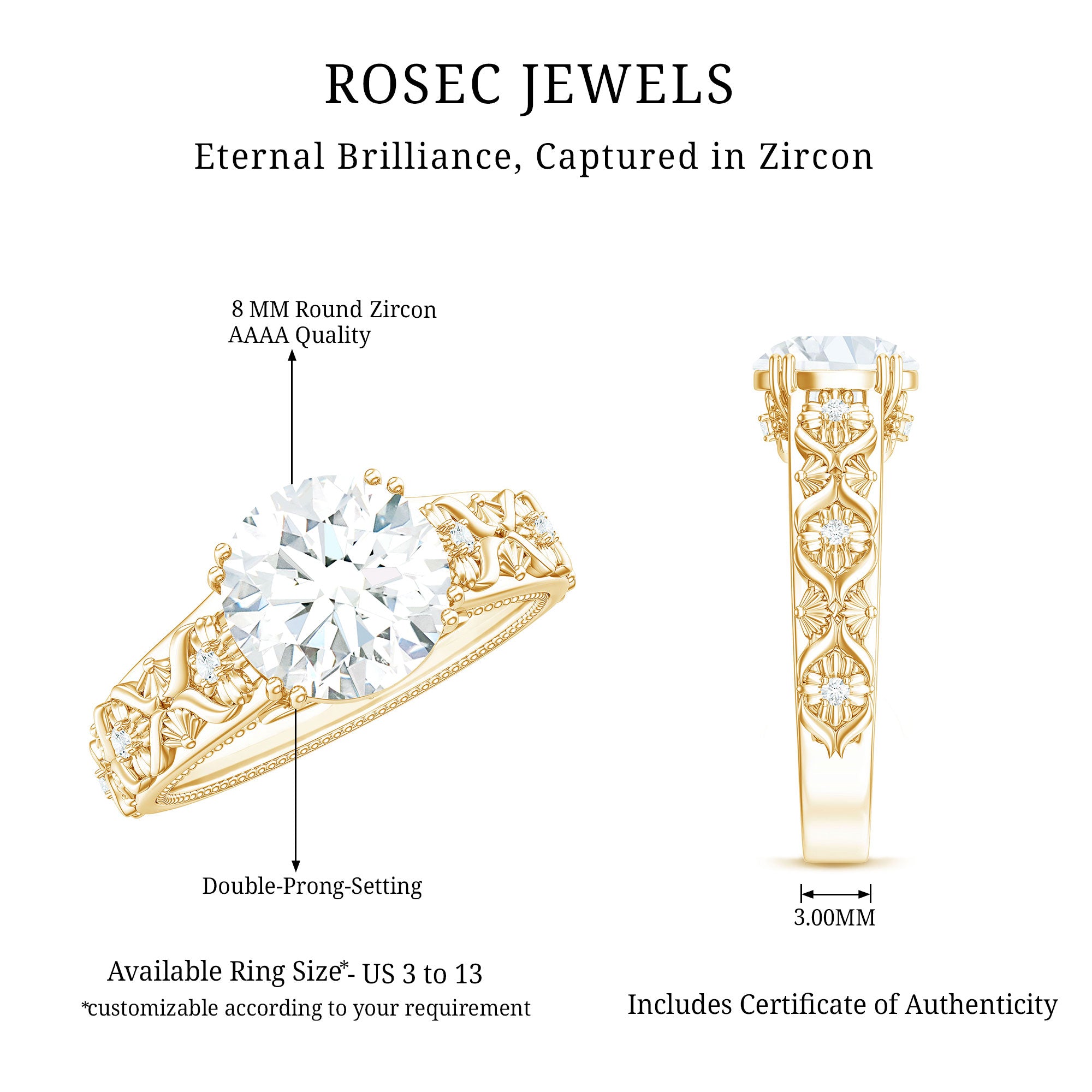 With a symbol of faithfulness and everlasting love this Cubic Zirconia Engagement Ring is a special present for your lovely lady. This Elegant Solitaire Engagement Ring is embellished with Round Cut Zircon in Prong Setting. Composed of Gold, this CZ Flower Ring is a stunning jewelry, which she will cherish her whole life.