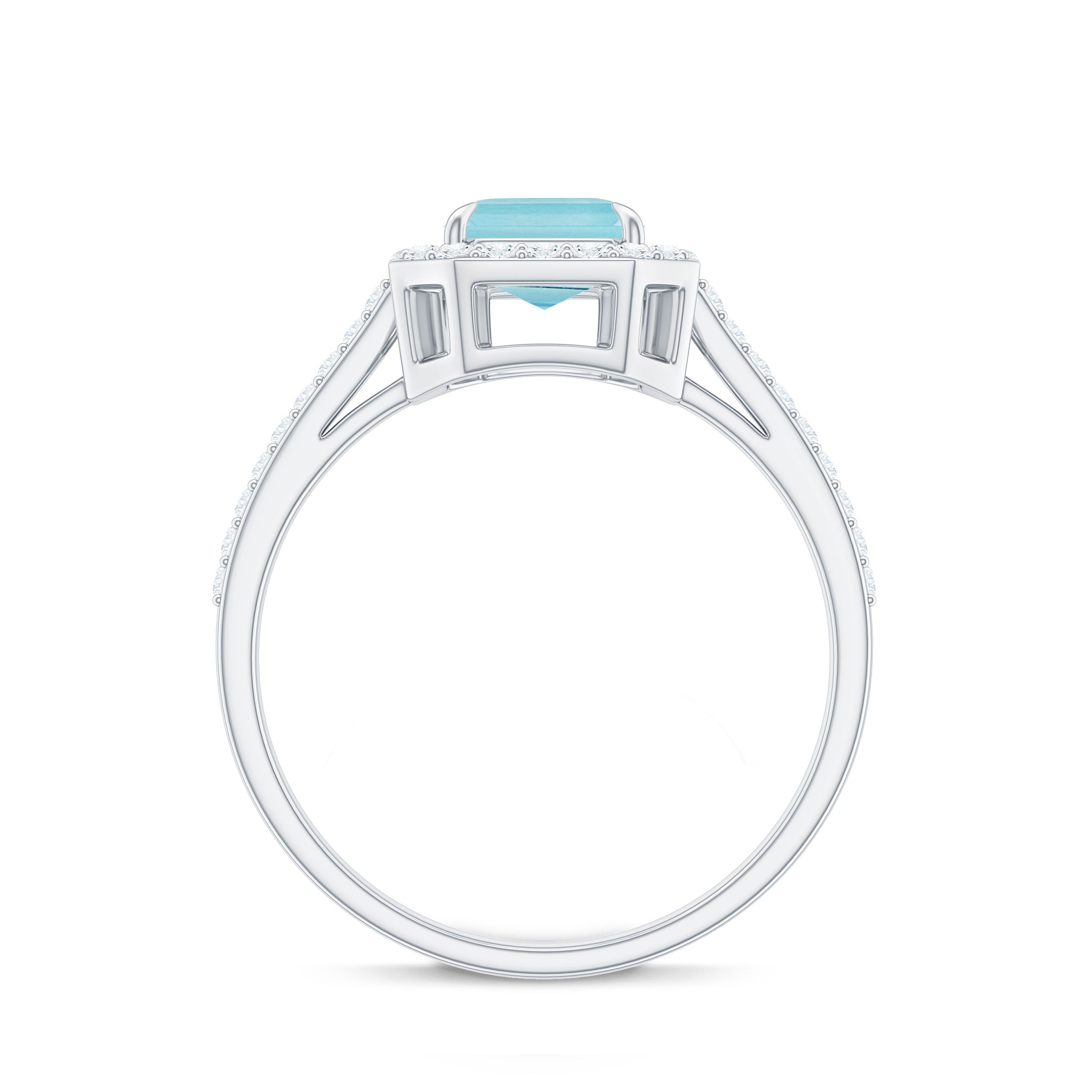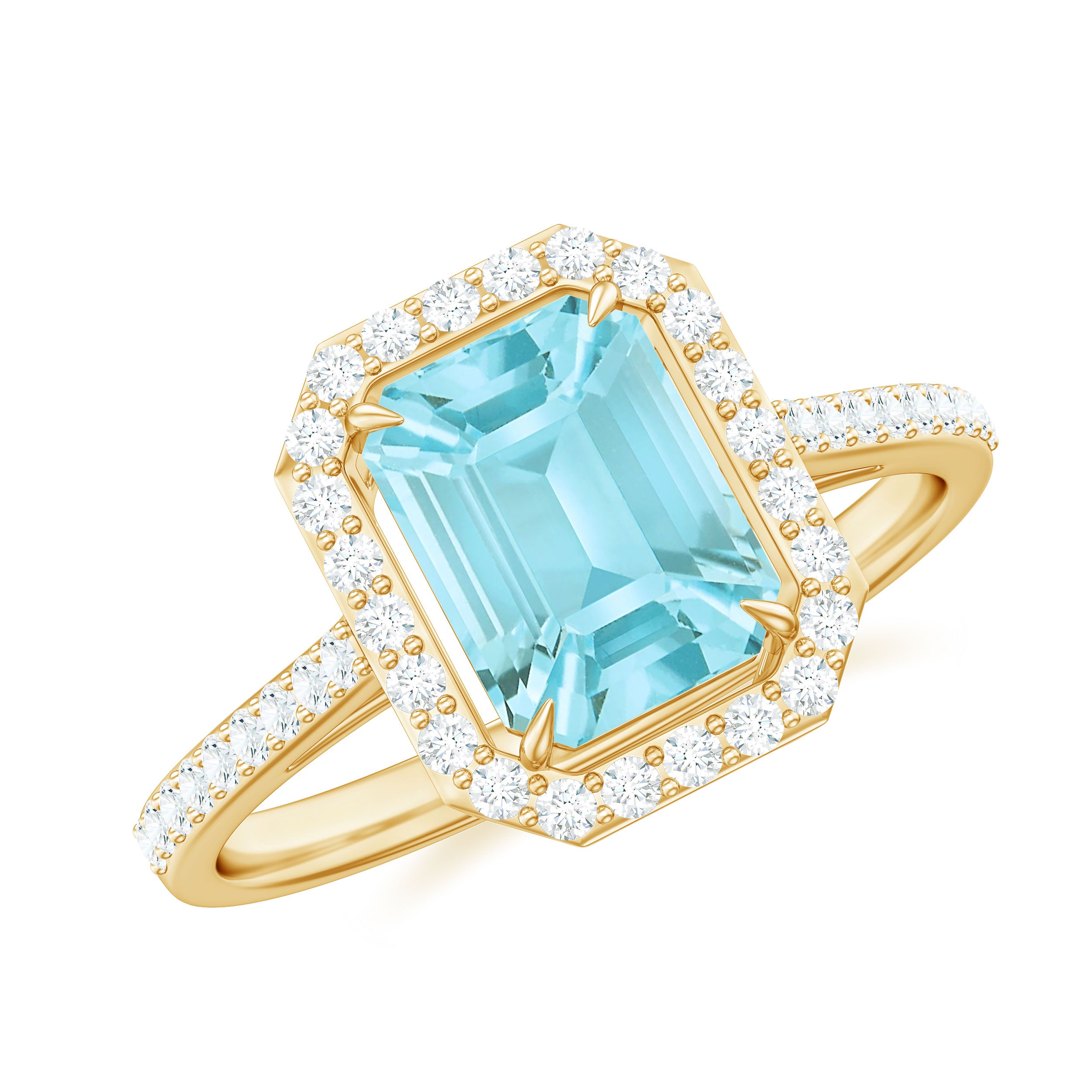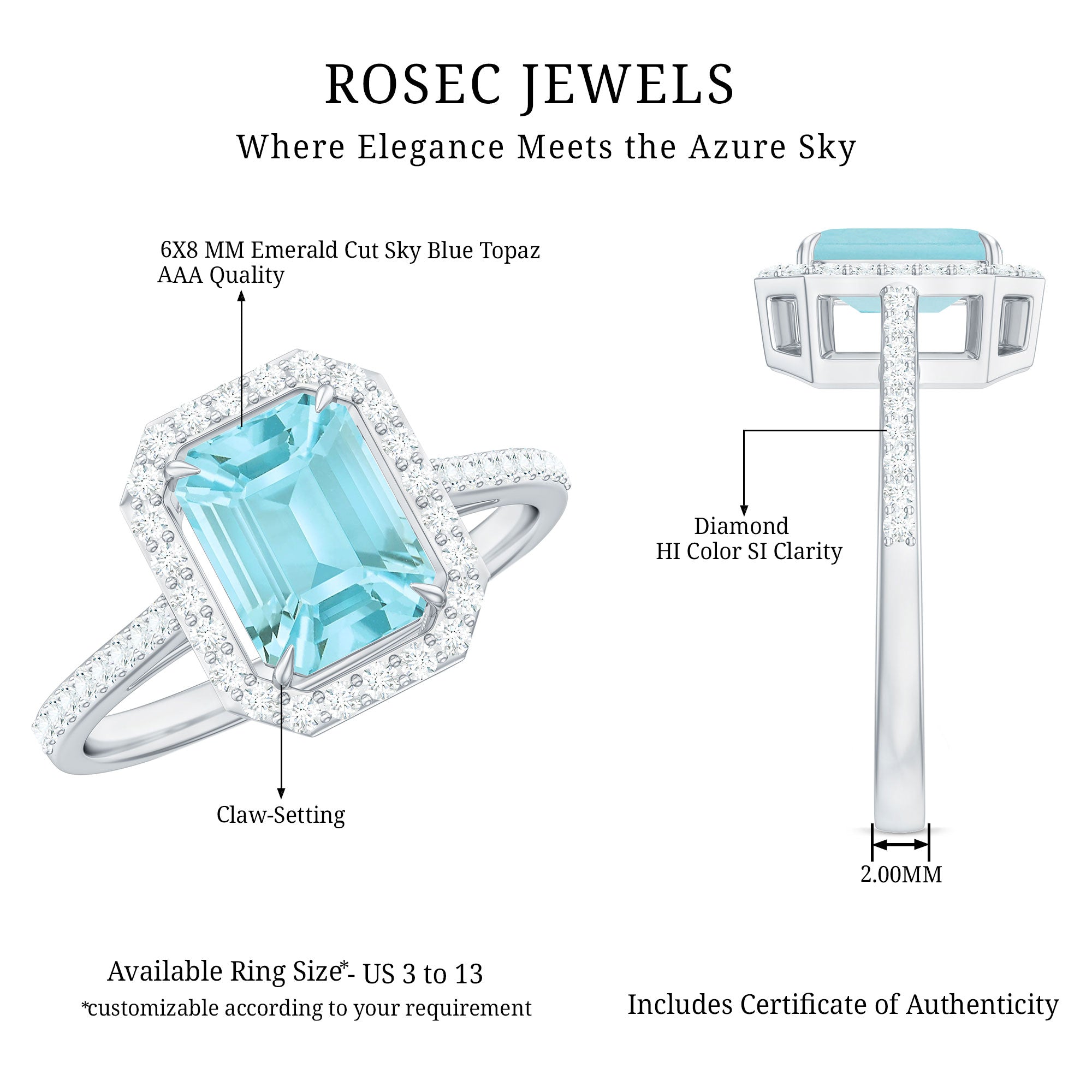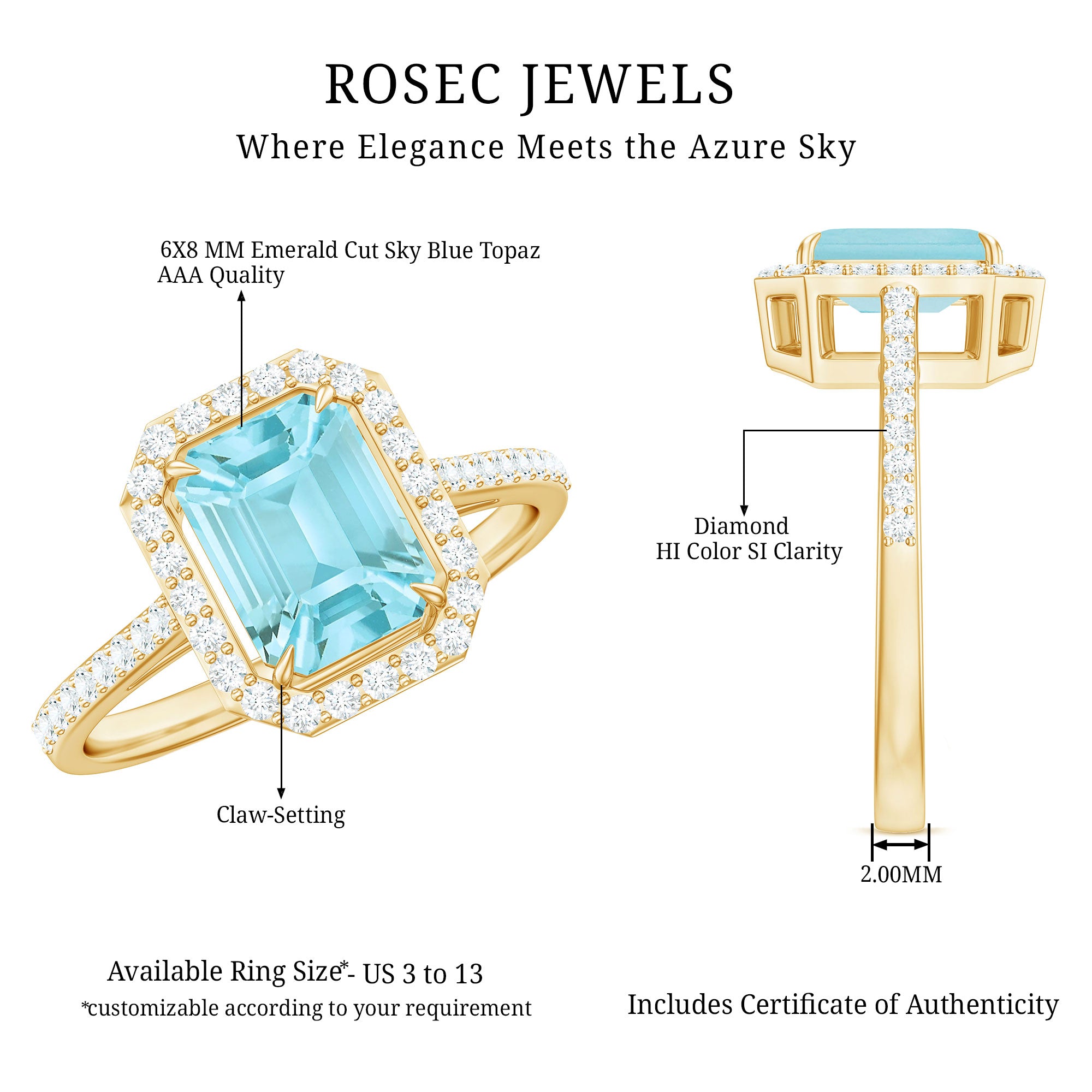 2.25 CT Emerald Cut Shape Sky Blue Topaz Classic Engagement Ring with Diamond Halo