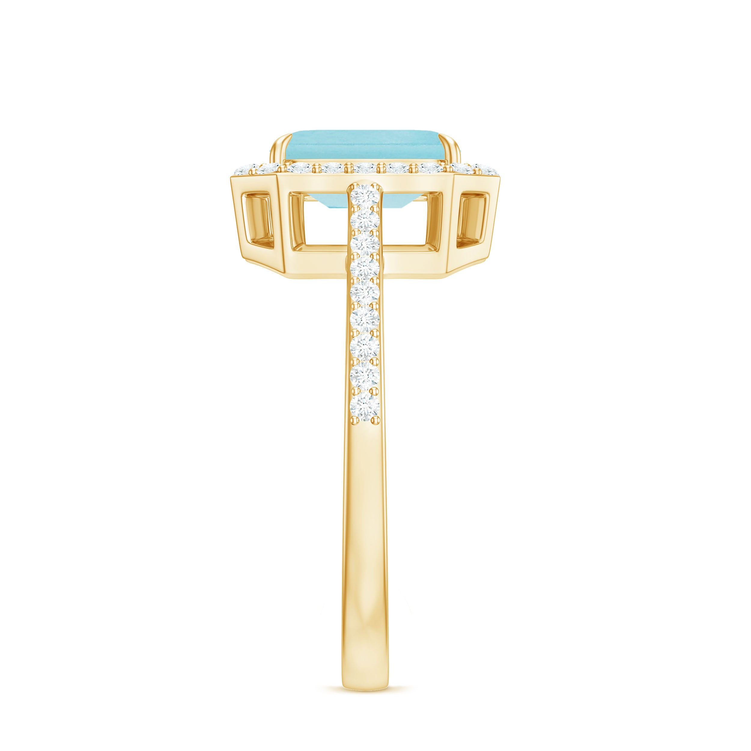 Make a statement with this Emerald Cut Shape Sky Blue Topaz Classic Engagement Ring, adorned with a Diamond Halo. The ring features a stunning Emerald Cut-cut Sky Blue Topaz set in a prong setting, surrounded by a dazzling halo of Diamond stones that adds to its luxurious appeal. The Sky Blue Topaz is known for its calming and soothing energy, making it a perfect symbol of love and serenity. The classic design of this engagement ring exudes sophistication and elegance, making it a timeless piece that will be cherished for years to come. This ring is a perfect choice for any bride-to-be who wants a unique and captivating engagement ring.