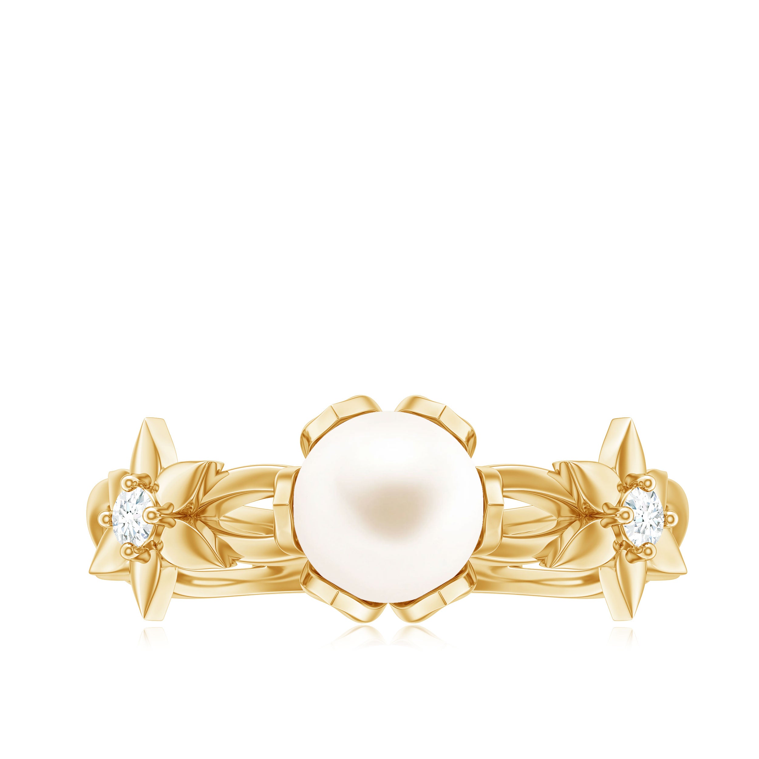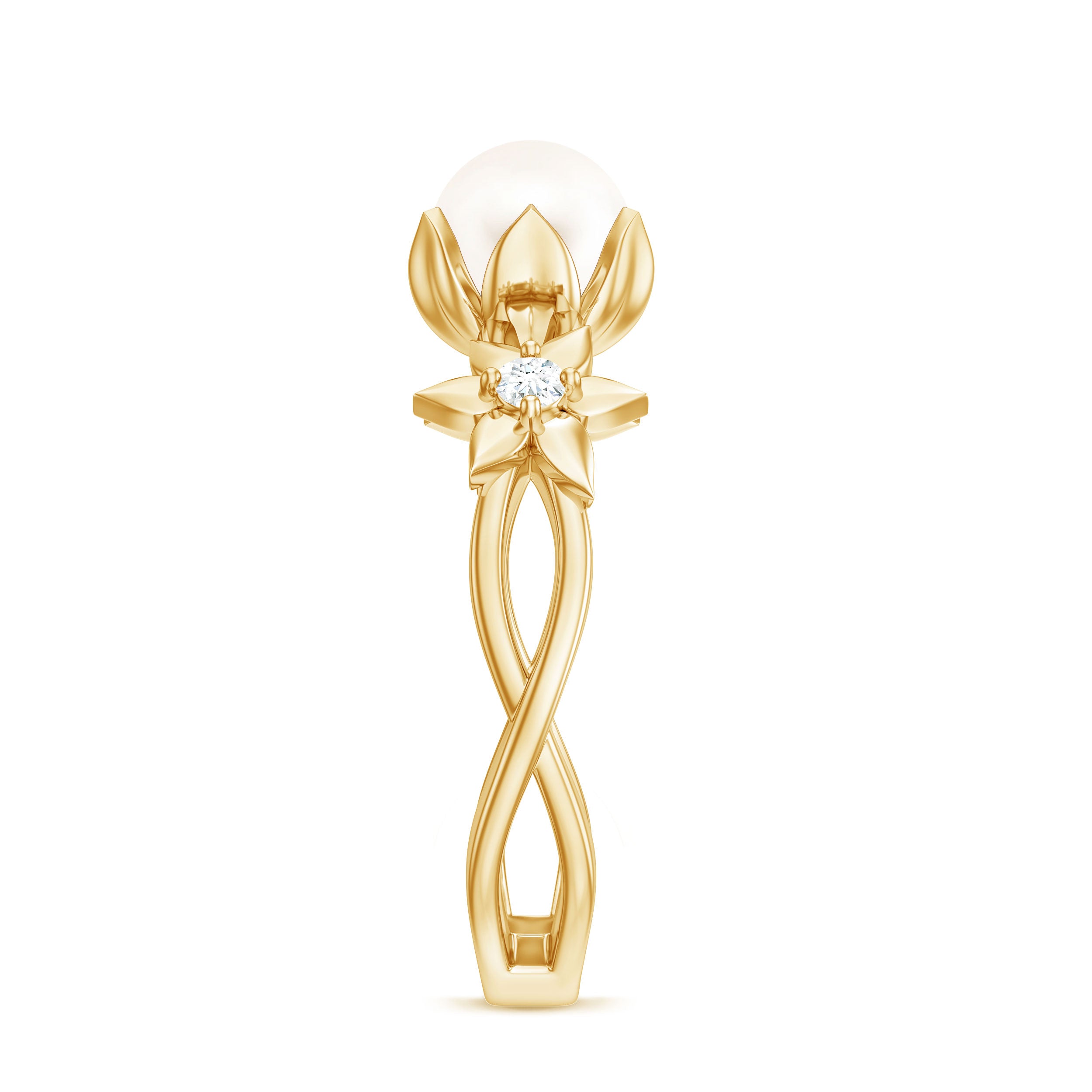 Floral Shank of this Freshwater Pearl and Diamond Ring is enchanting, it is crafted in Gold for sumptuous charm. Freshwater Pearl exhibits AAA Quality and possess subtle color. Semi Precious June Birthstone summons faith and innocence. It is Natural and Certified, helps in enhancing personal integrity and grow sincerity of the wearer. The extremely durable nature and luster makes it a captivating and desirable gem. Diamond- HI-SI Quality exhibited by Brilliant Cut Diamond give justice to its incredible value. Diamond summons beauty, attractiveness and unbreakable love. It is Certified and helps in bringing success and luxury to the wearer. Its Durability and Luster is enhanced by Lab Created Treatment, to further make it a captivating and desirable gem.